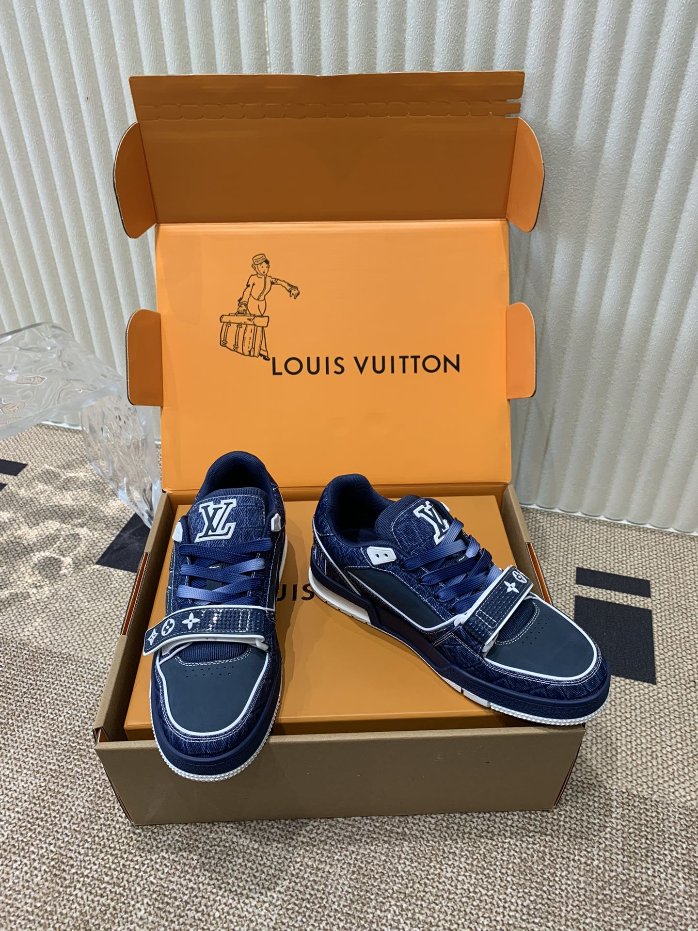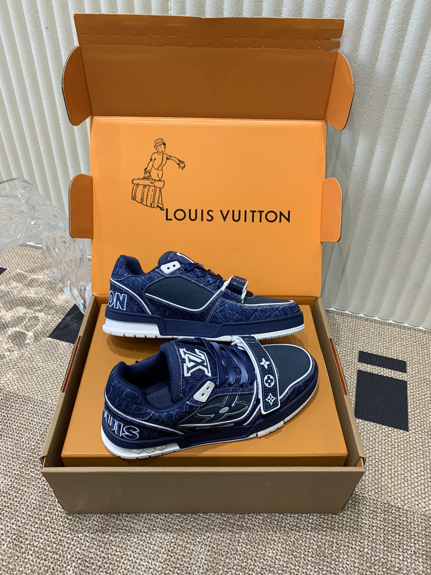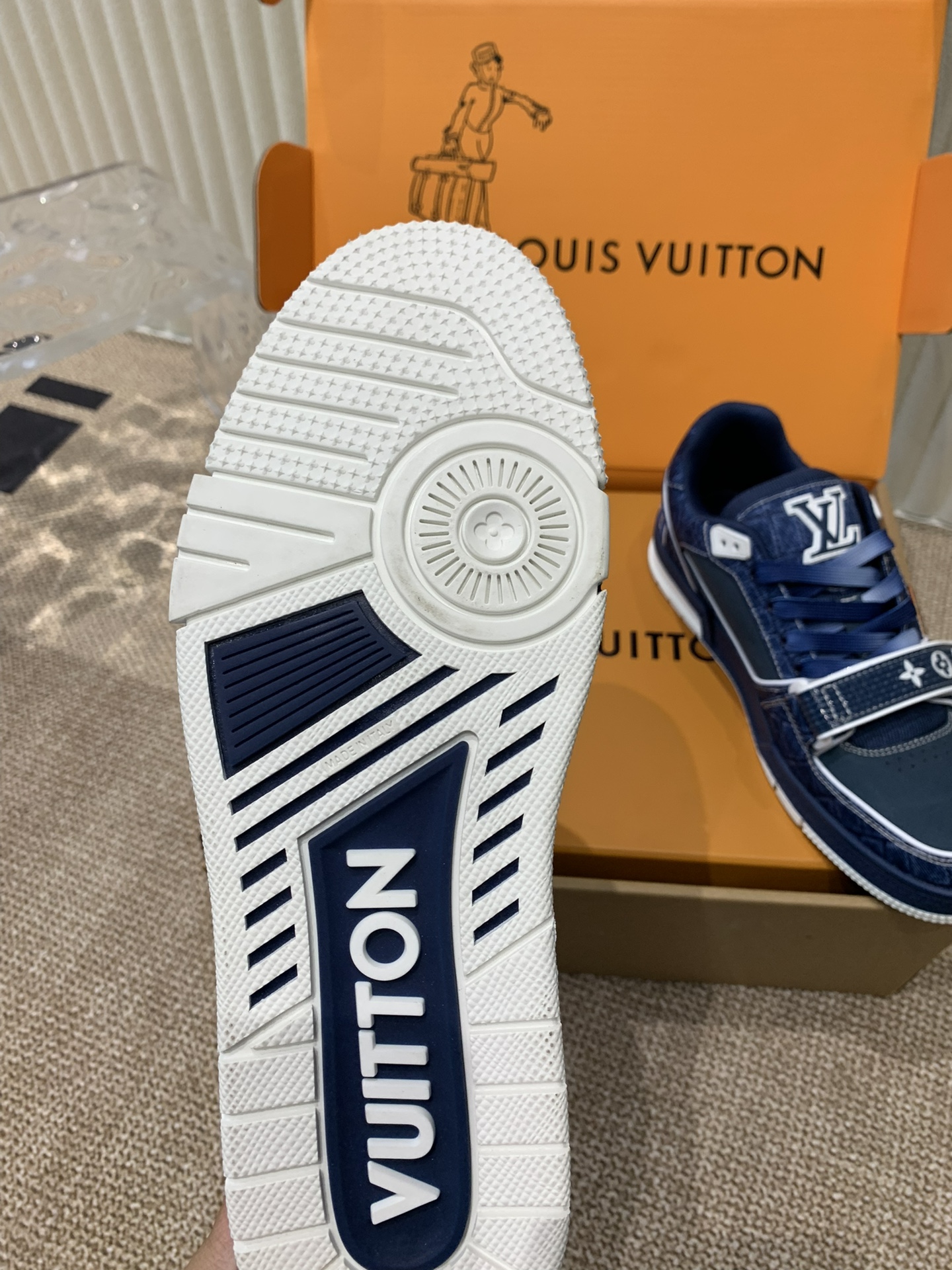 这款鞋子是AAAAA 1:1 质量 (非常棒). 使用了和原版一模一样的材料. 商标部分也保持了和路易威登/Louis Vuitton一样. 图片拍摄是实物鞋子拍摄, 您所收到的实物保证和我们图片一模一样.