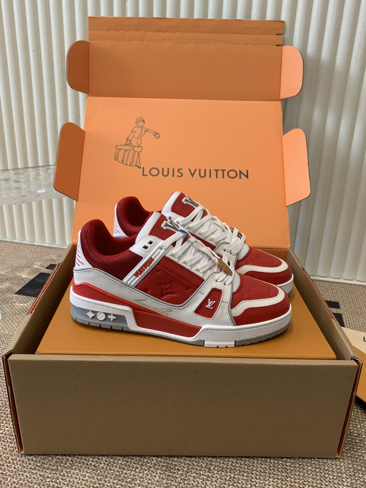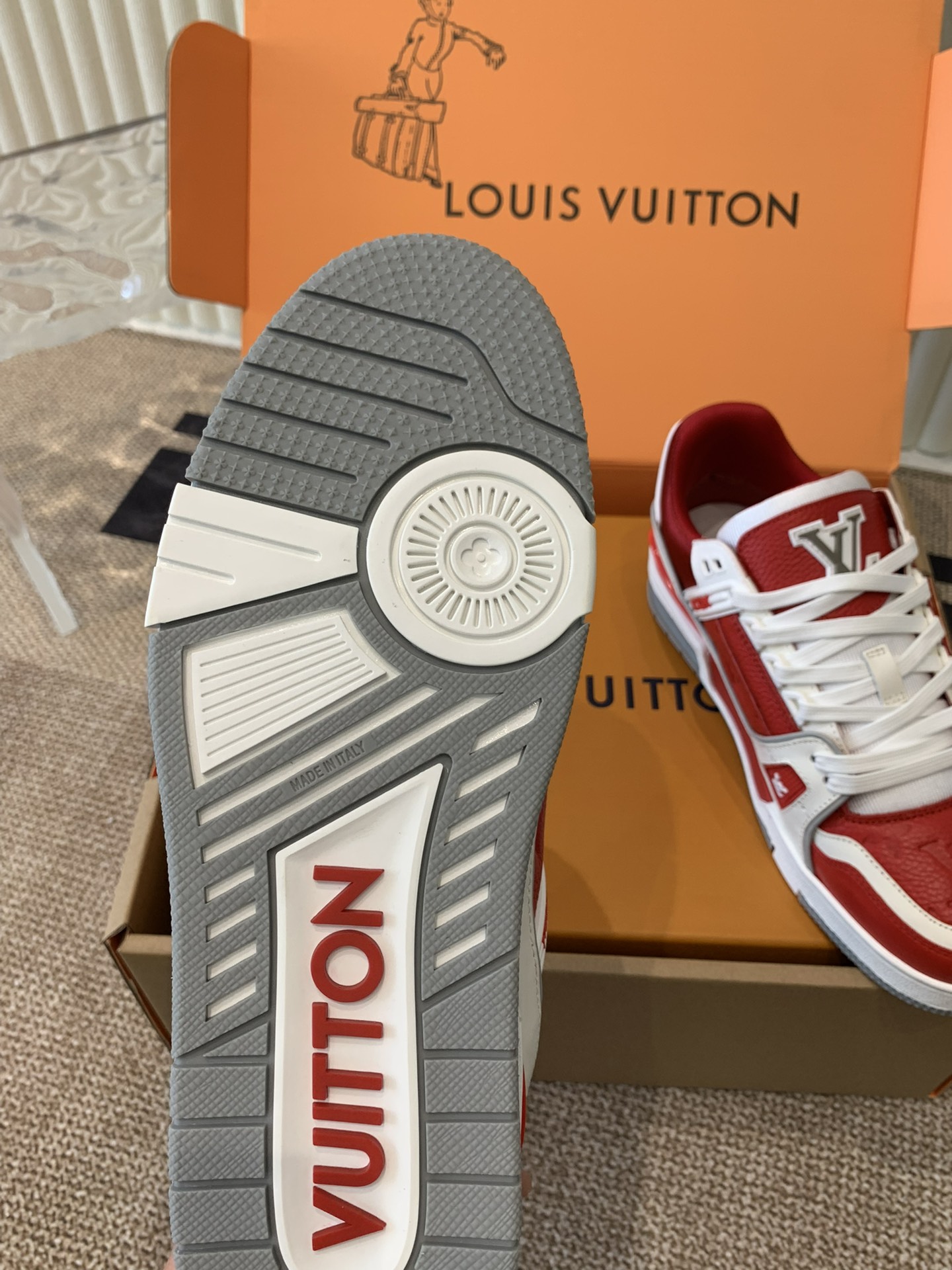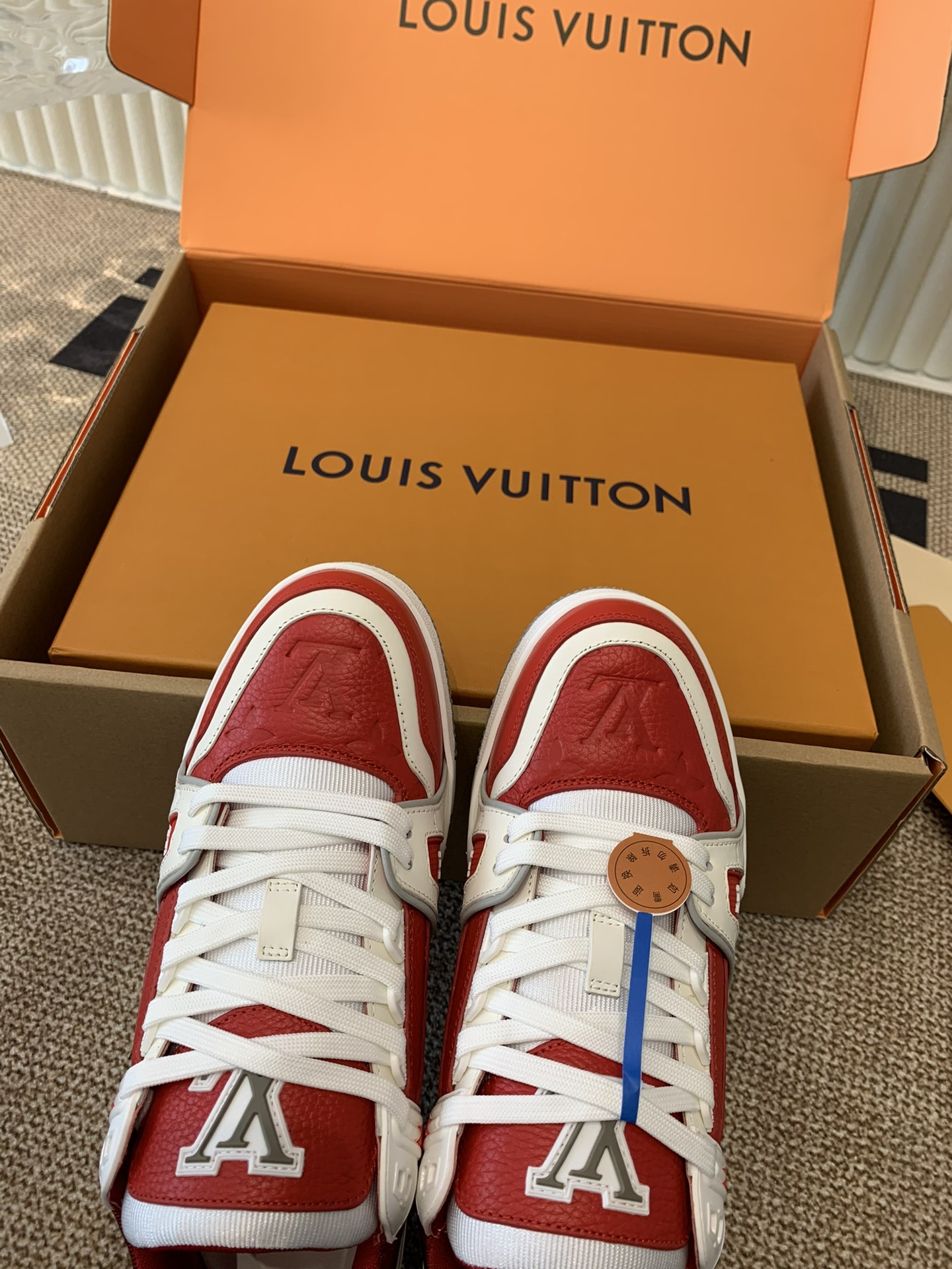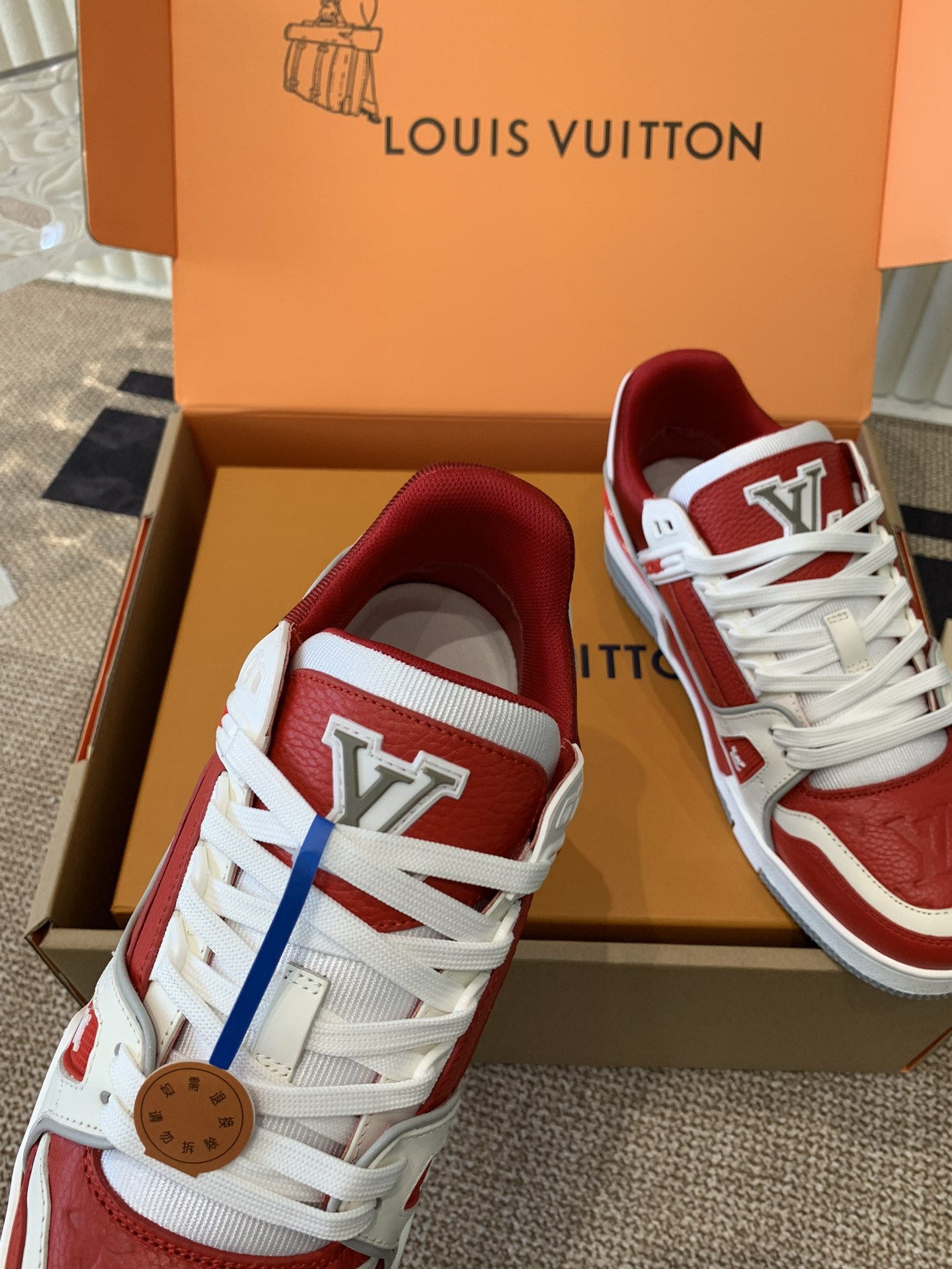 这款鞋子是AAAAA 1:1 质量 (非常棒). 使用了和原版一模一样的材料. 商标部分也保持了和路易威登/Louis Vuitton一样. 图片拍摄是实物鞋子拍摄, 您所收到的实物保证和我们图片一模一样.