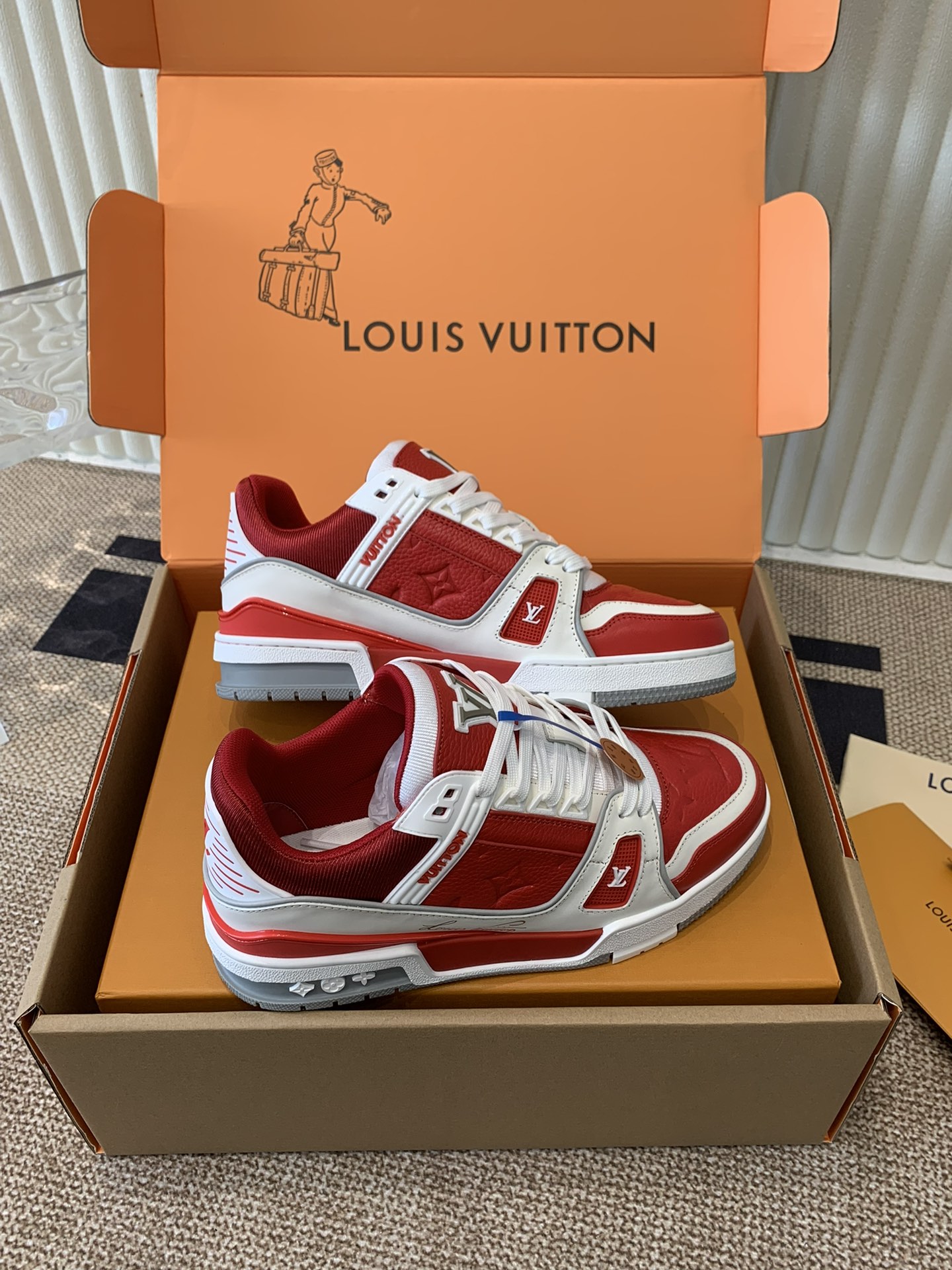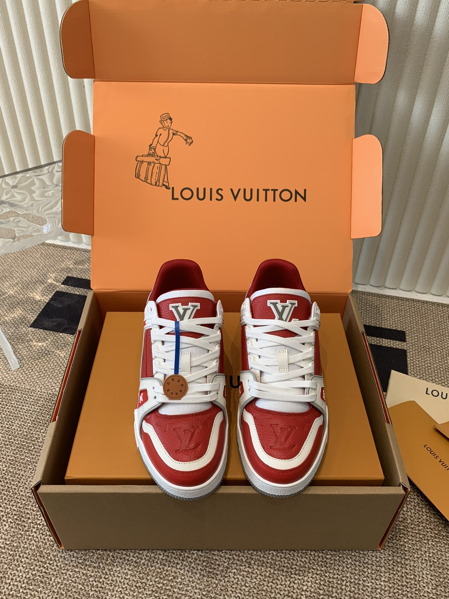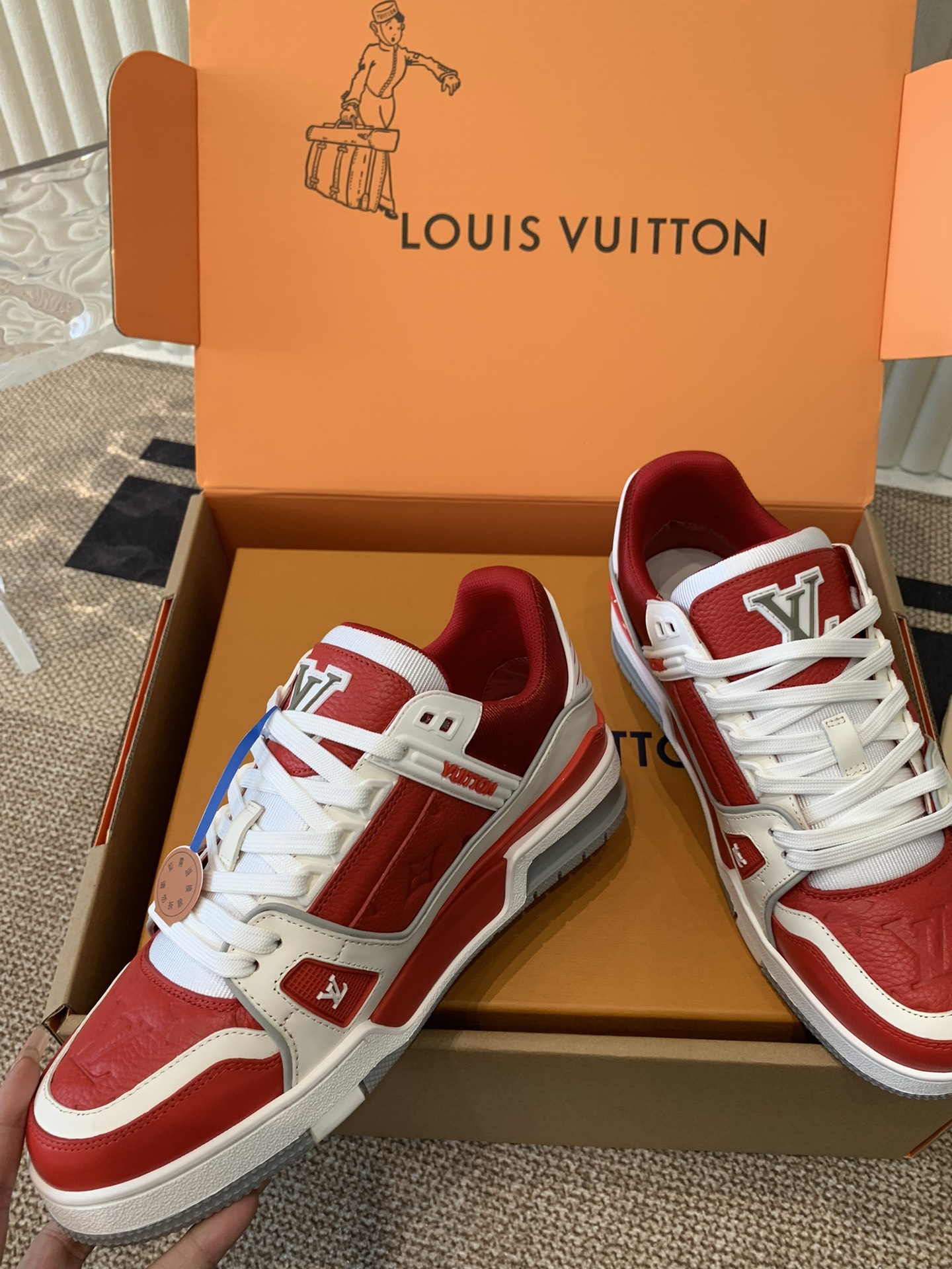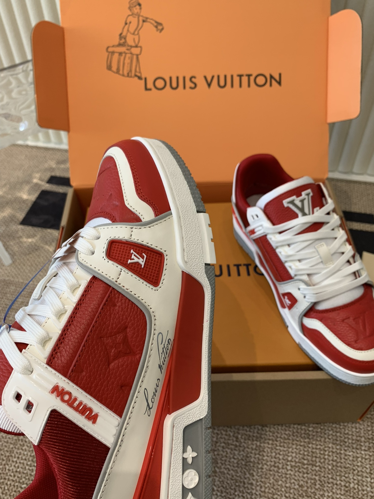 这款鞋子是AAAAA 1:1 质量 (非常棒). 使用了和原版一模一样的材料. 商标部分也保持了和路易威登/Louis Vuitton一样. 图片拍摄是实物鞋子拍摄, 您所收到的实物保证和我们图片一模一样.