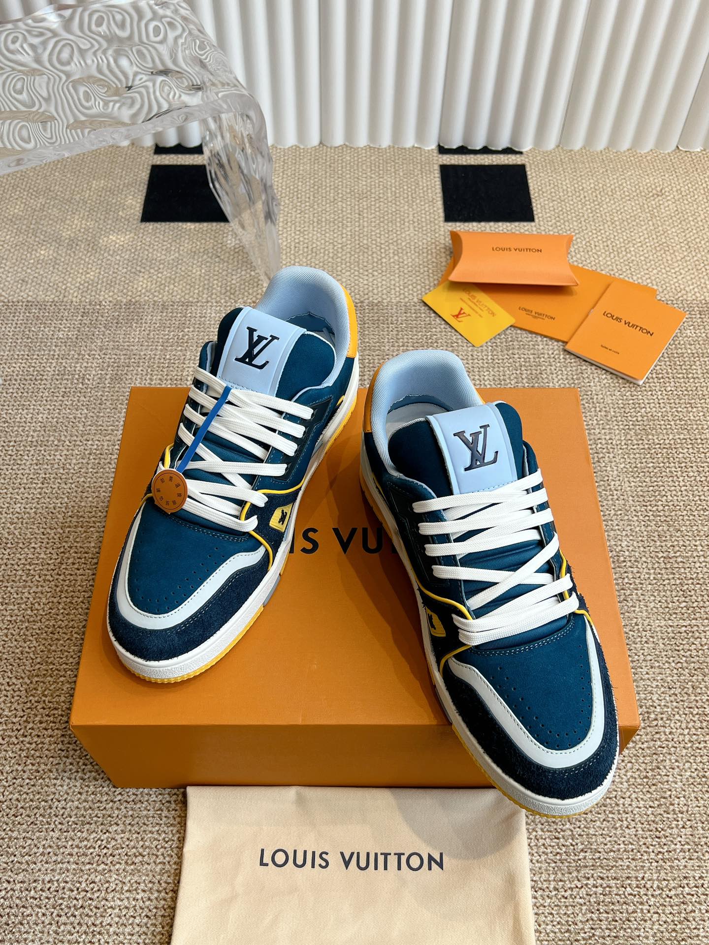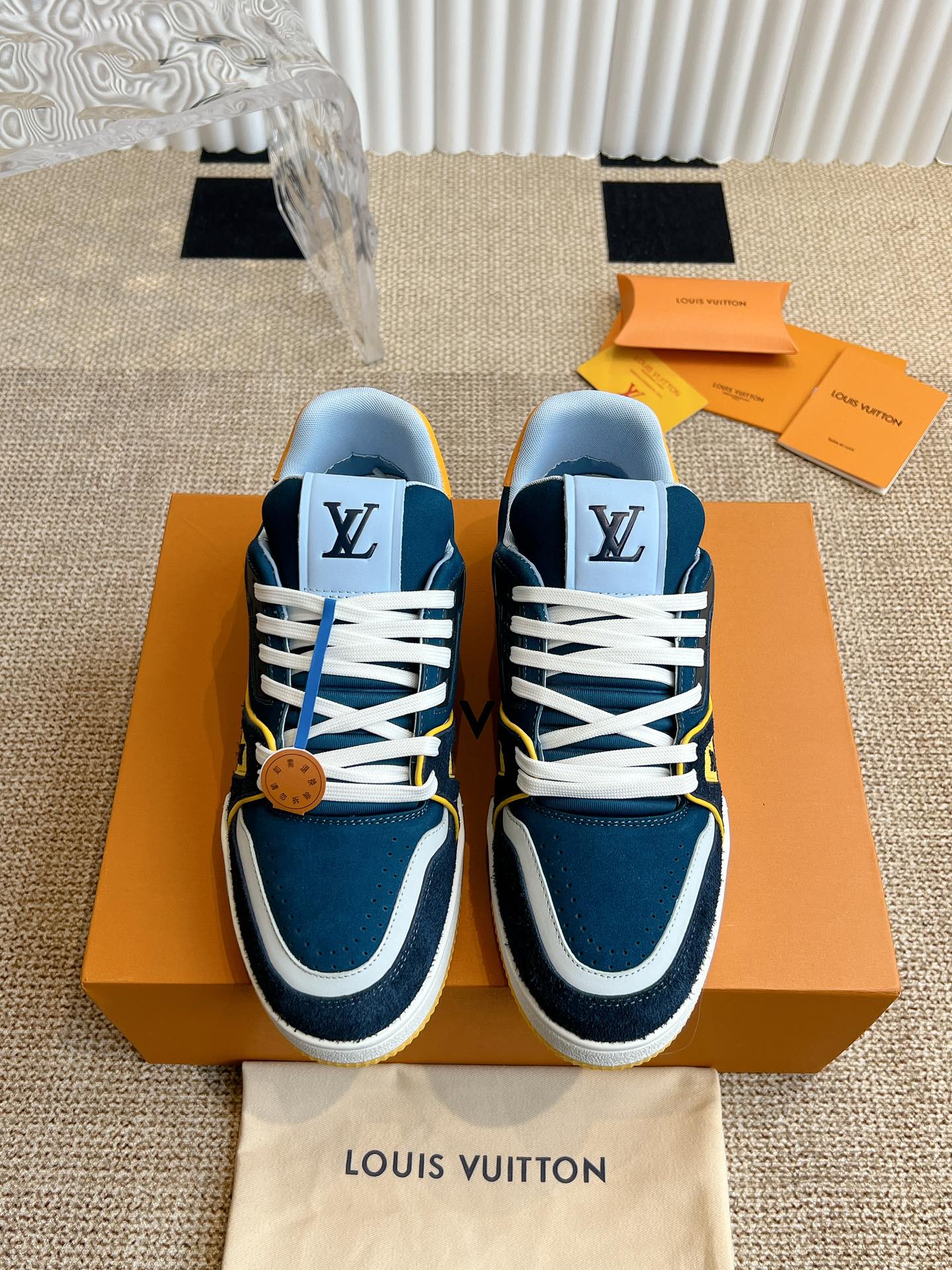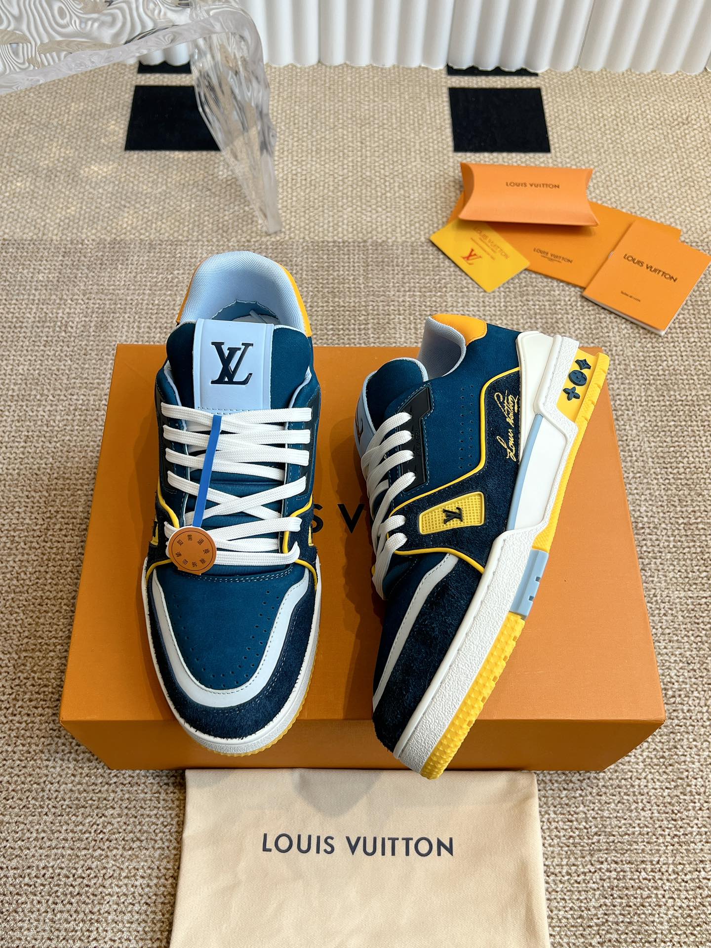 这款鞋子是AAAAA 1:1 质量 (非常棒). 使用了和原版一模一样的材料. 商标部分也保持了和路易威登/Louis Vuitton一样. 图片拍摄是实物鞋子拍摄, 您所收到的实物保证和我们图片一模一样.