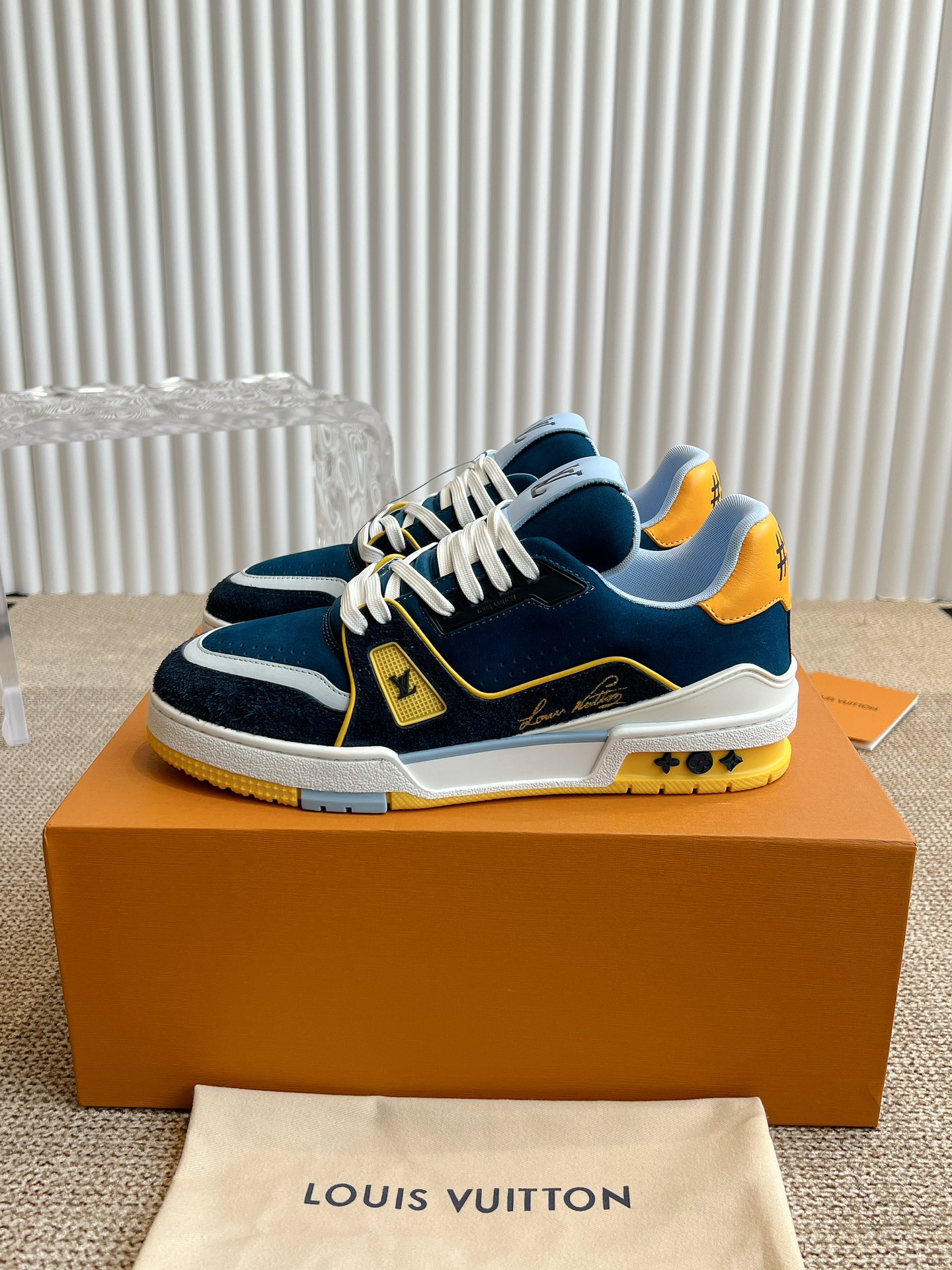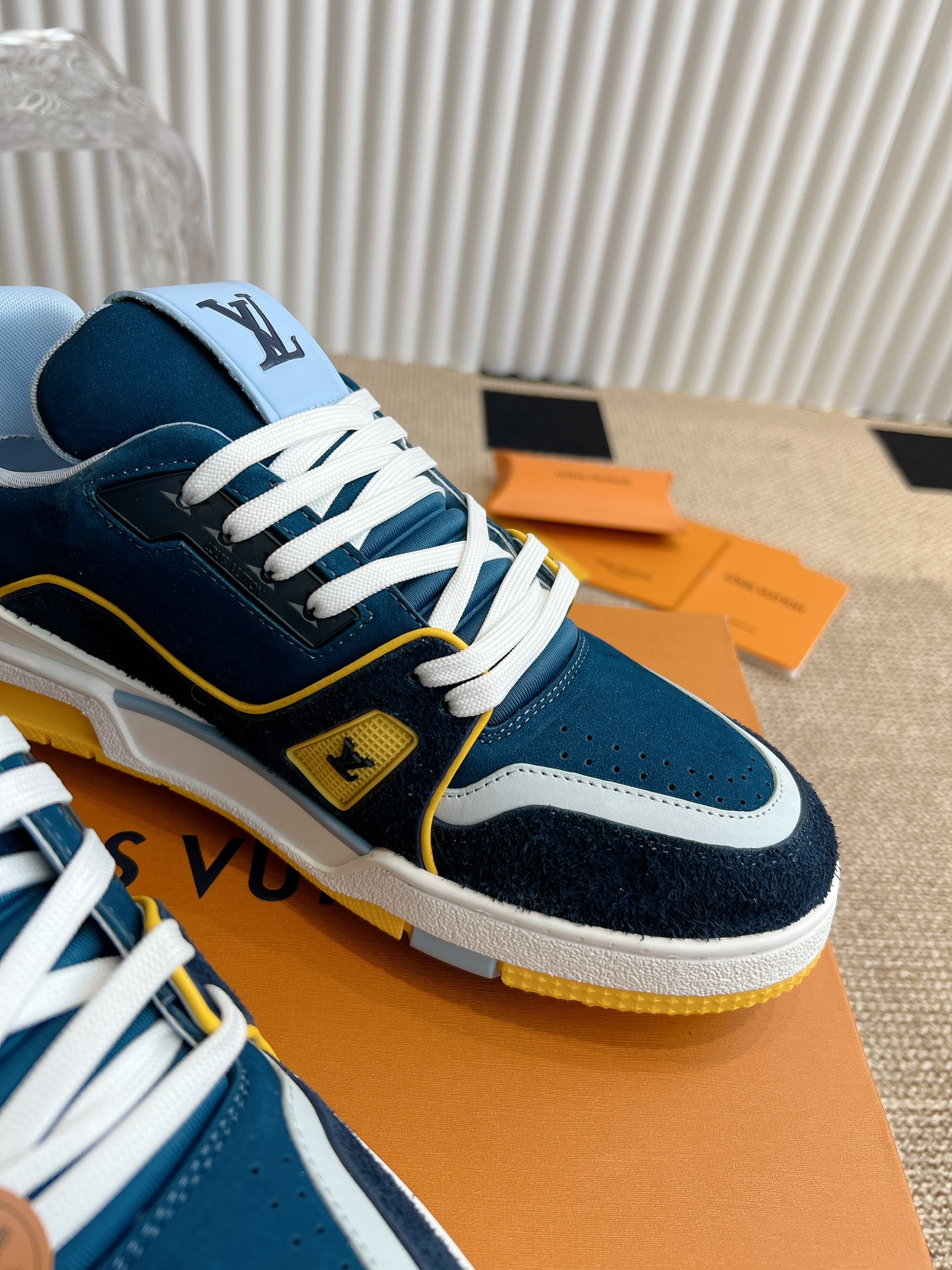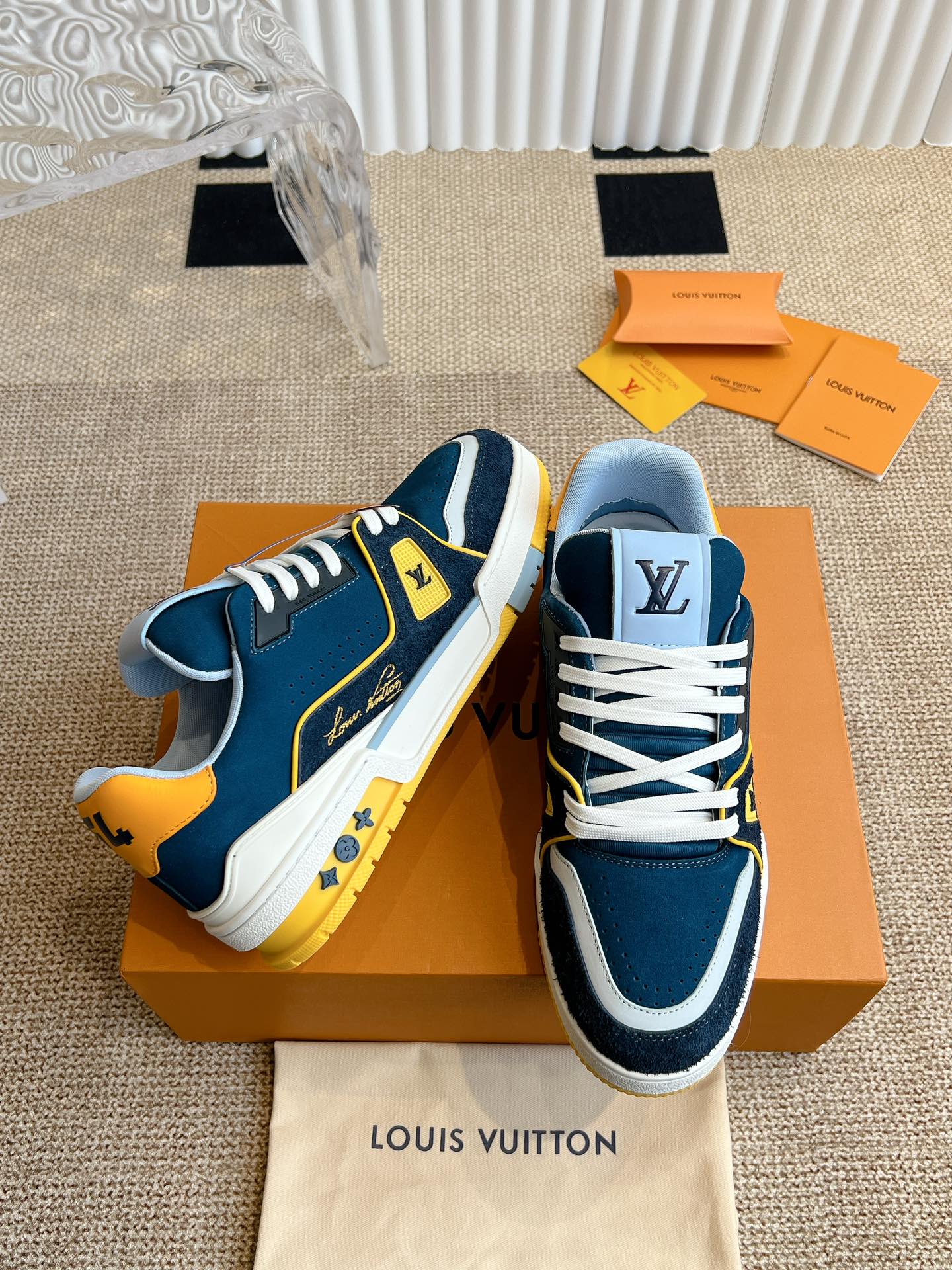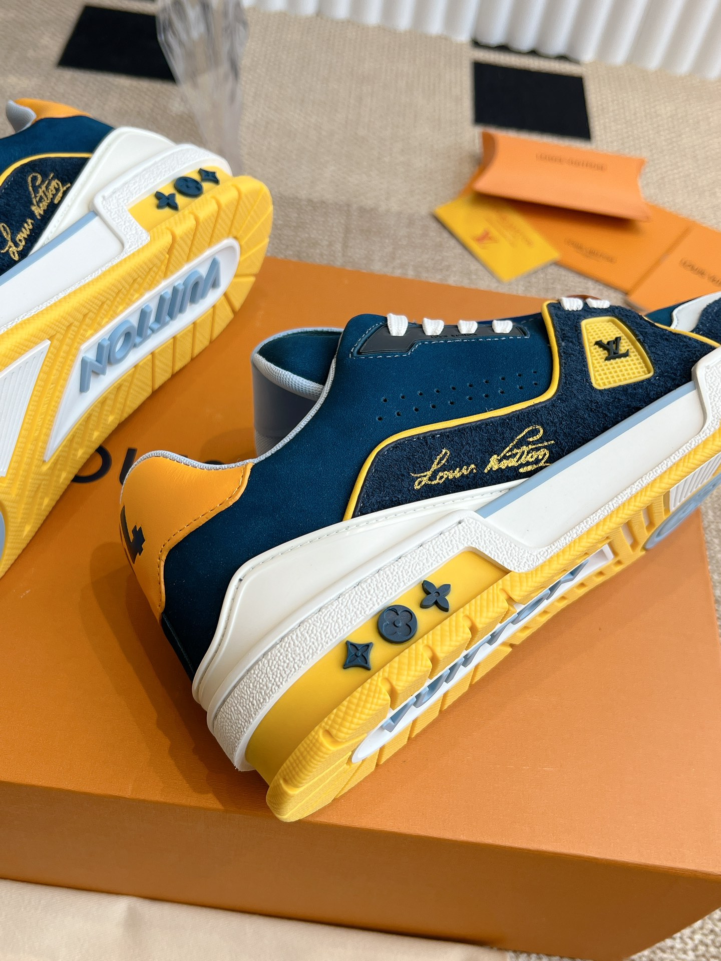 这款鞋子是AAAAA 1:1 质量 (非常棒). 使用了和原版一模一样的材料. 商标部分也保持了和路易威登/Louis Vuitton一样. 图片拍摄是实物鞋子拍摄, 您所收到的实物保证和我们图片一模一样.