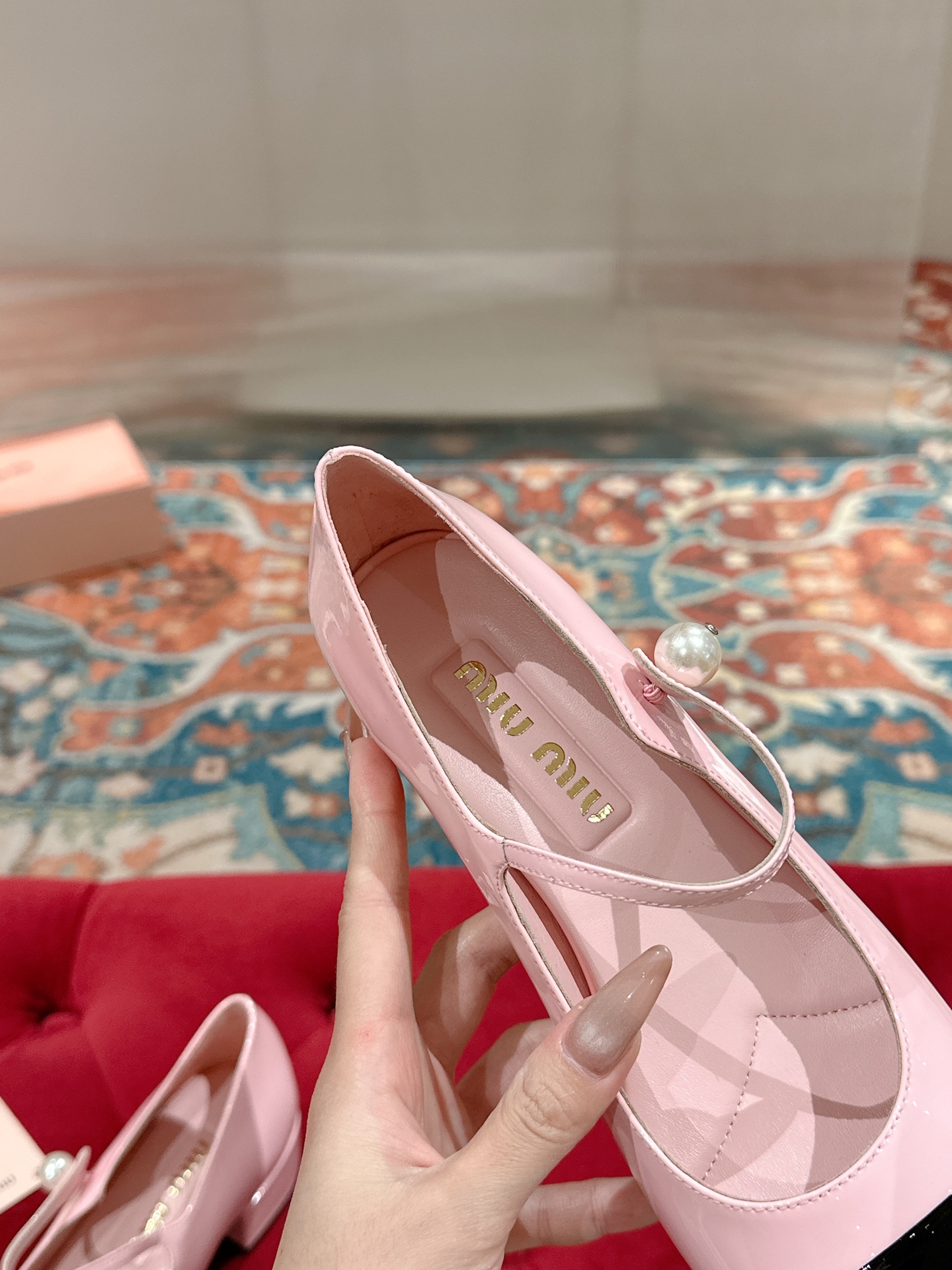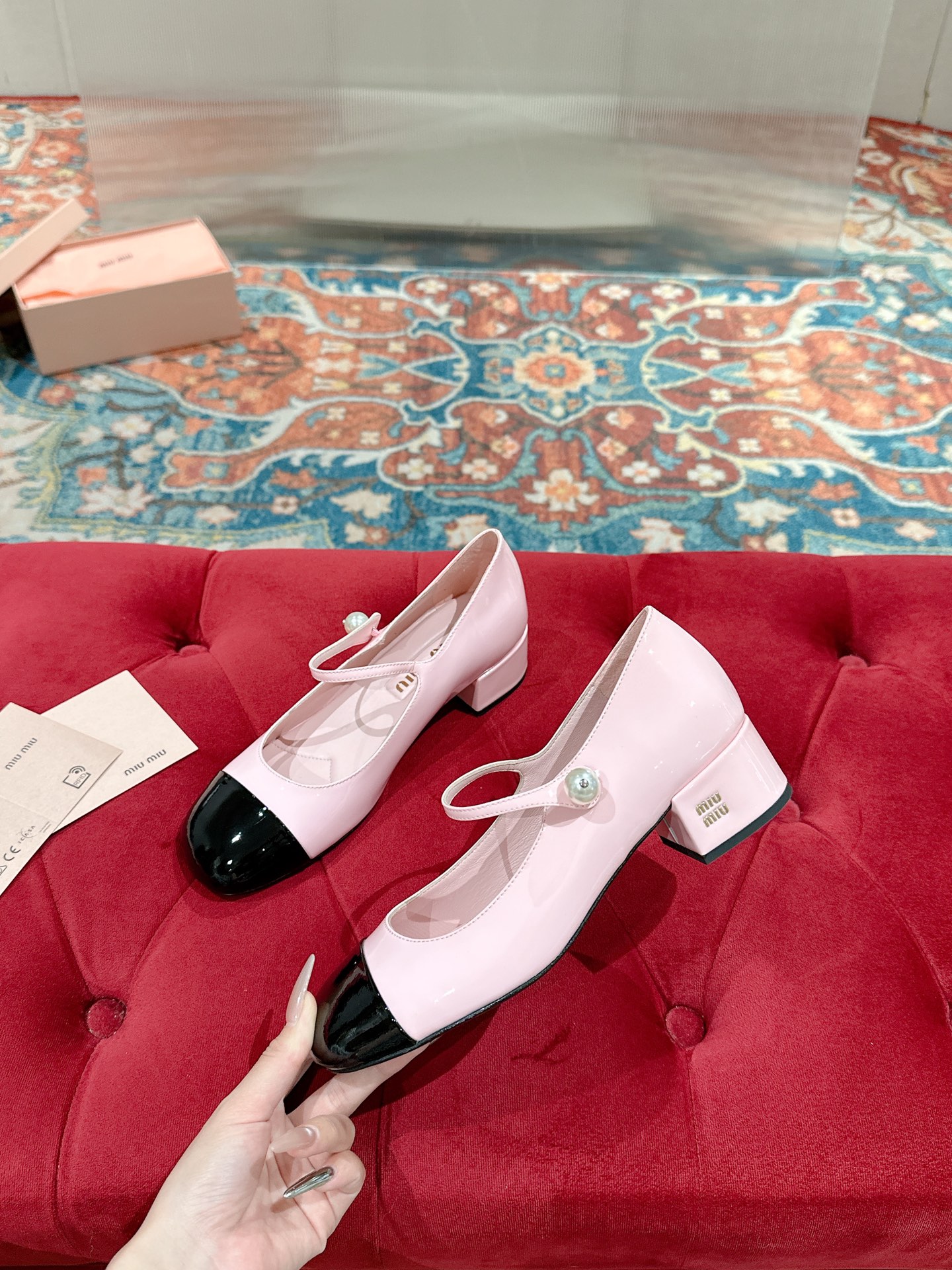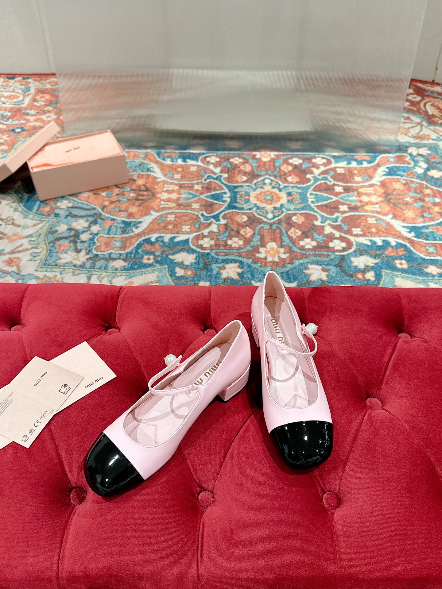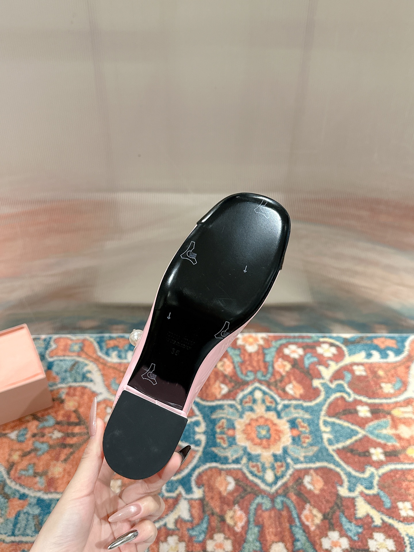 这款鞋子是AAAAA 1:1 质量 (非常棒). 使用了和原版一模一样的材料. 商标部分也保持了和缪缪/Miu Miu一样. 图片拍摄是实物鞋子拍摄, 您所收到的实物保证和我们图片一模一样.