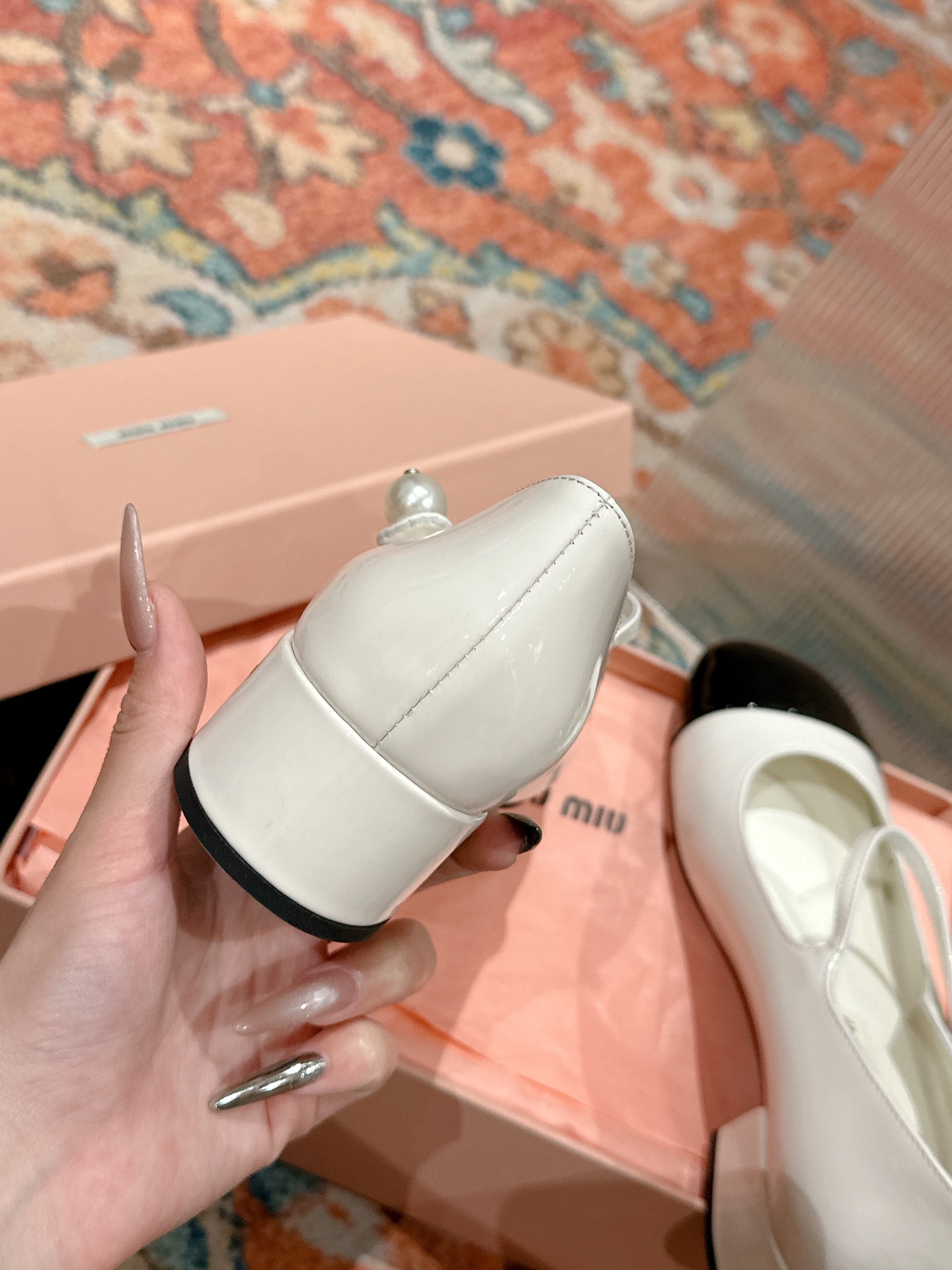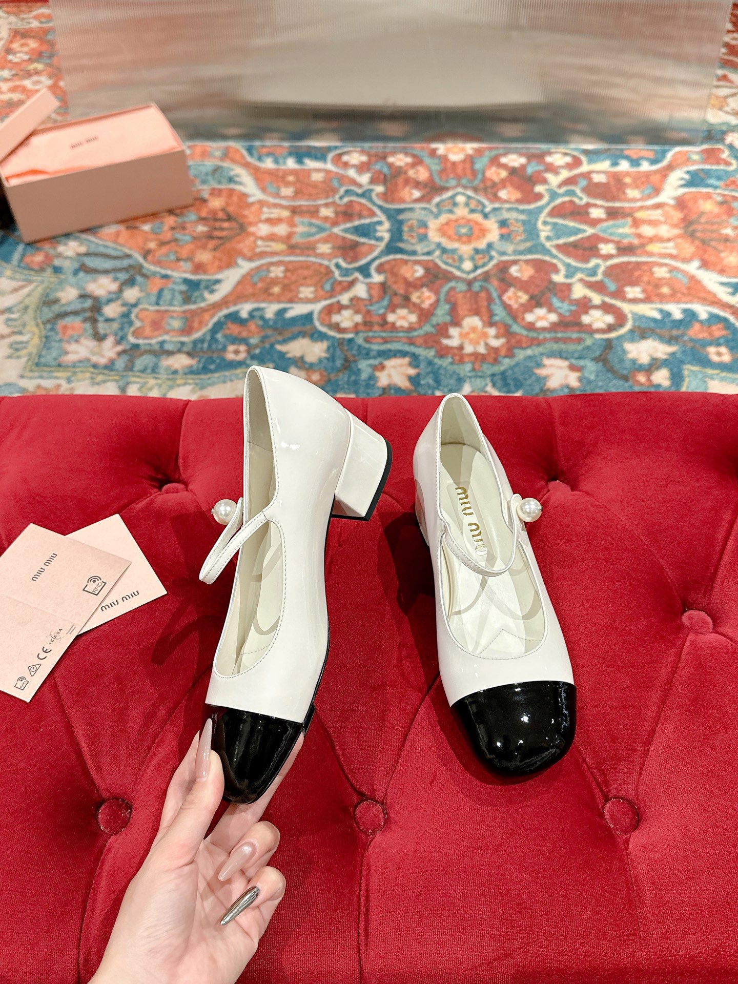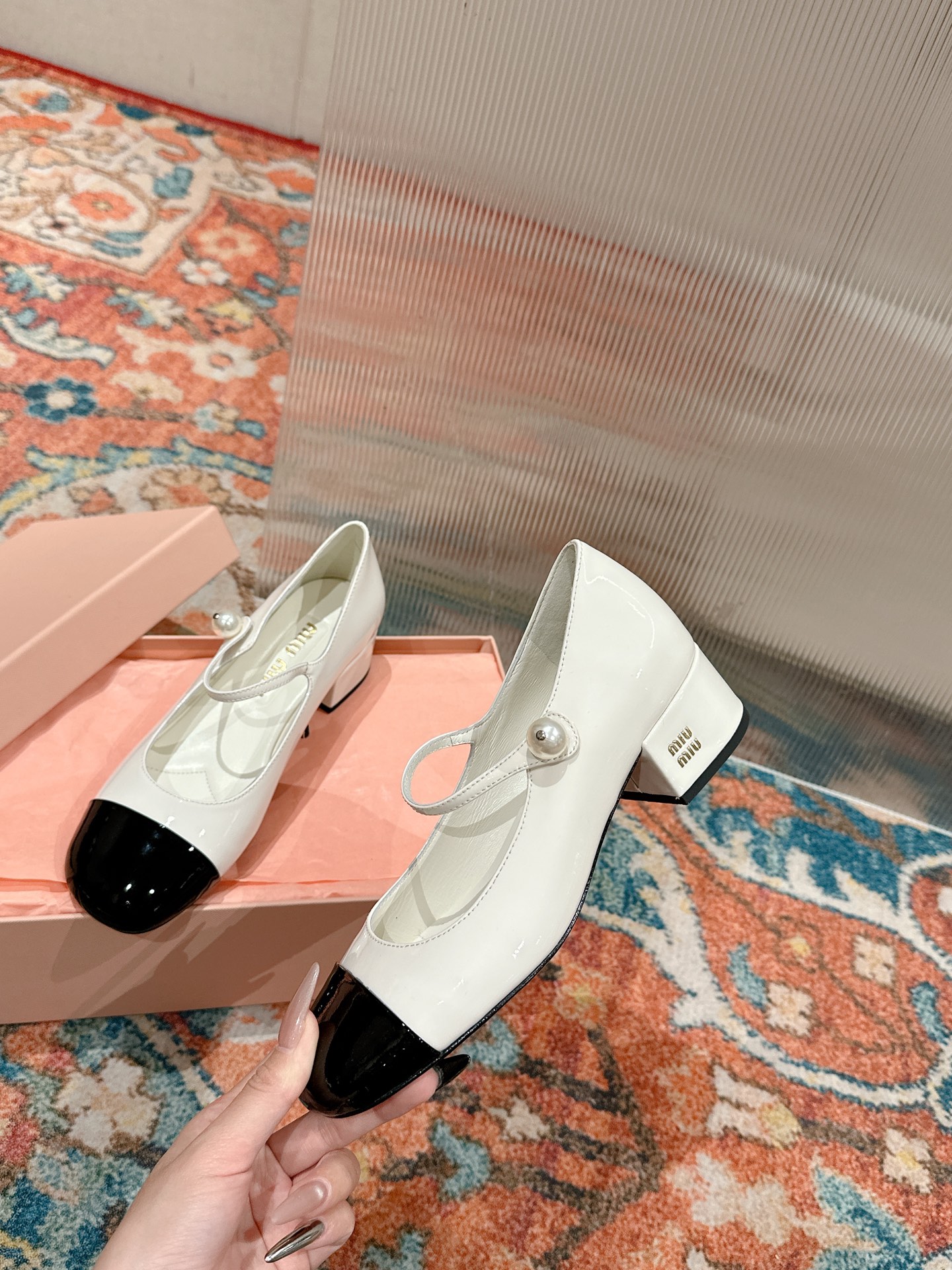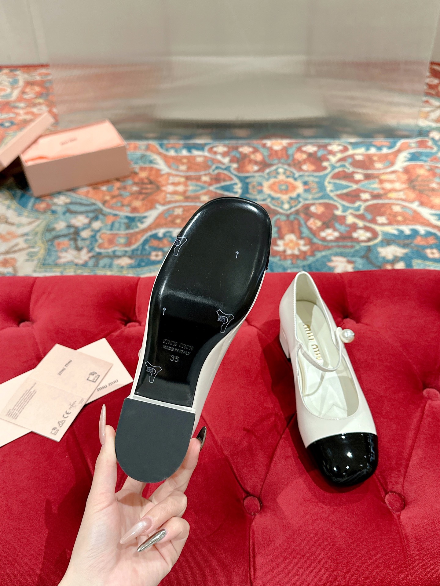 这款鞋子是AAAAA 1:1 质量 (非常棒). 使用了和原版一模一样的材料. 商标部分也保持了和缪缪/Miu Miu一样. 图片拍摄是实物鞋子拍摄, 您所收到的实物保证和我们图片一模一样.
