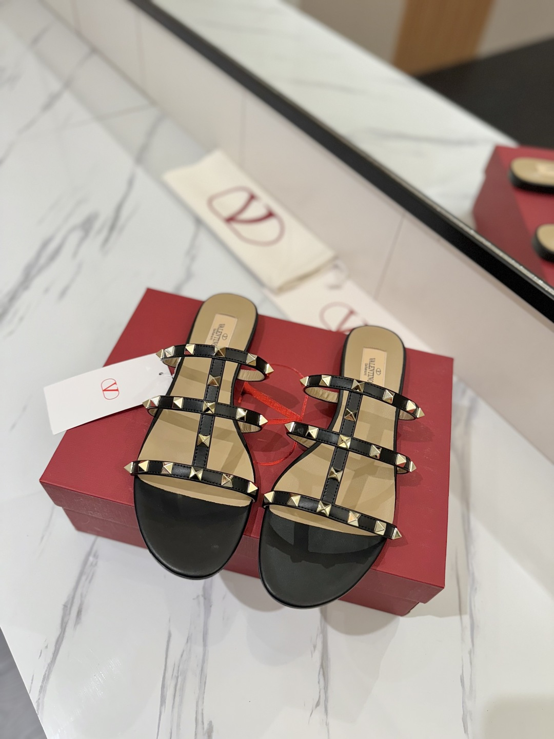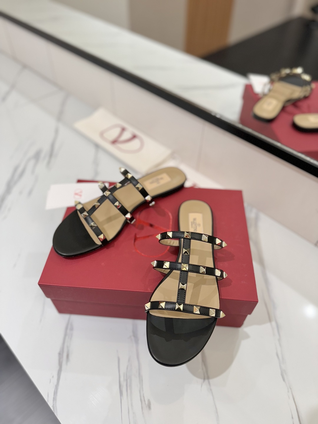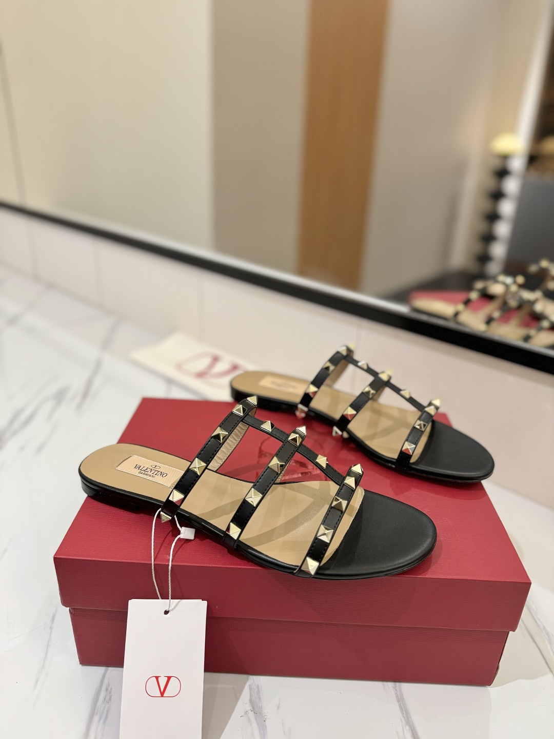 这款鞋子是AAAAA 1:1 质量 (非常棒). 使用了和原版一模一样的材料. 商标部分也保持了和华伦天奴/Valentino一样. 图片拍摄是实物鞋子拍摄, 您所收到的实物保证和我们图片一模一样.