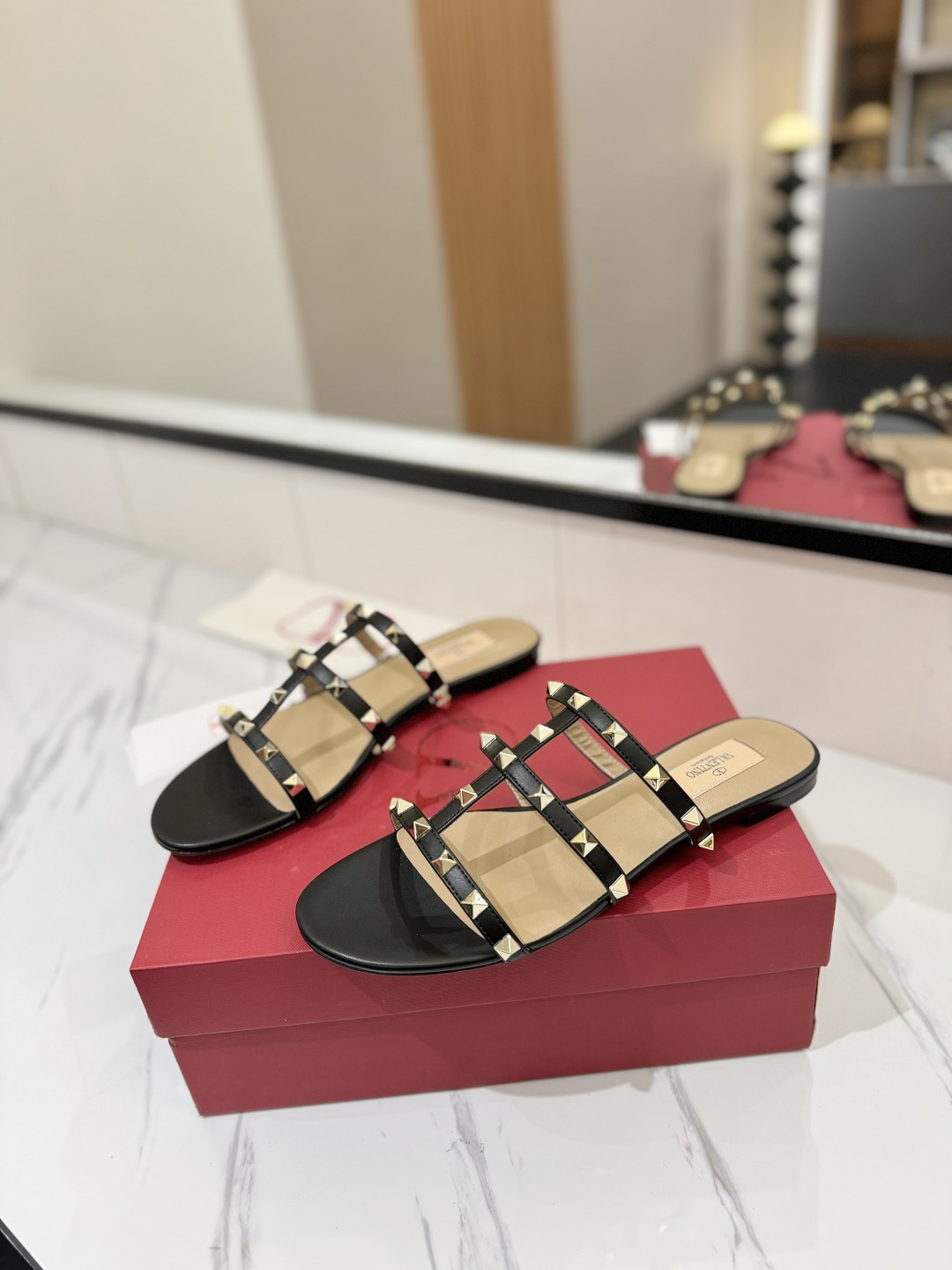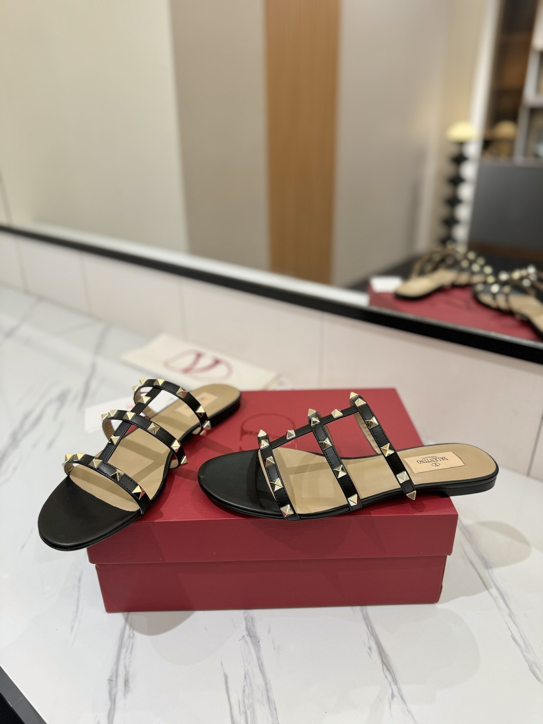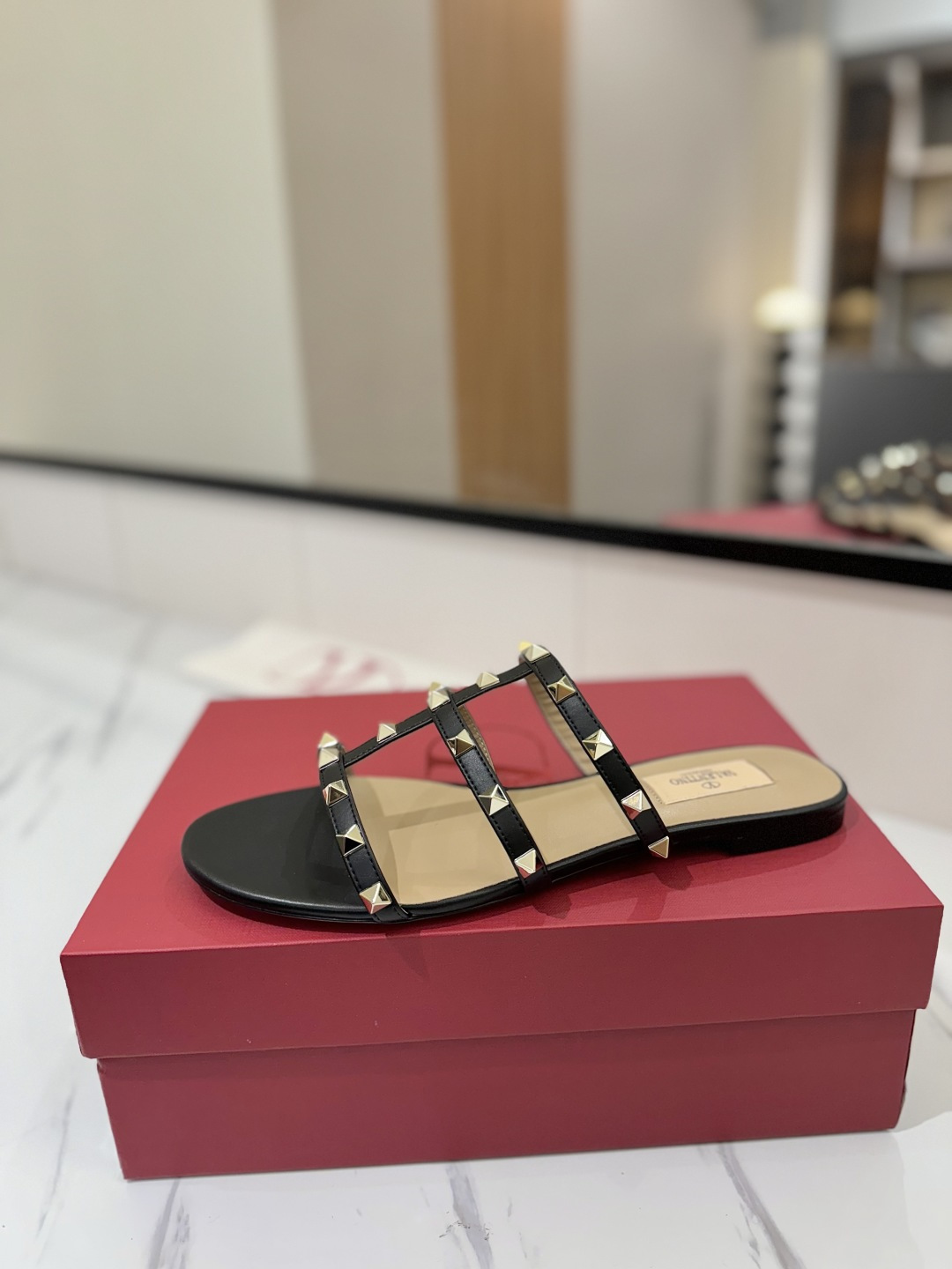 这款鞋子是AAAAA 1:1 质量 (非常棒). 使用了和原版一模一样的材料. 商标部分也保持了和华伦天奴/Valentino一样. 图片拍摄是实物鞋子拍摄, 您所收到的实物保证和我们图片一模一样.