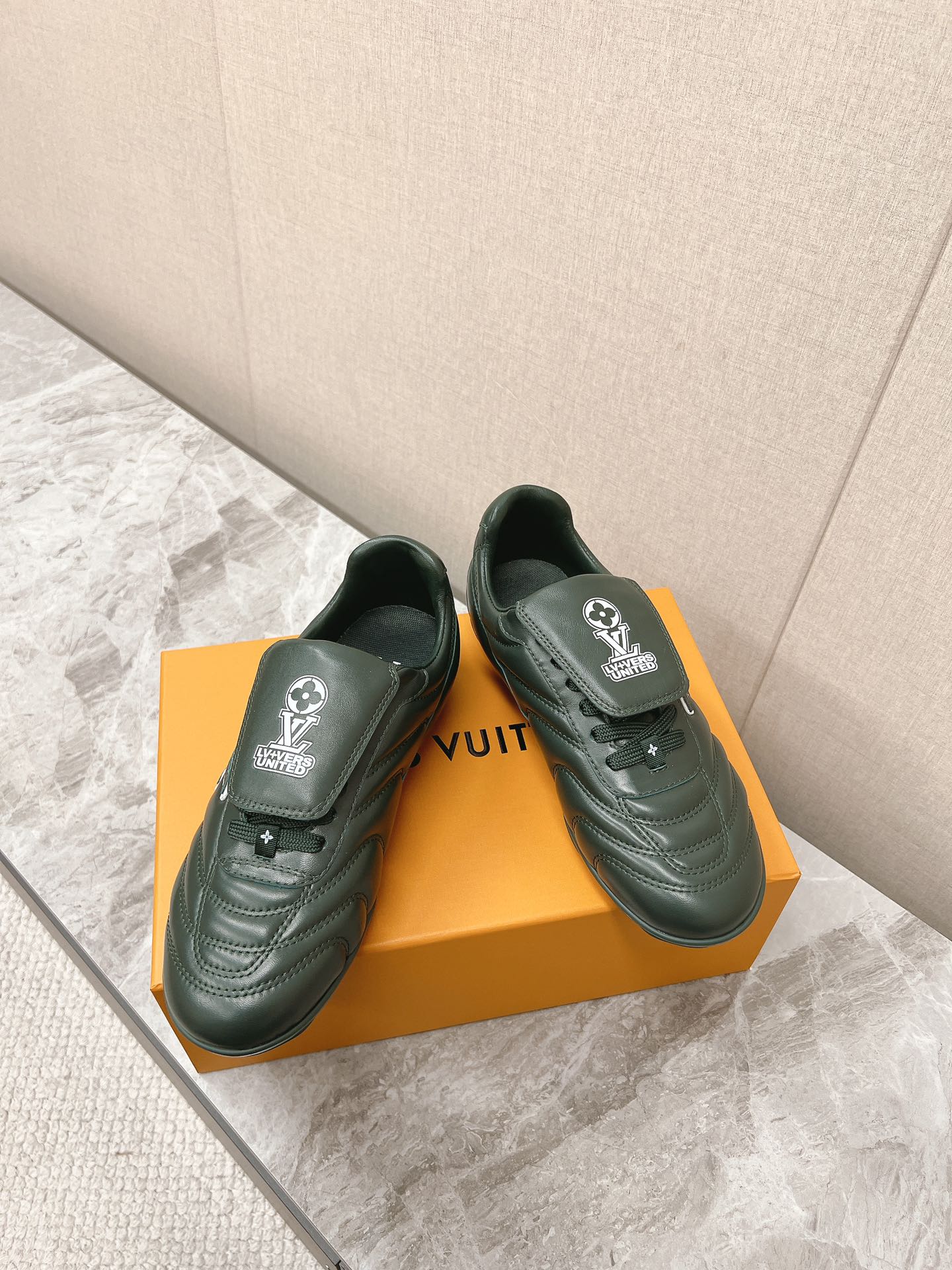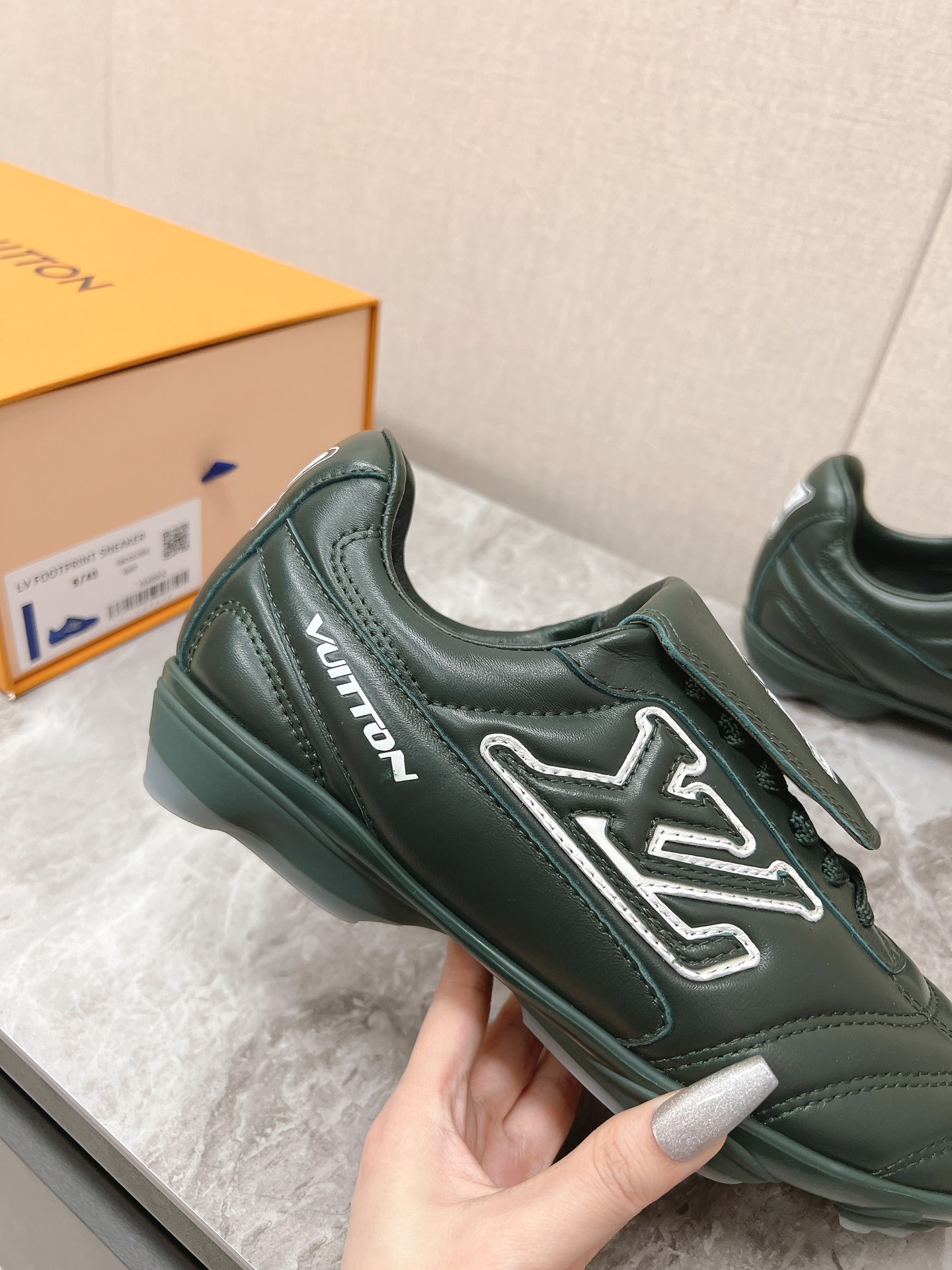 这款鞋子是AAAAA 1:1 质量 (非常棒). 使用了和原版一模一样的材料. 商标部分也保持了和路易威登/Louis Vuitton一样. 图片拍摄是实物鞋子拍摄, 您所收到的实物保证和我们图片一模一样.