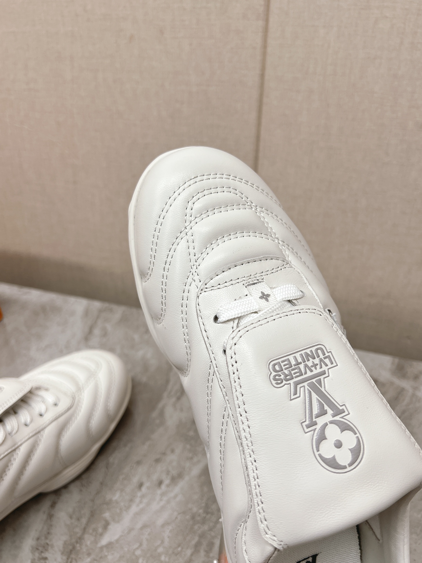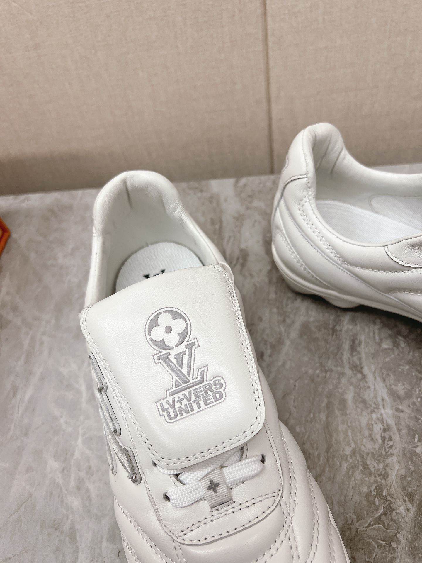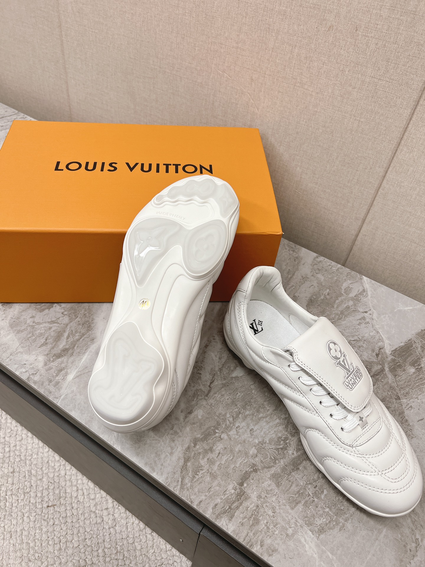 这款鞋子是AAAAA 1:1 质量 (非常棒). 使用了和原版一模一样的材料. 商标部分也保持了和路易威登/Louis Vuitton一样. 图片拍摄是实物鞋子拍摄, 您所收到的实物保证和我们图片一模一样.