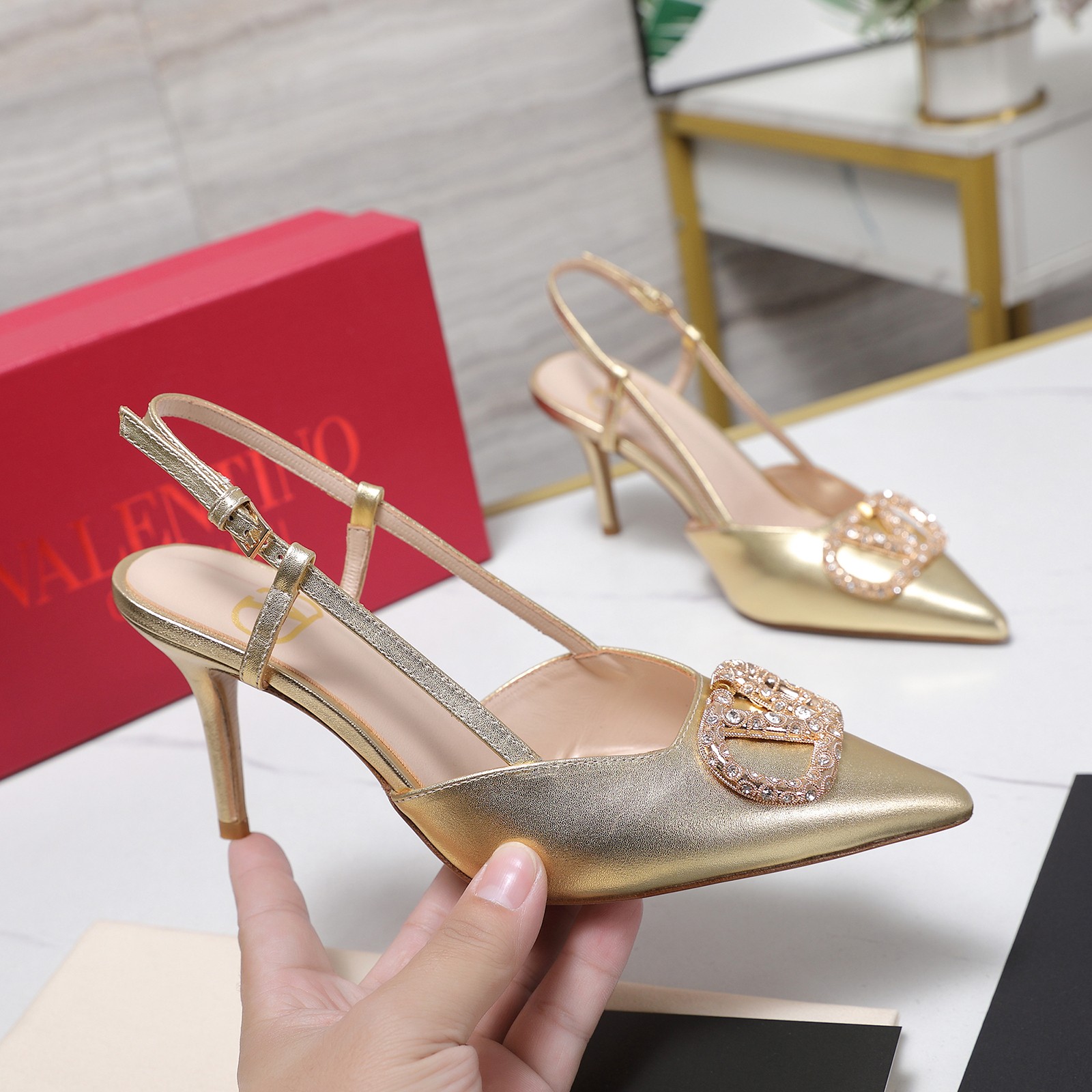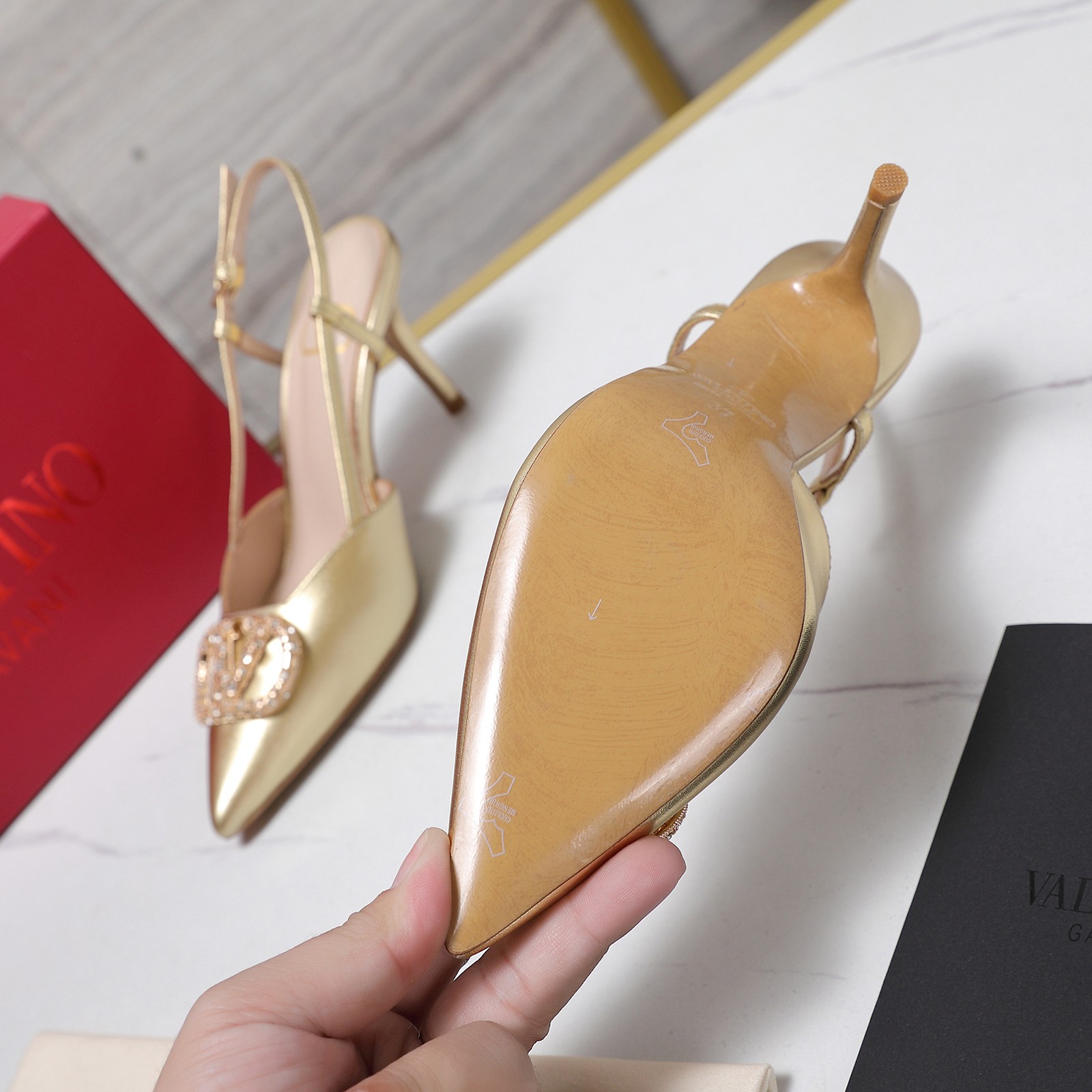 这款鞋子是AAAAA 1:1 质量 (非常棒). 使用了和原版一模一样的材料. 商标部分也保持了和施华洛世奇/Swarovski一样. 图片拍摄是实物鞋子拍摄, 您所收到的实物保证和我们图片一模一样.