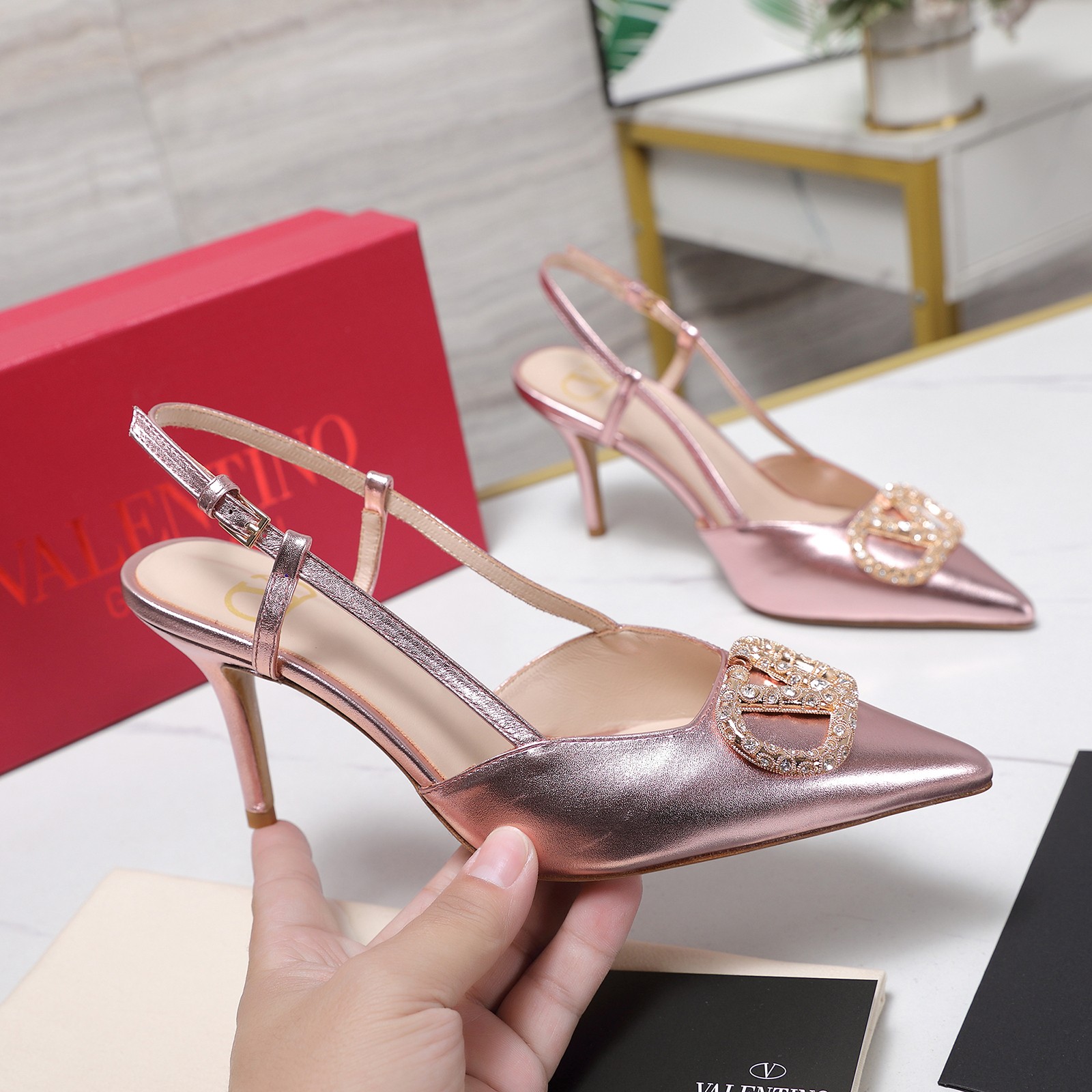 这款鞋子是AAAAA 1:1 质量 (非常棒). 使用了和原版一模一样的材料. 商标部分也保持了和施华洛世奇/Swarovski一样. 图片拍摄是实物鞋子拍摄, 您所收到的实物保证和我们图片一模一样.