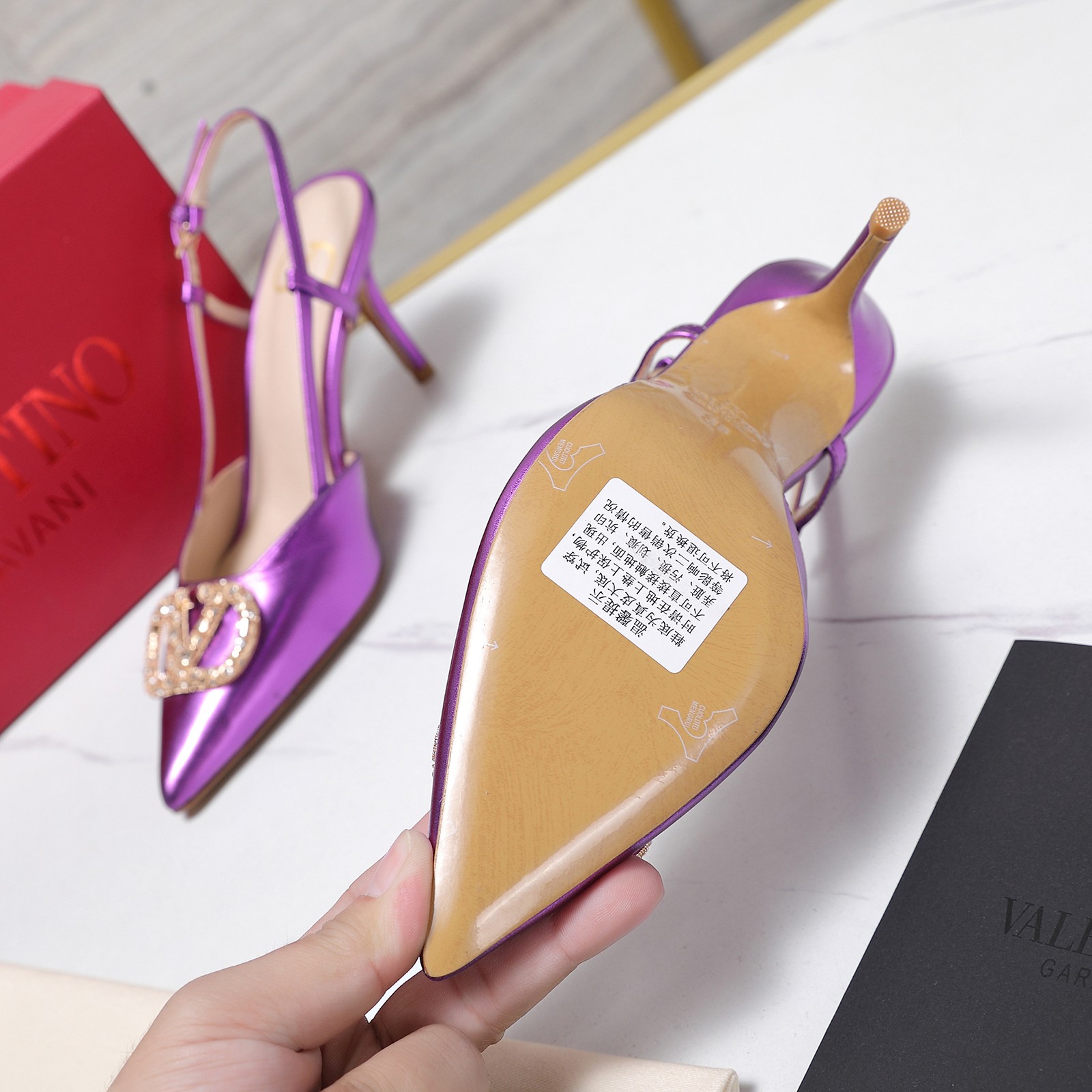 这款鞋子是AAAAA 1:1 质量 (非常棒). 使用了和原版一模一样的材料. 商标部分也保持了和施华洛世奇/Swarovski一样. 图片拍摄是实物鞋子拍摄, 您所收到的实物保证和我们图片一模一样.