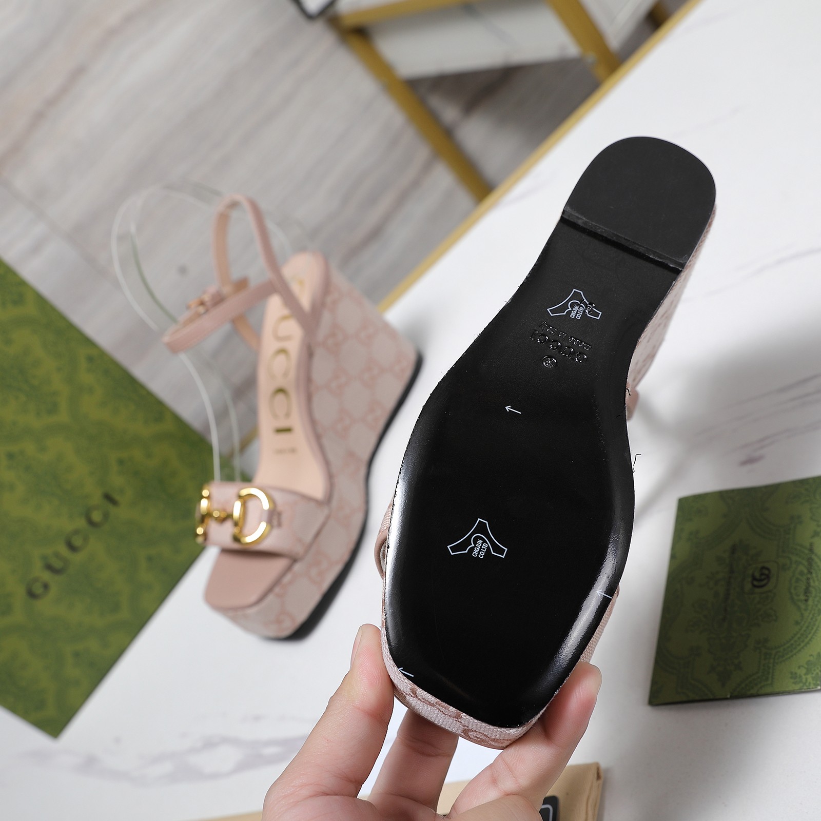这款鞋子是AAAAA 1:1 质量 (非常棒). 使用了和原版一模一样的材料. 商标部分也保持了和古奇/Gucci一样. 图片拍摄是实物鞋子拍摄, 您所收到的实物保证和我们图片一模一样.