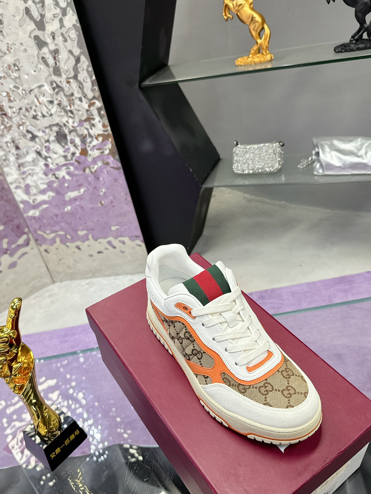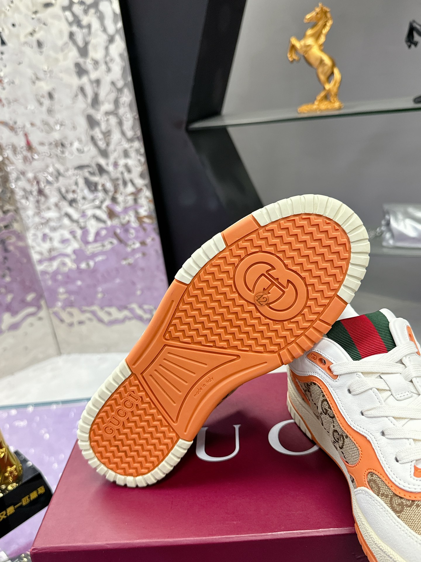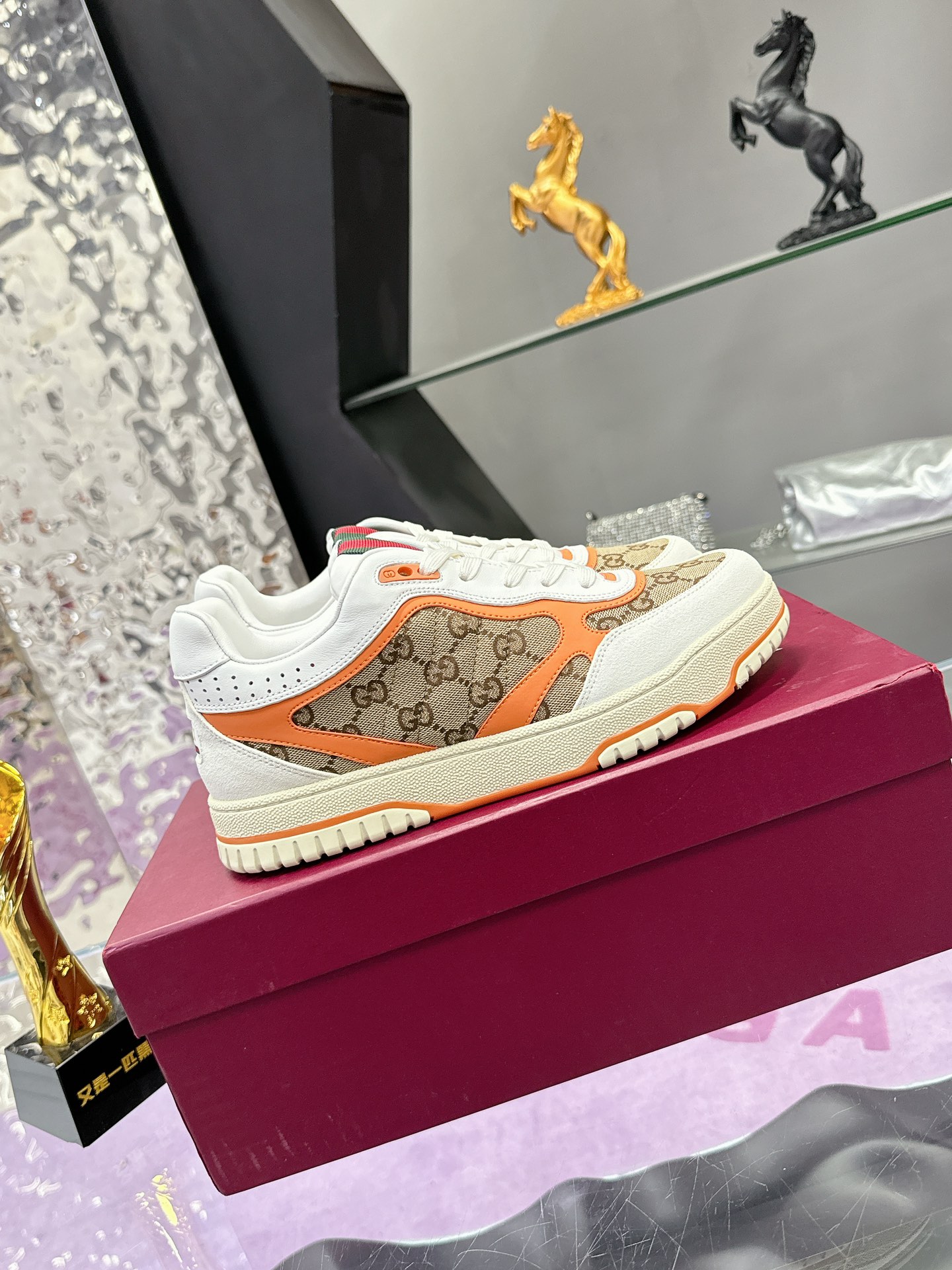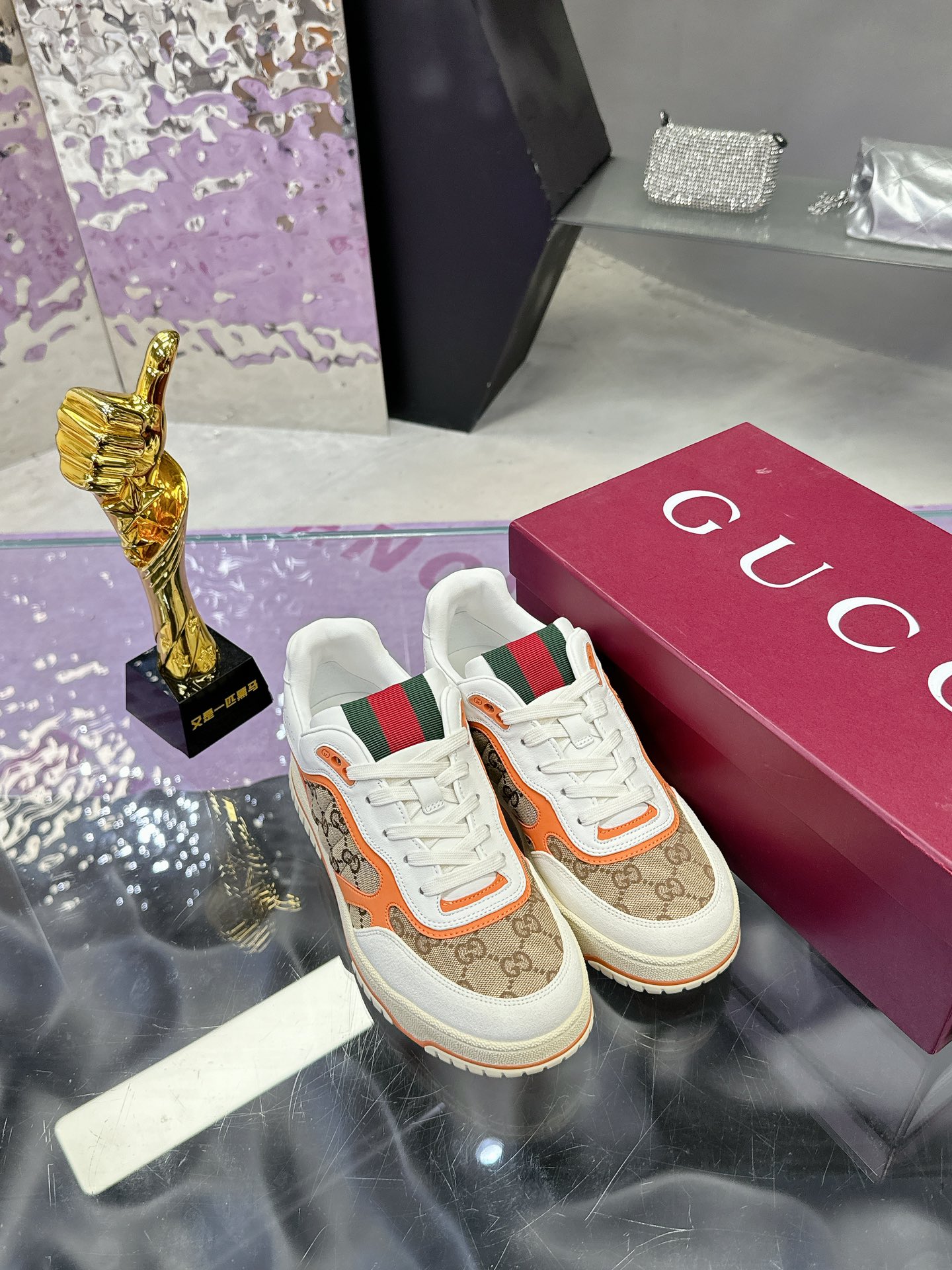 这款鞋子是AAAAA 1:1 质量 (非常棒). 使用了和原版一模一样的材料. 商标部分也保持了和古奇/Gucci一样. 图片拍摄是实物鞋子拍摄, 您所收到的实物保证和我们图片一模一样.