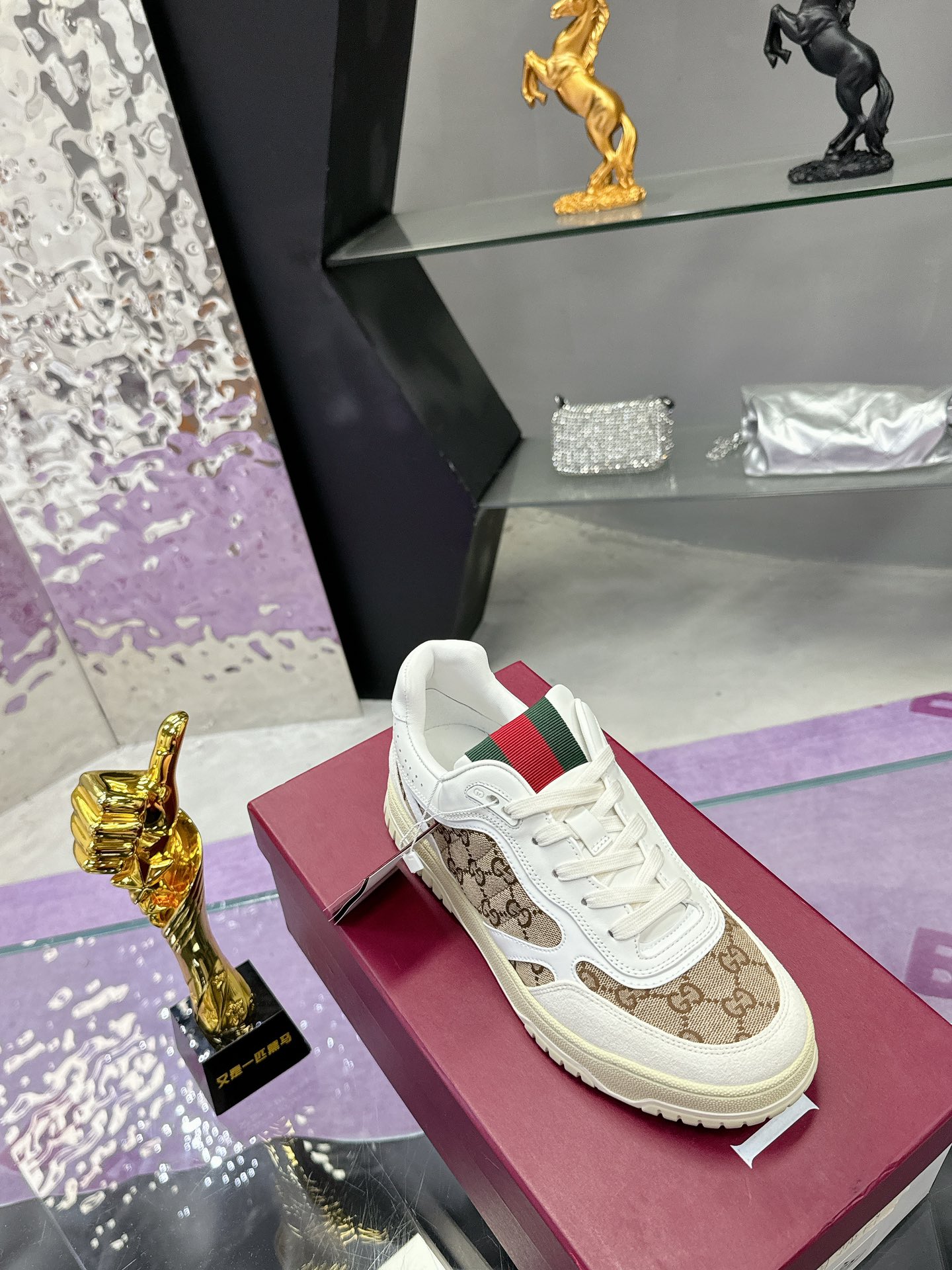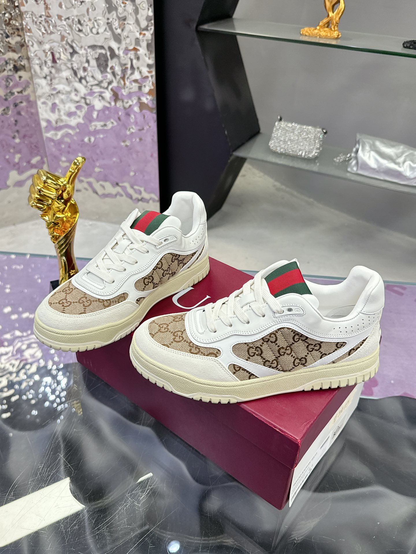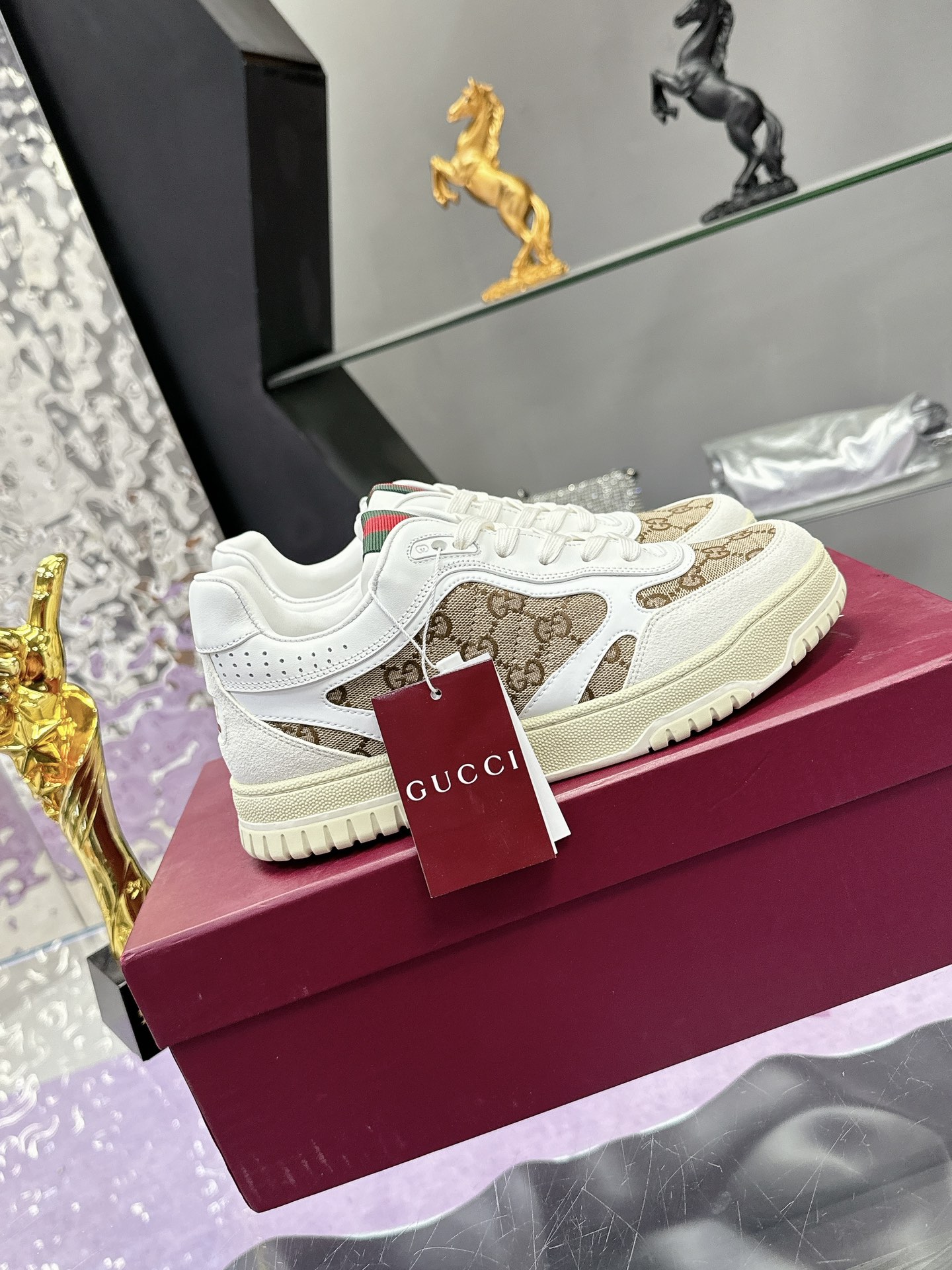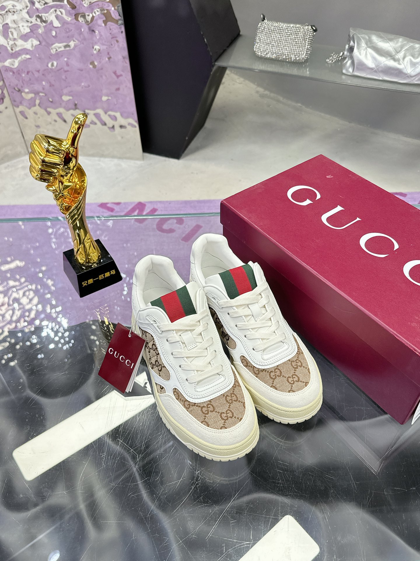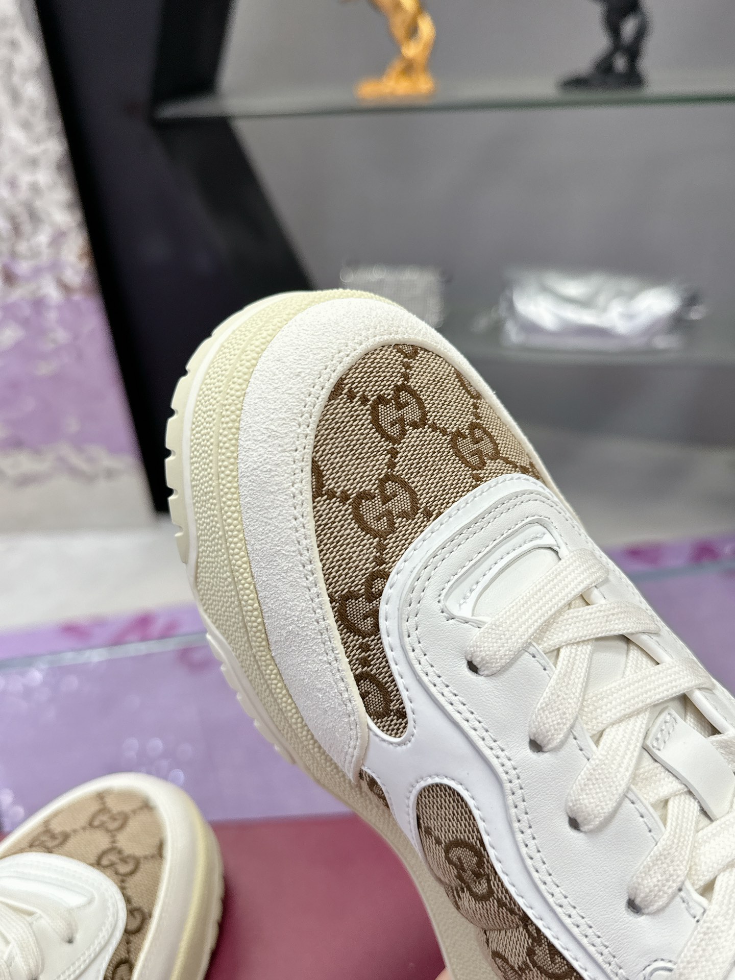 这款鞋子是AAAAA 1:1 质量 (非常棒). 使用了和原版一模一样的材料. 商标部分也保持了和古奇/Gucci一样. 图片拍摄是实物鞋子拍摄, 您所收到的实物保证和我们图片一模一样.