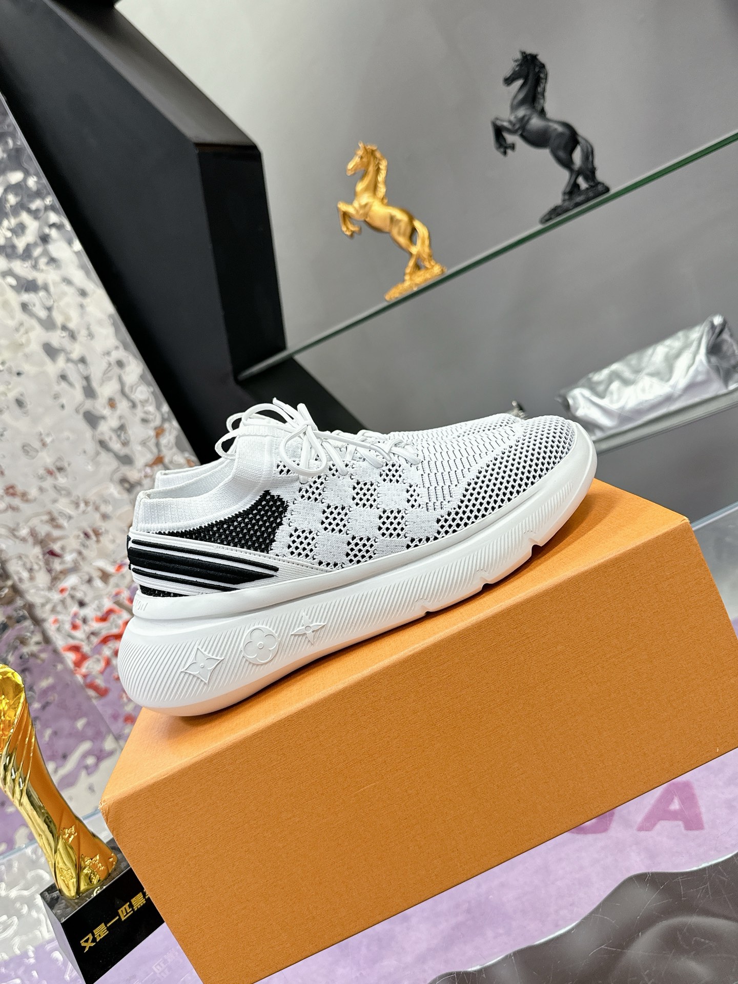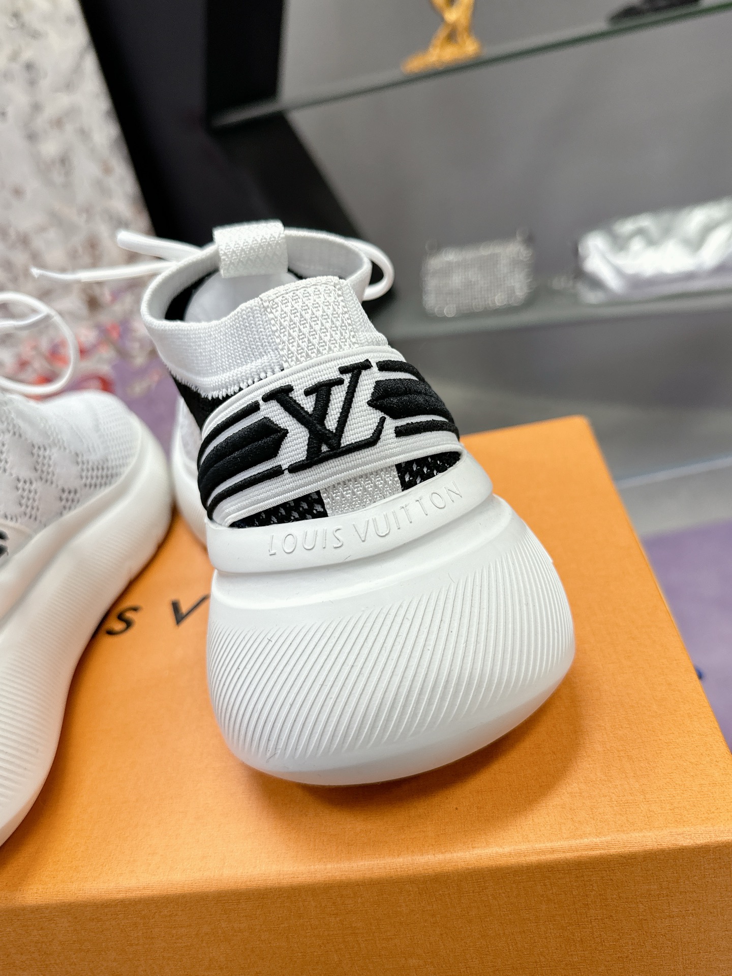 这款鞋子是AAAAA 1:1 质量 (非常棒). 使用了和原版一模一样的材料. 商标部分也保持了和路易威登/Louis Vuitton一样. 图片拍摄是实物鞋子拍摄, 您所收到的实物保证和我们图片一模一样.