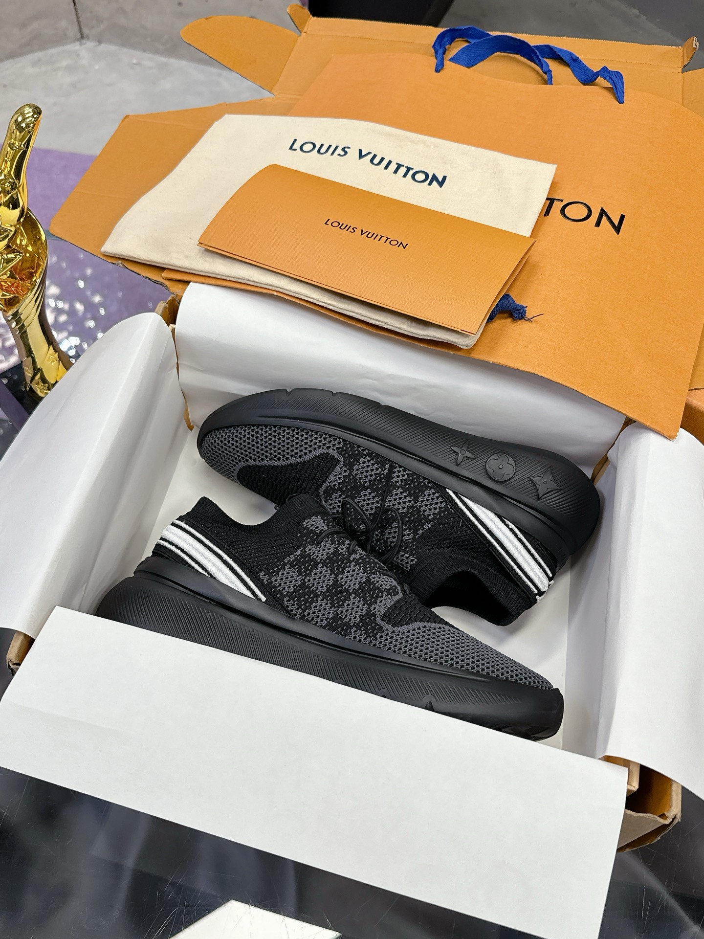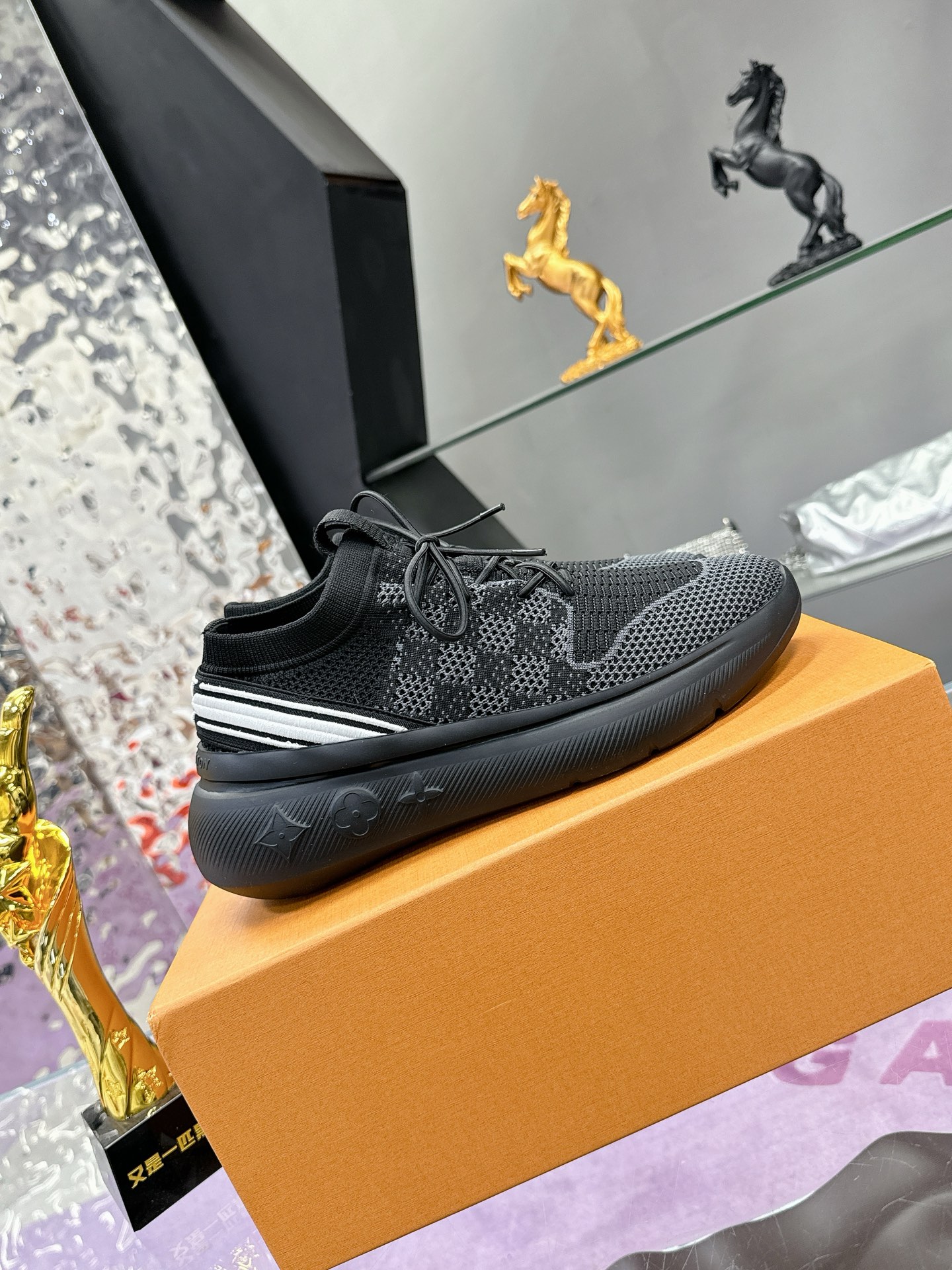 这款鞋子是AAAAA 1:1 质量 (非常棒). 使用了和原版一模一样的材料. 商标部分也保持了和路易威登/Louis Vuitton一样. 图片拍摄是实物鞋子拍摄, 您所收到的实物保证和我们图片一模一样.