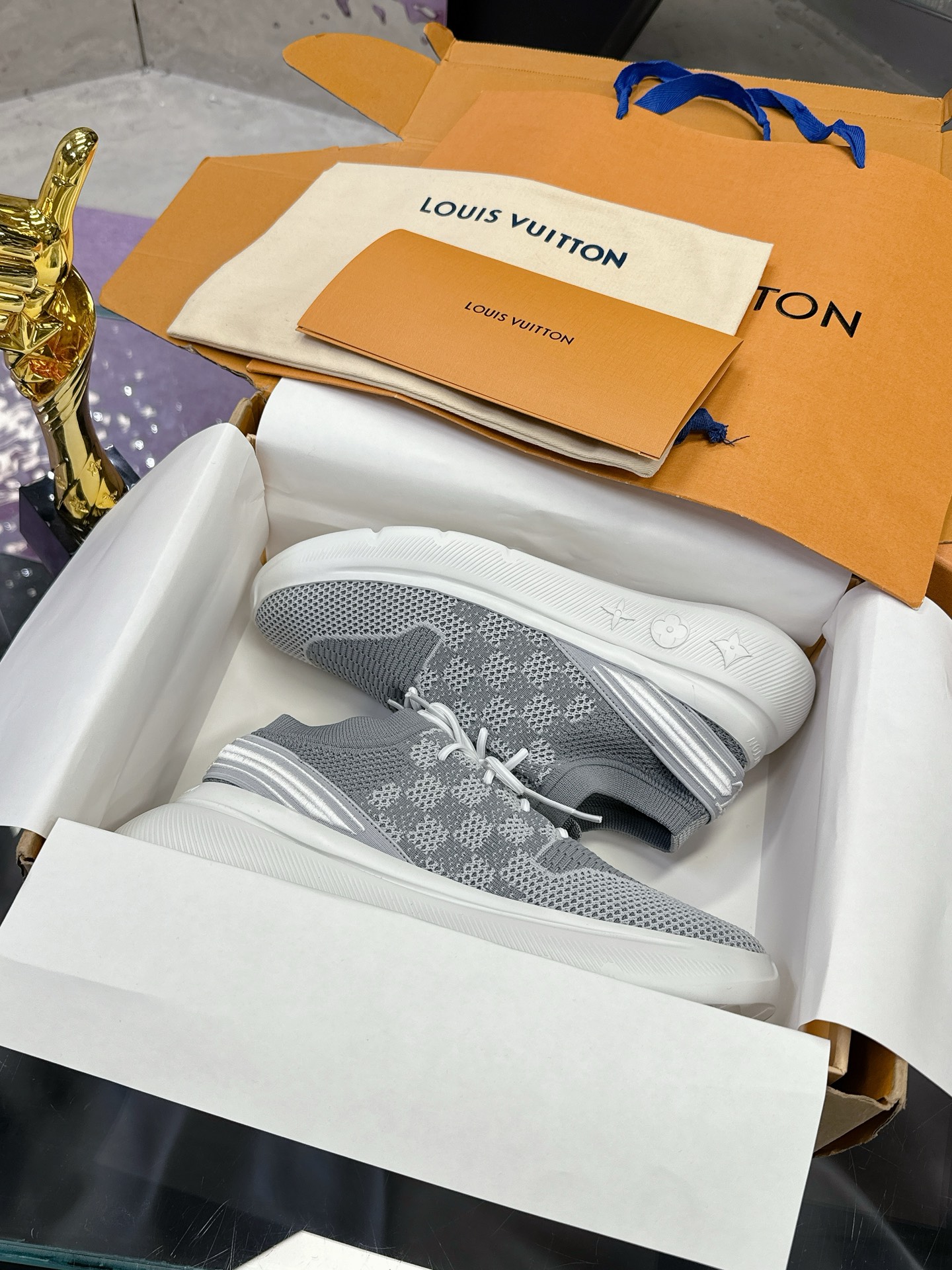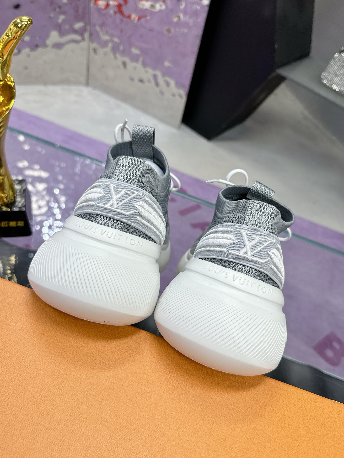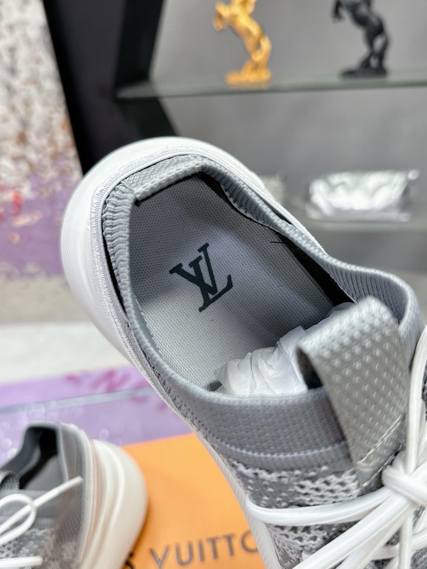 这款鞋子是AAAAA 1:1 质量 (非常棒). 使用了和原版一模一样的材料. 商标部分也保持了和路易威登/Louis Vuitton一样. 图片拍摄是实物鞋子拍摄, 您所收到的实物保证和我们图片一模一样.