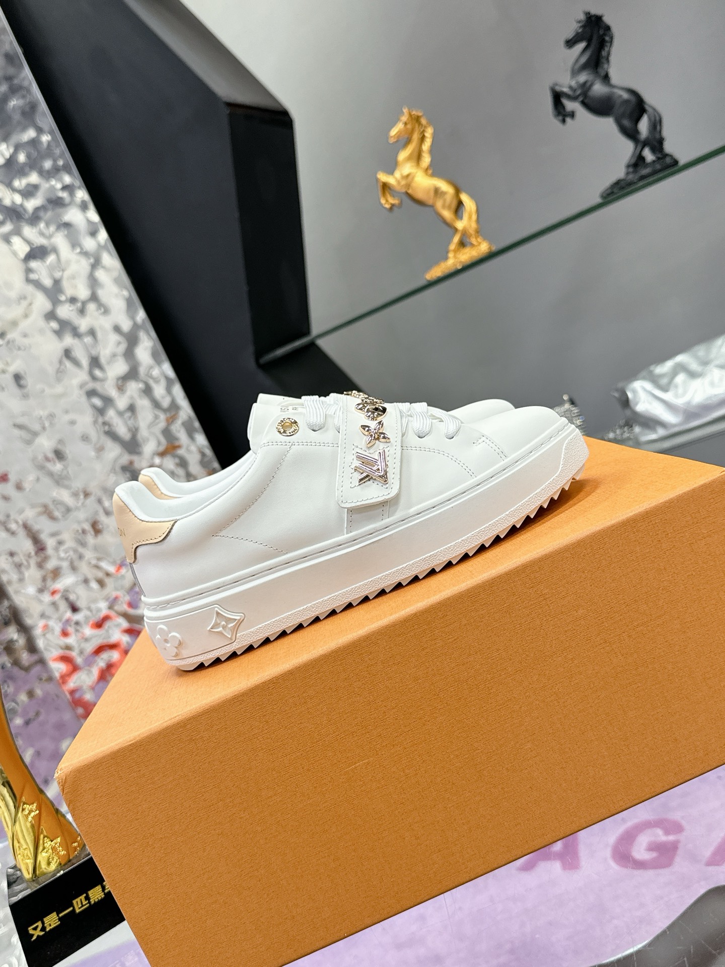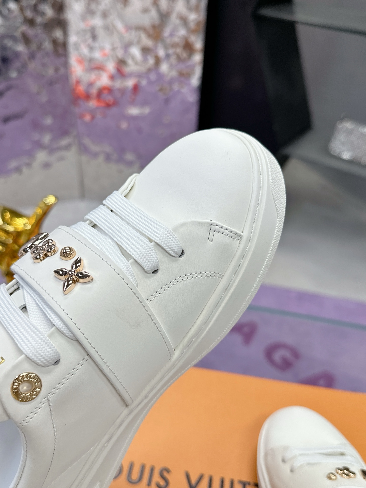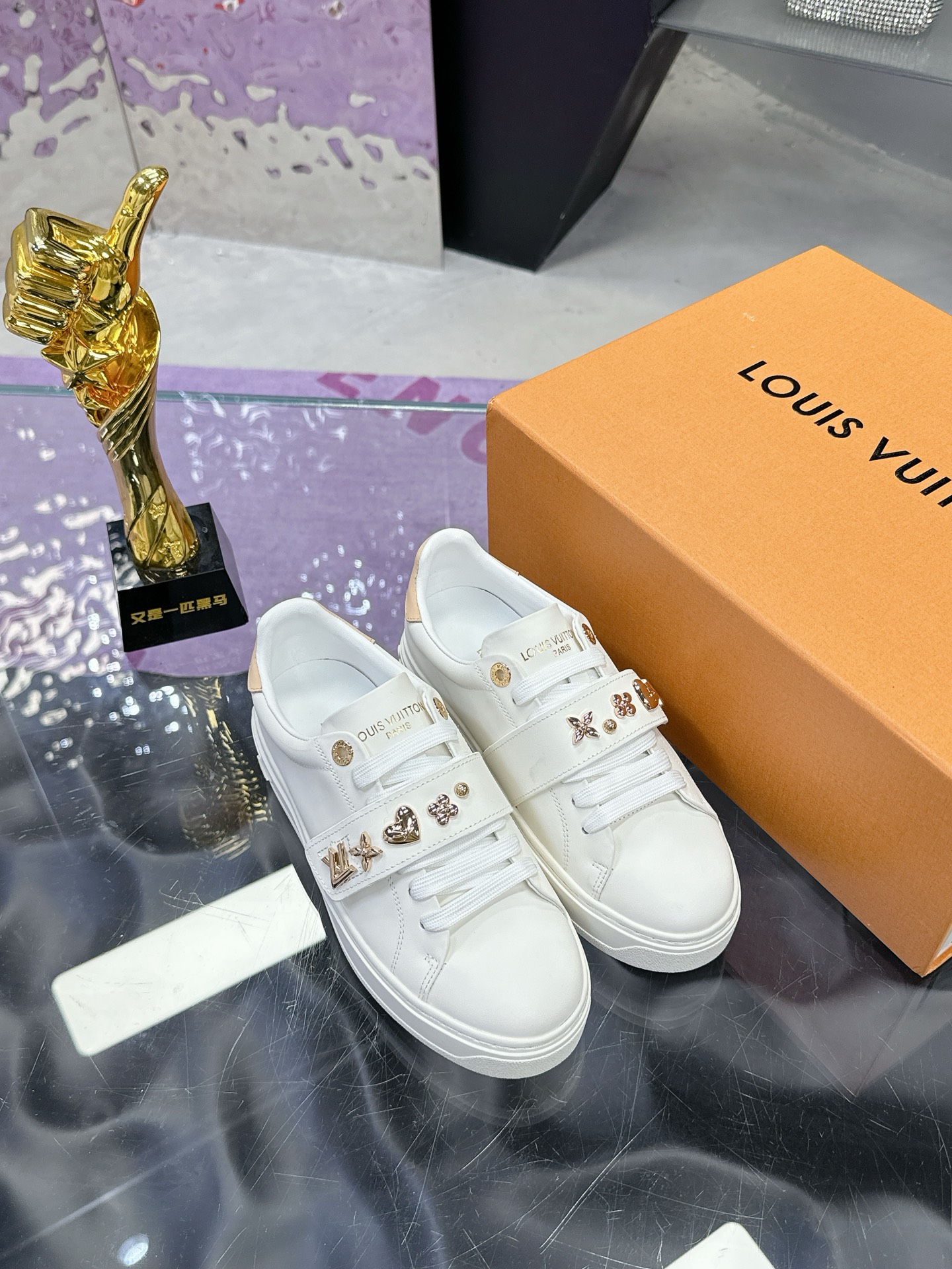 这款鞋子是AAAAA 1:1 质量 (非常棒). 使用了和原版一模一样的材料. 商标部分也保持了和路易威登/Louis Vuitton一样. 图片拍摄是实物鞋子拍摄, 您所收到的实物保证和我们图片一模一样.
