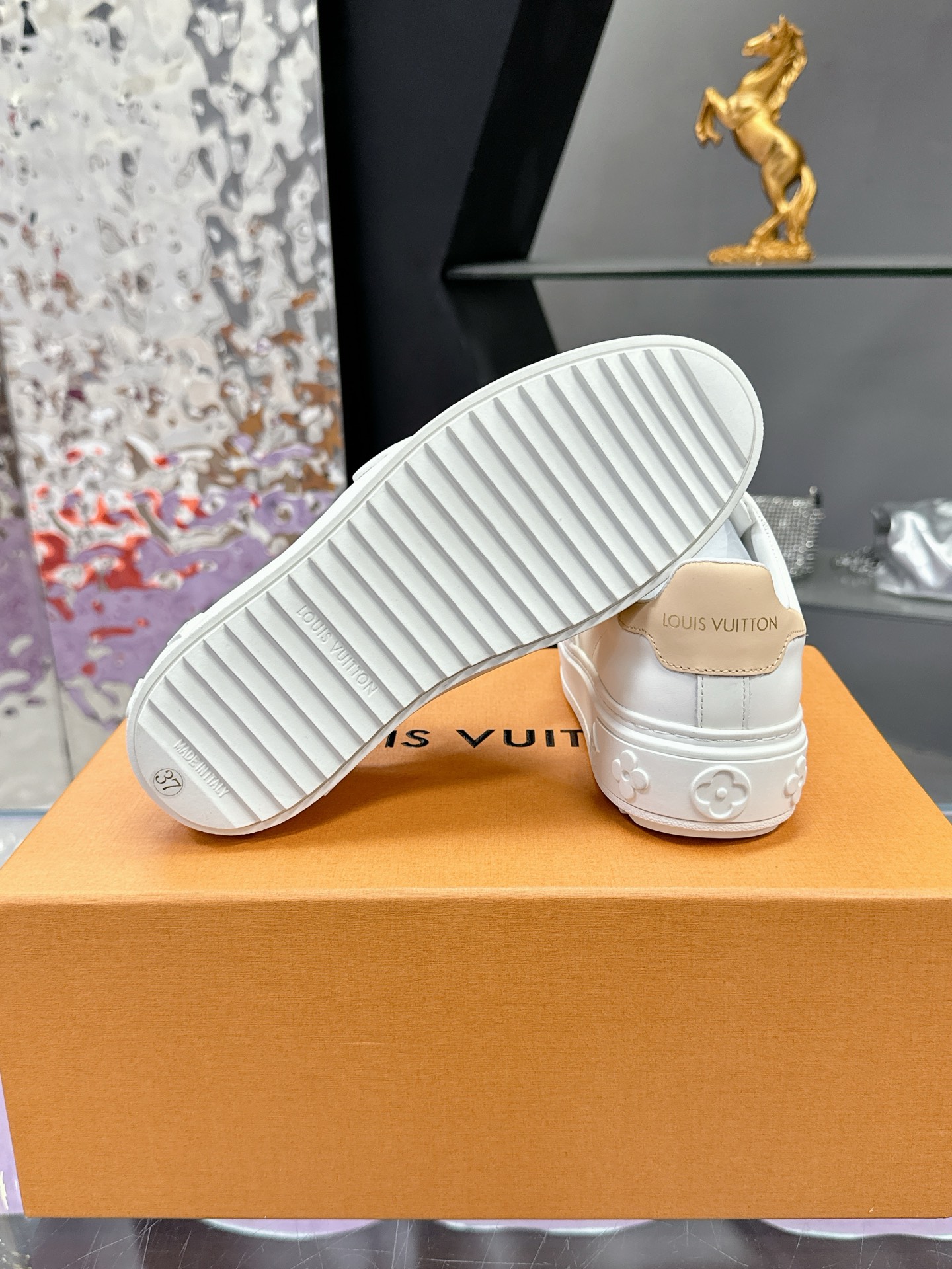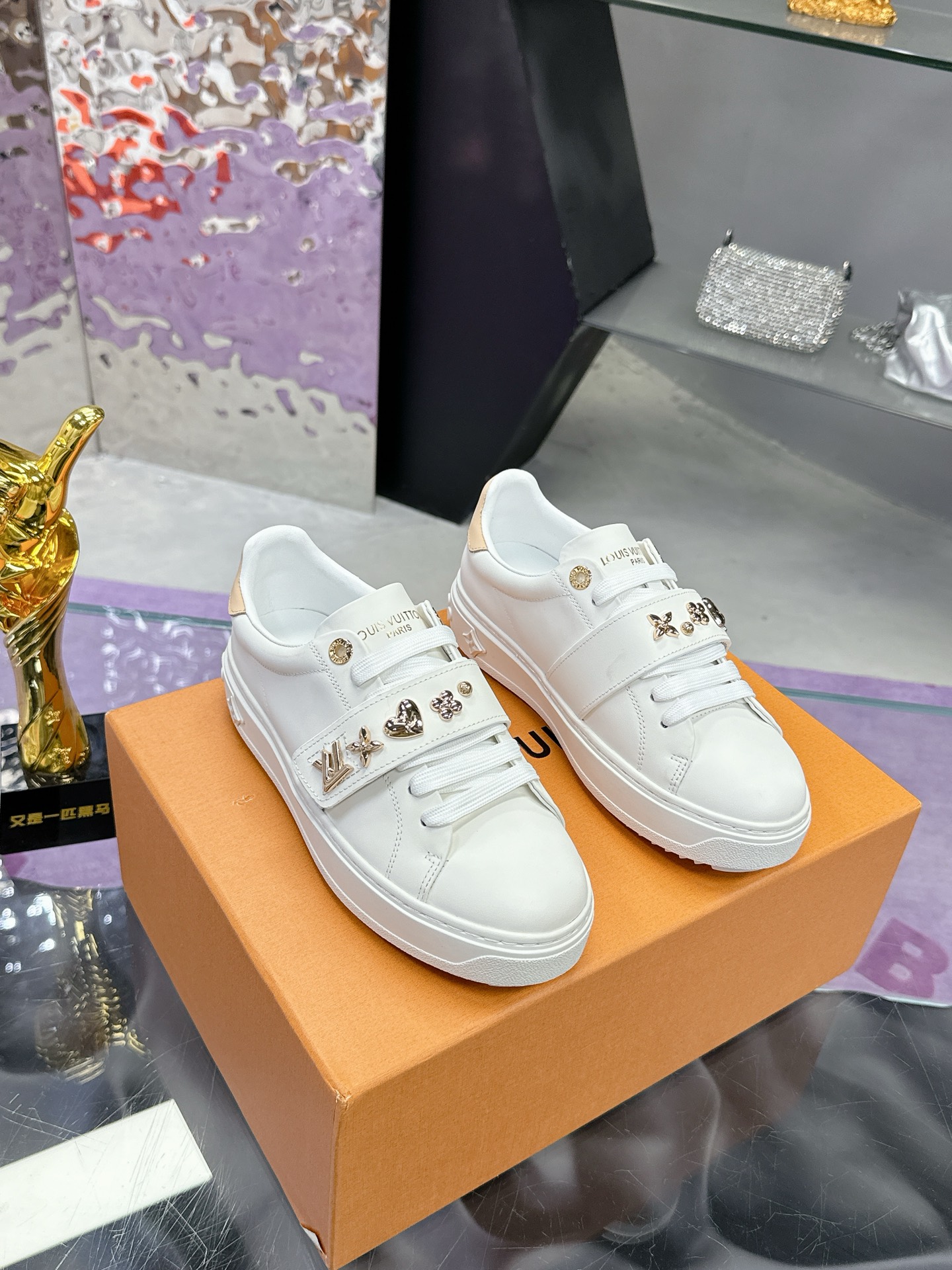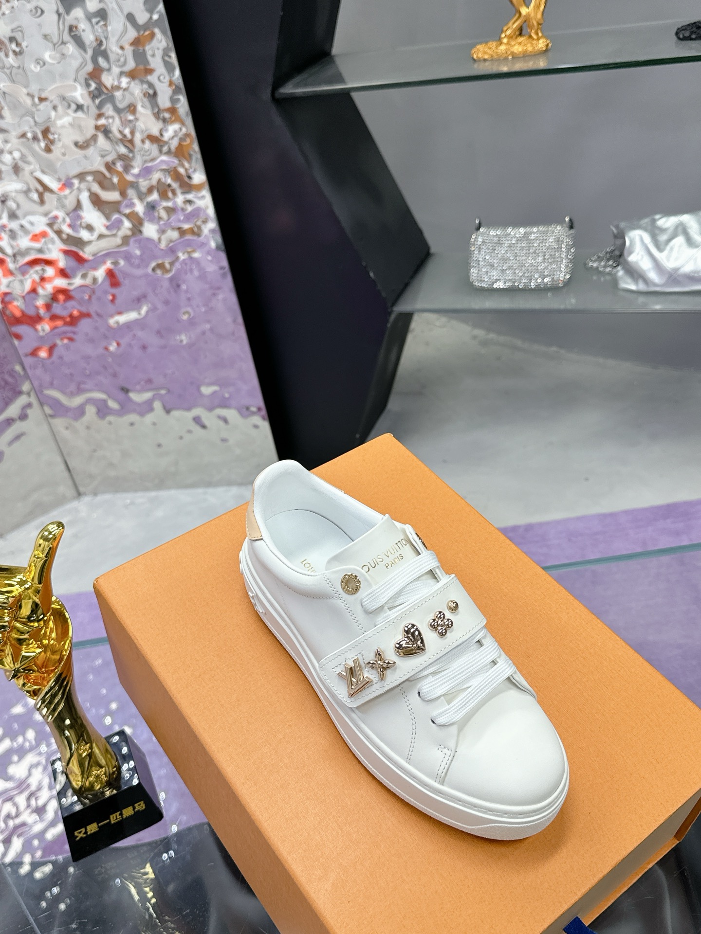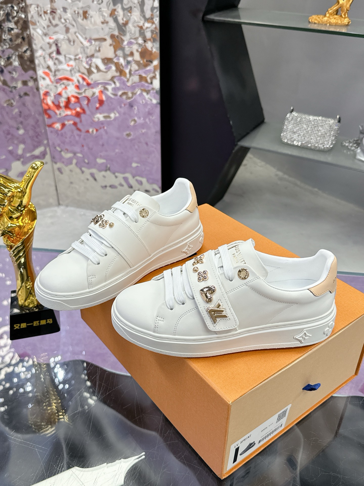 这款鞋子是AAAAA 1:1 质量 (非常棒). 使用了和原版一模一样的材料. 商标部分也保持了和路易威登/Louis Vuitton一样. 图片拍摄是实物鞋子拍摄, 您所收到的实物保证和我们图片一模一样.