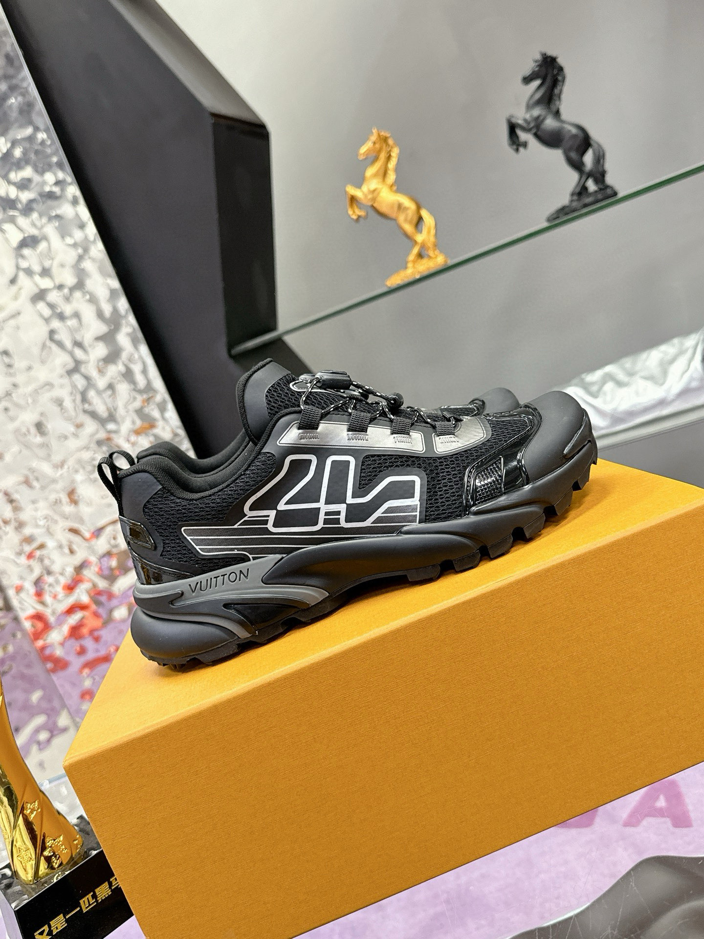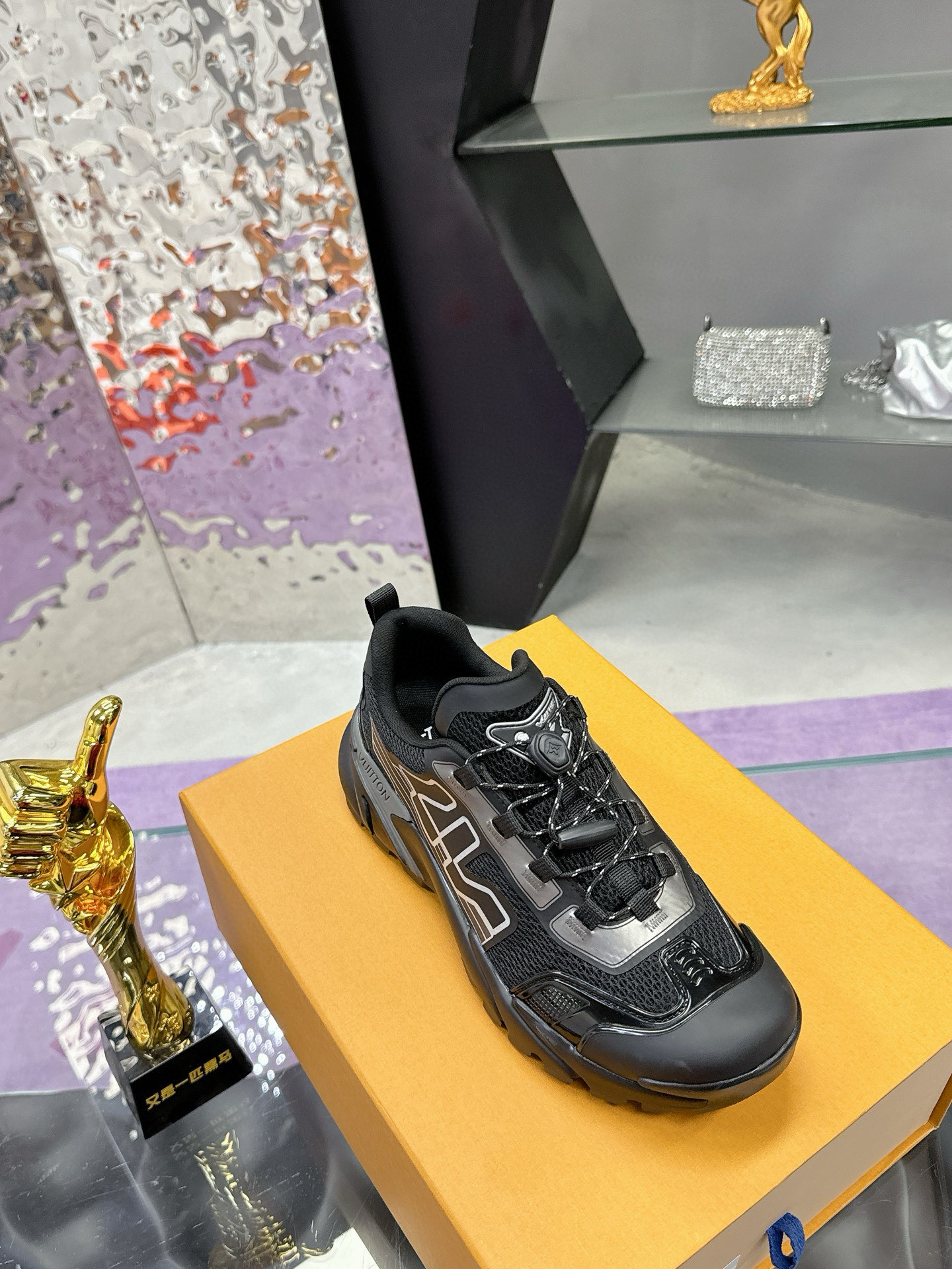 这款鞋子是AAAAA 1:1 质量 (非常棒). 使用了和原版一模一样的材料. 商标部分也保持了和路易威登/Louis Vuitton一样. 图片拍摄是实物鞋子拍摄, 您所收到的实物保证和我们图片一模一样.
