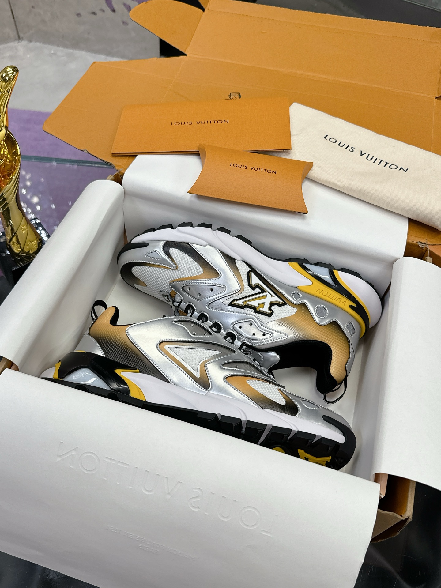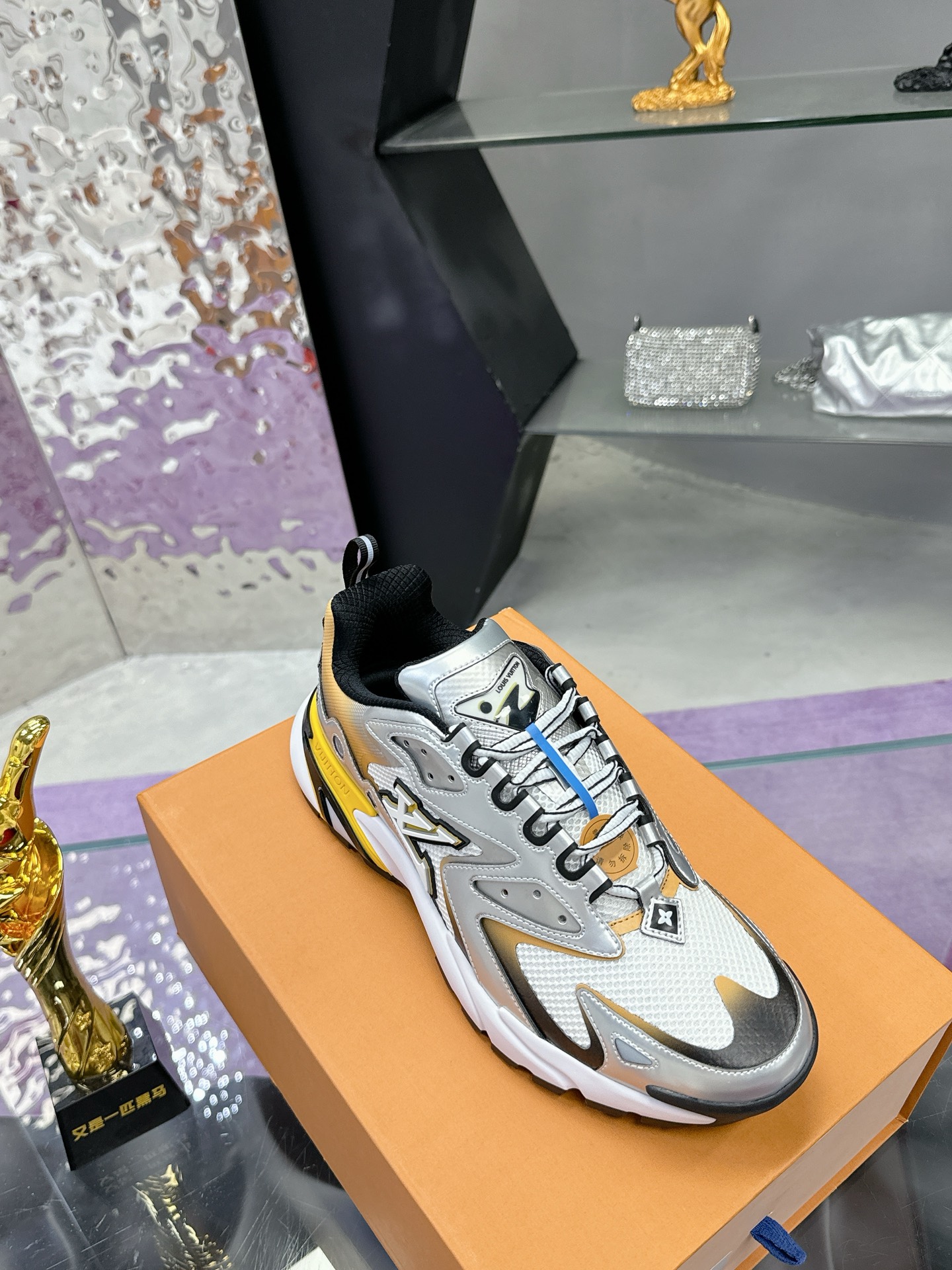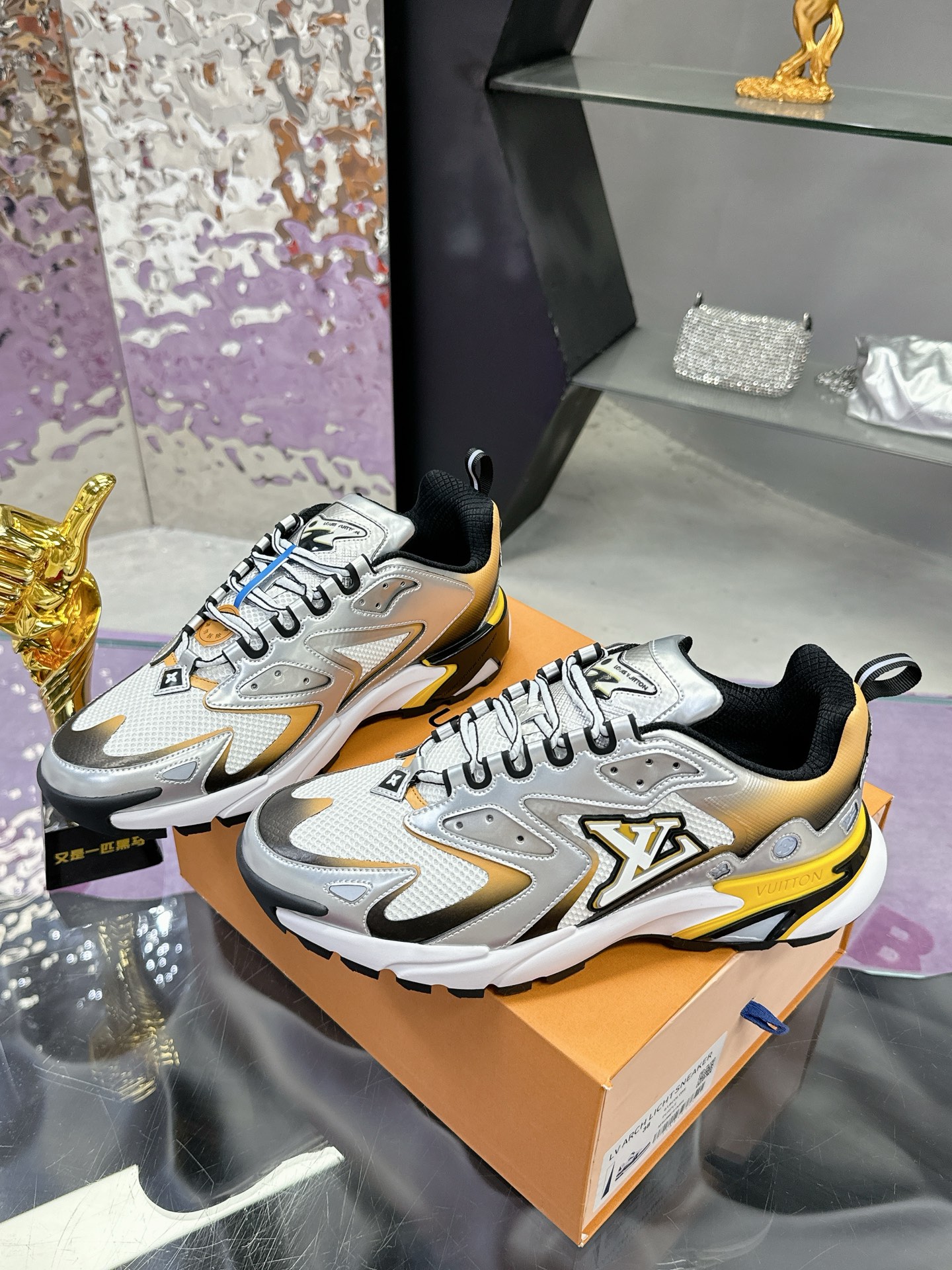 这款鞋子是AAAAA 1:1 质量 (非常棒). 使用了和原版一模一样的材料. 商标部分也保持了和路易威登/Louis Vuitton一样. 图片拍摄是实物鞋子拍摄, 您所收到的实物保证和我们图片一模一样.