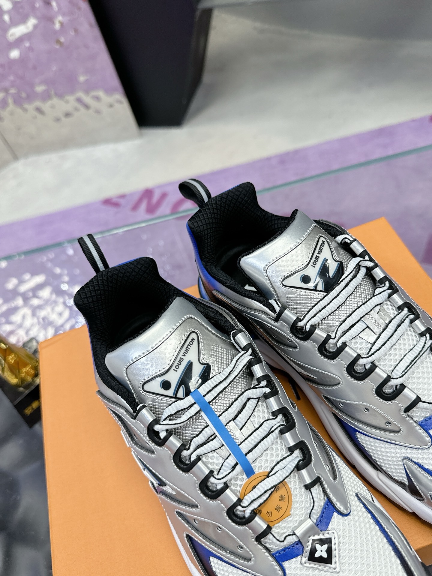 这款鞋子是AAAAA 1:1 质量 (非常棒). 使用了和原版一模一样的材料. 商标部分也保持了和路易威登/Louis Vuitton一样. 图片拍摄是实物鞋子拍摄, 您所收到的实物保证和我们图片一模一样.
