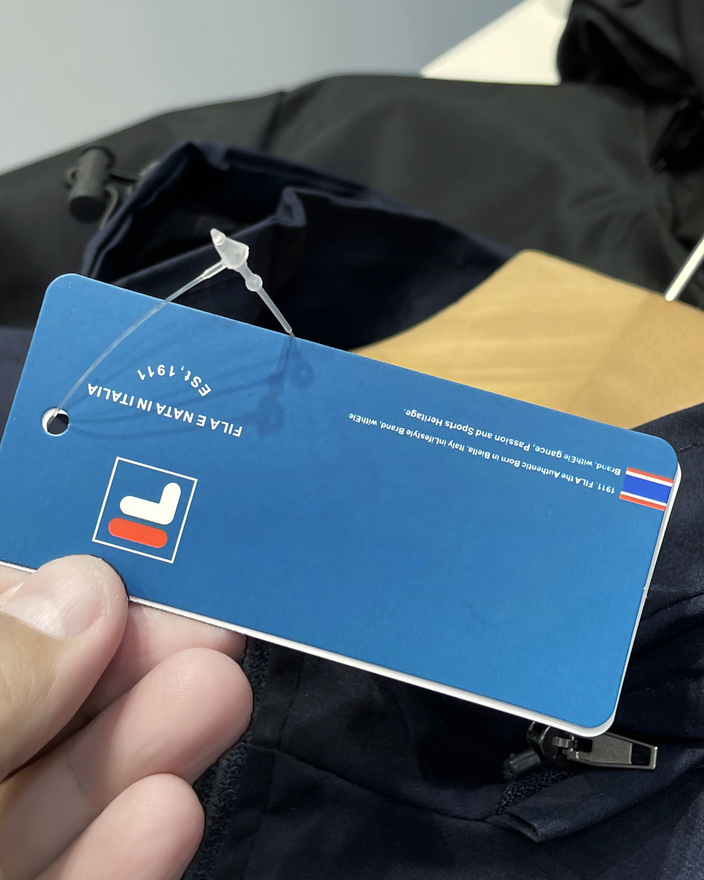 这款衣服是AAAAA 1:1 质量 (非常棒). 使用了和原版一模一样的材料. 商标部分也保持了和Fila一样. 图片拍摄是实物衣服拍摄, 您所收到的实物保证和我们图片一模一样.
