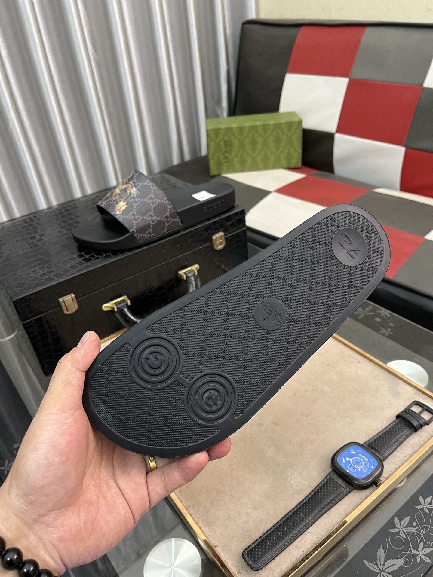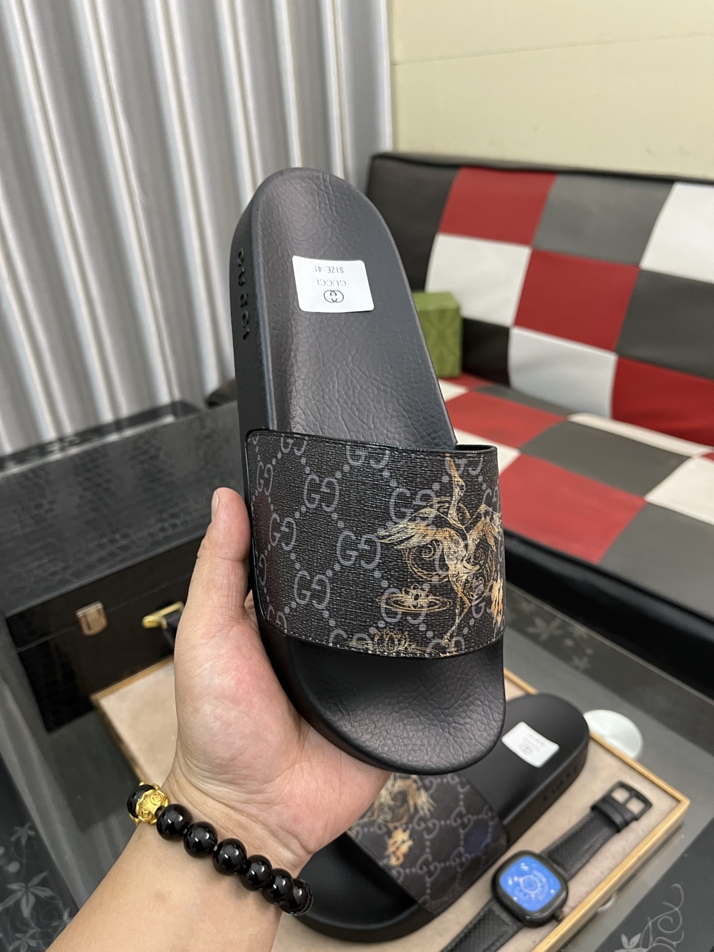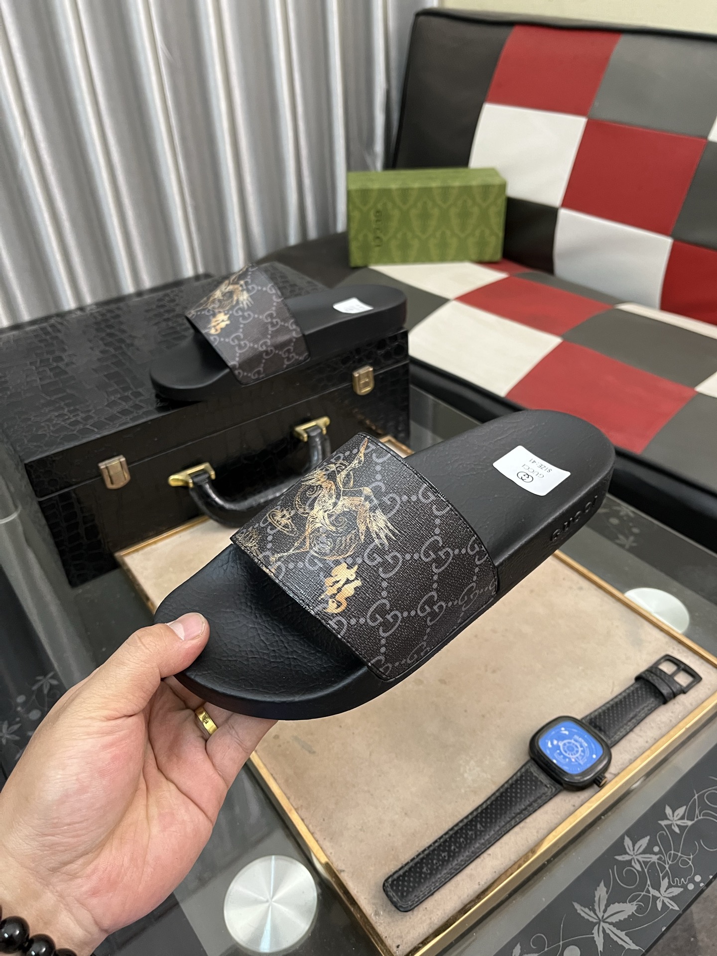 这款鞋子是AAAAA 1:1 质量 (非常棒). 使用了和原版一模一样的材料. 商标部分也保持了和古奇/Gucci一样. 图片拍摄是实物鞋子拍摄, 您所收到的实物保证和我们图片一模一样.