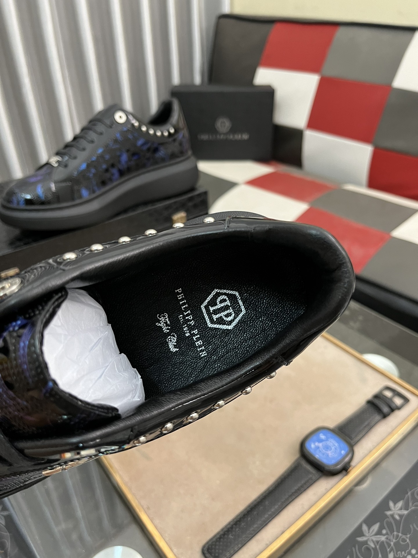 这款鞋子是AAAAA 1:1 质量 (非常棒). 使用了和原版一模一样的材料. 商标部分也保持了和菲利普·普林/Philipp Plein一样. 图片拍摄是实物鞋子拍摄, 您所收到的实物保证和我们图片一模一样.