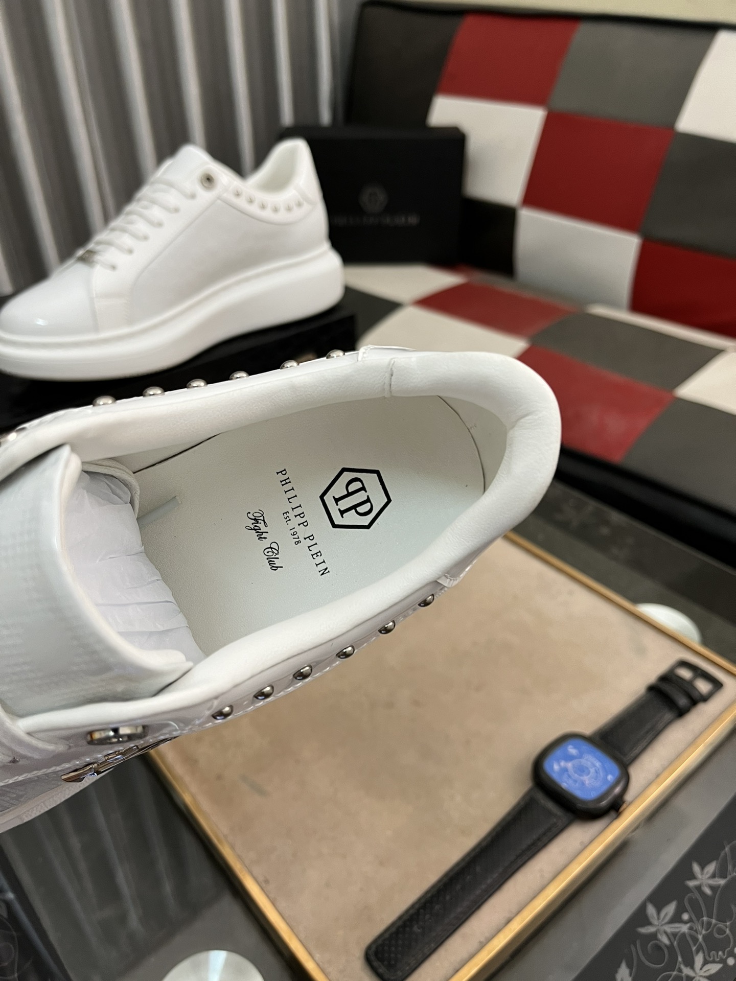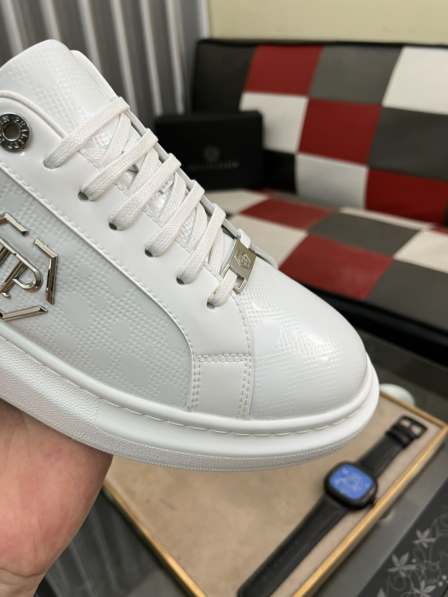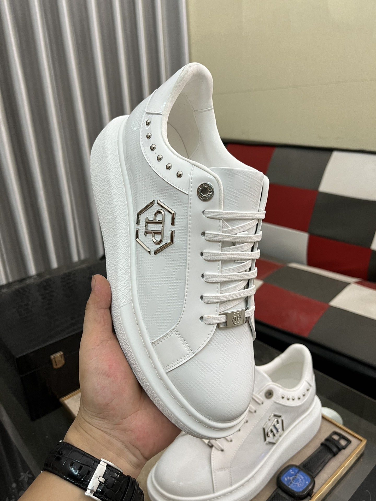 这款鞋子是AAAAA 1:1 质量 (非常棒). 使用了和原版一模一样的材料. 商标部分也保持了和菲利普·普林/Philipp Plein一样. 图片拍摄是实物鞋子拍摄, 您所收到的实物保证和我们图片一模一样.