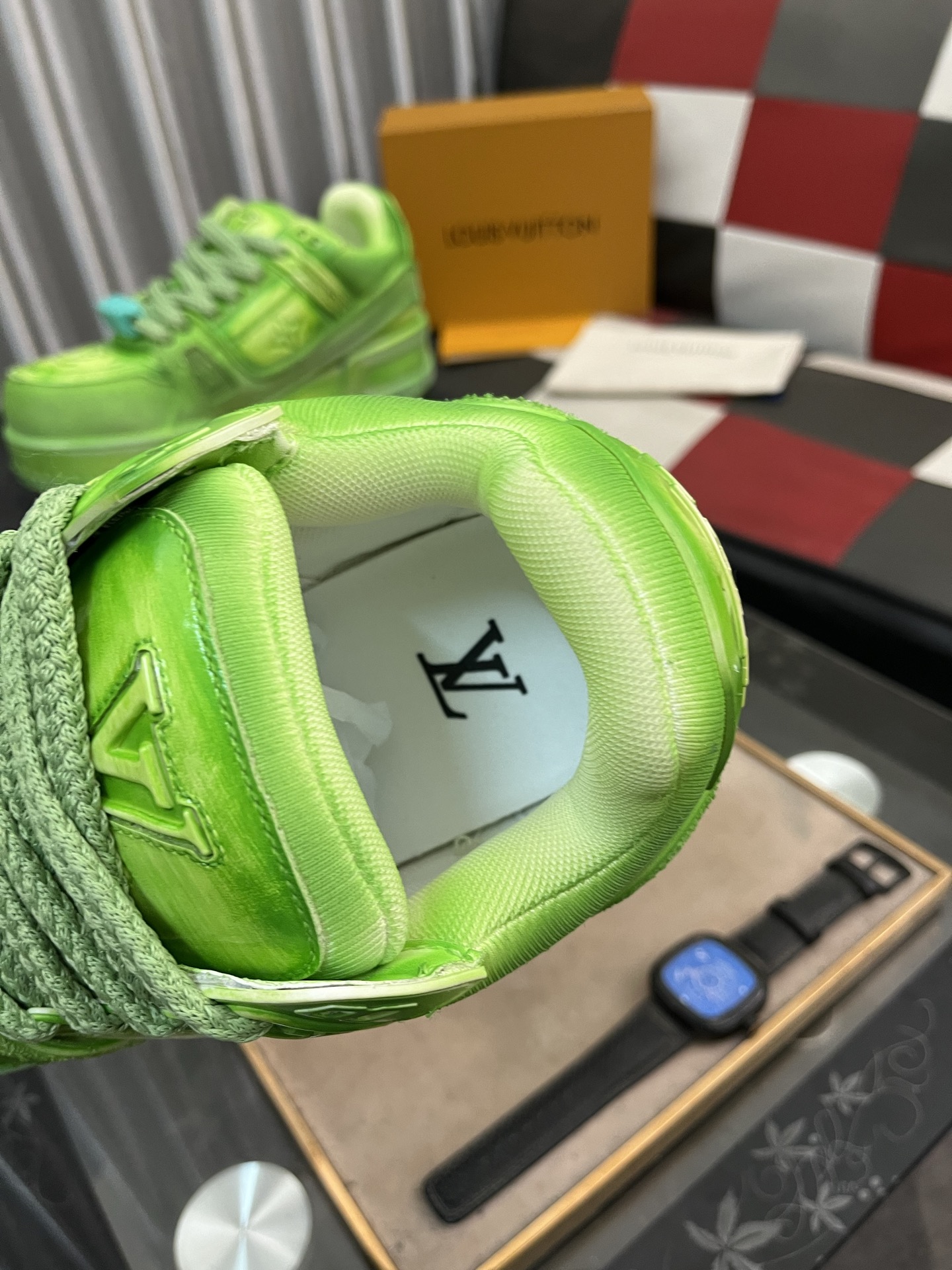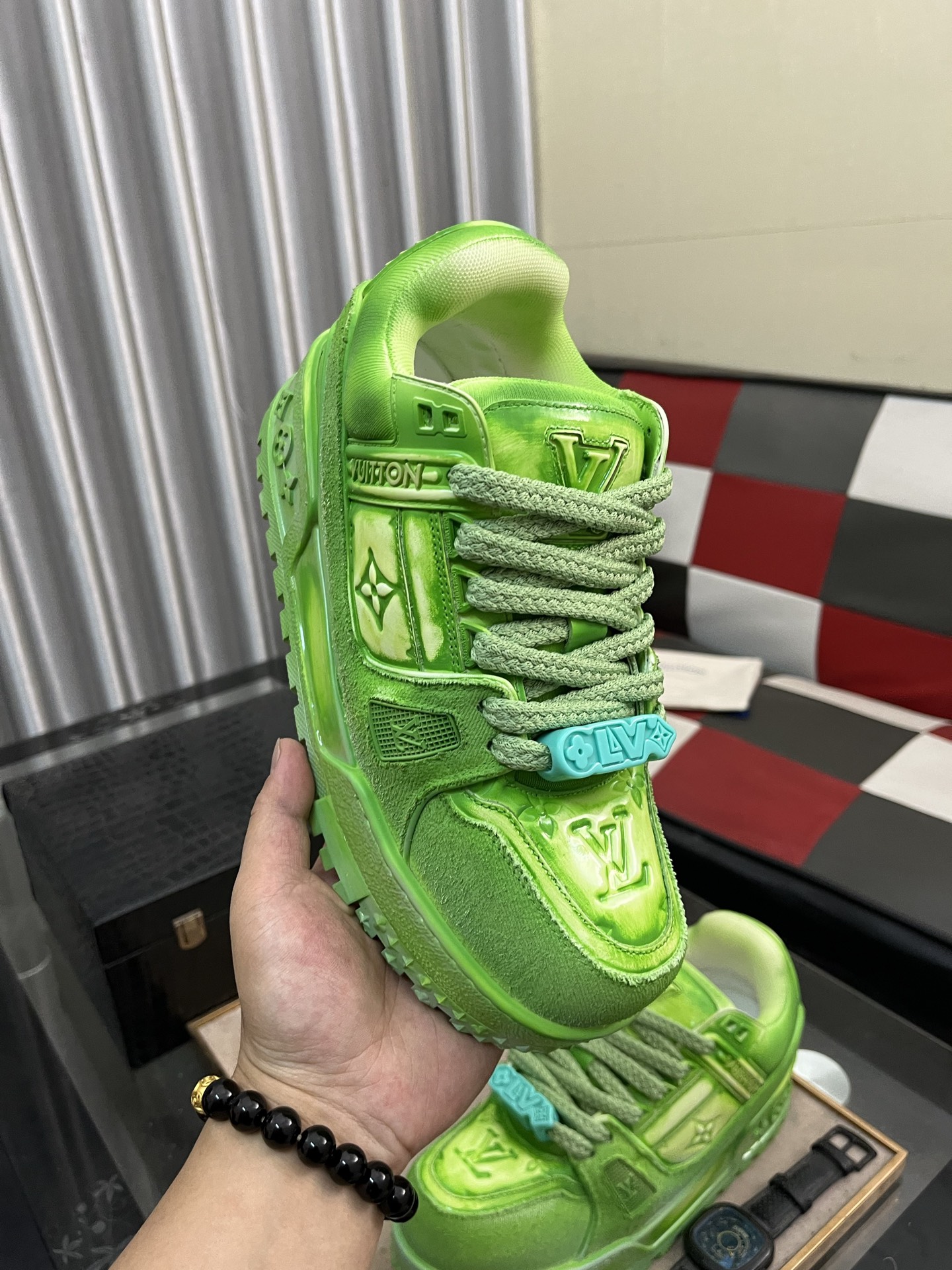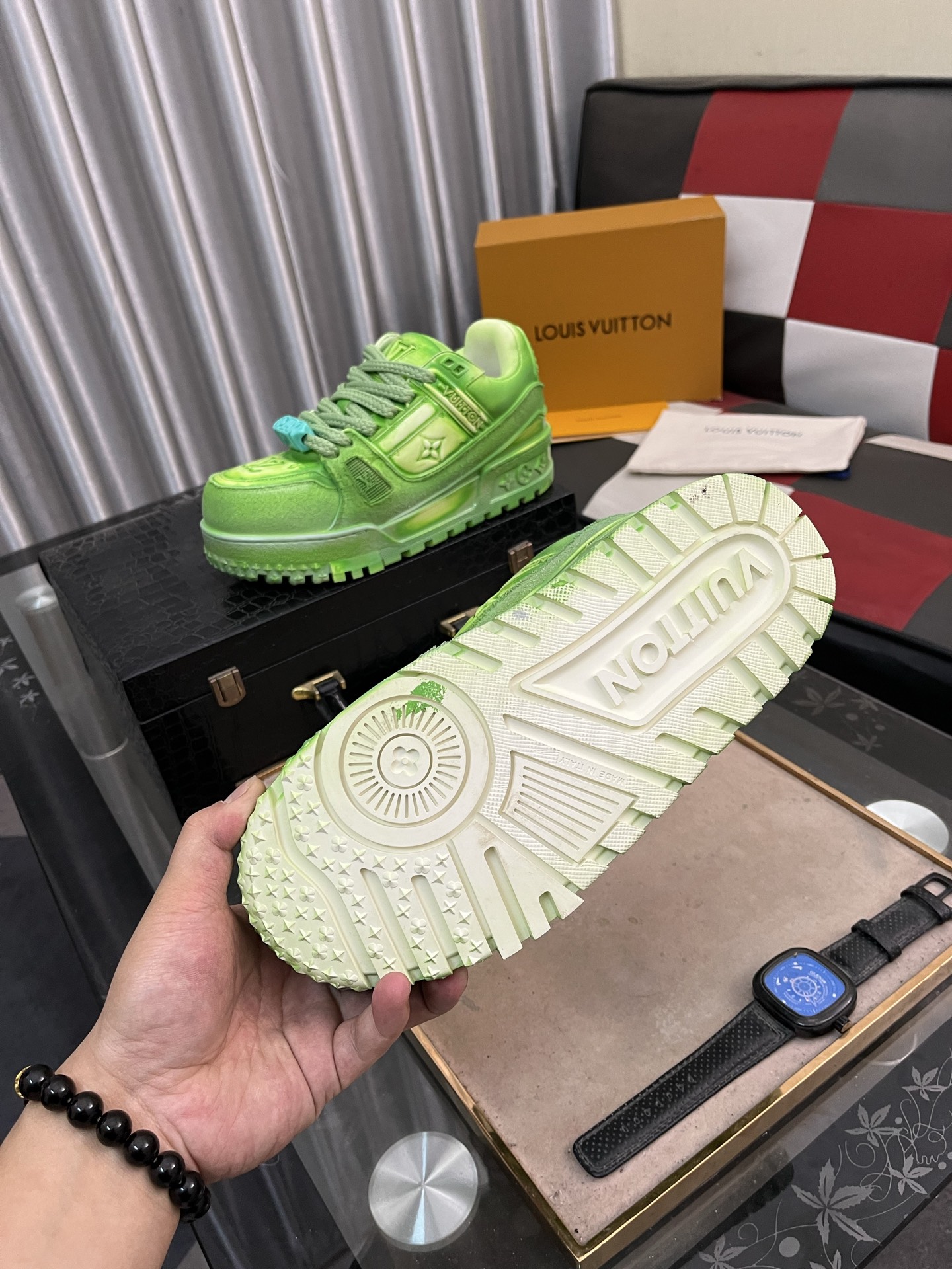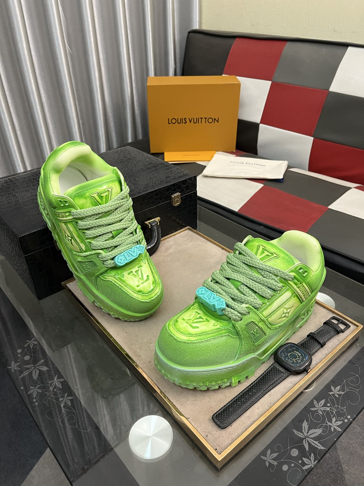 这款鞋子是AAAAA 1:1 质量 (非常棒). 使用了和原版一模一样的材料. 商标部分也保持了和路易威登/Louis Vuitton一样. 图片拍摄是实物鞋子拍摄, 您所收到的实物保证和我们图片一模一样.