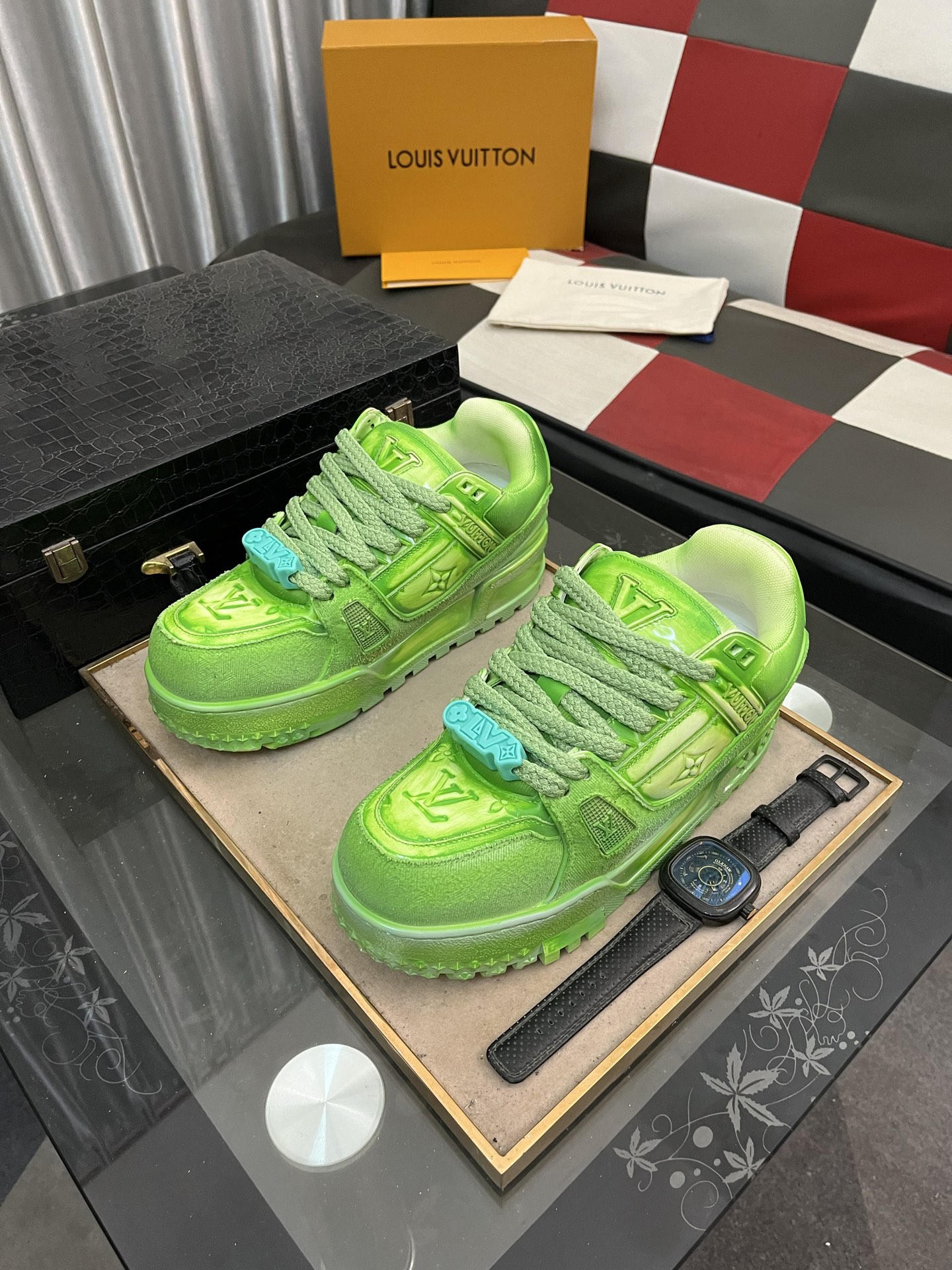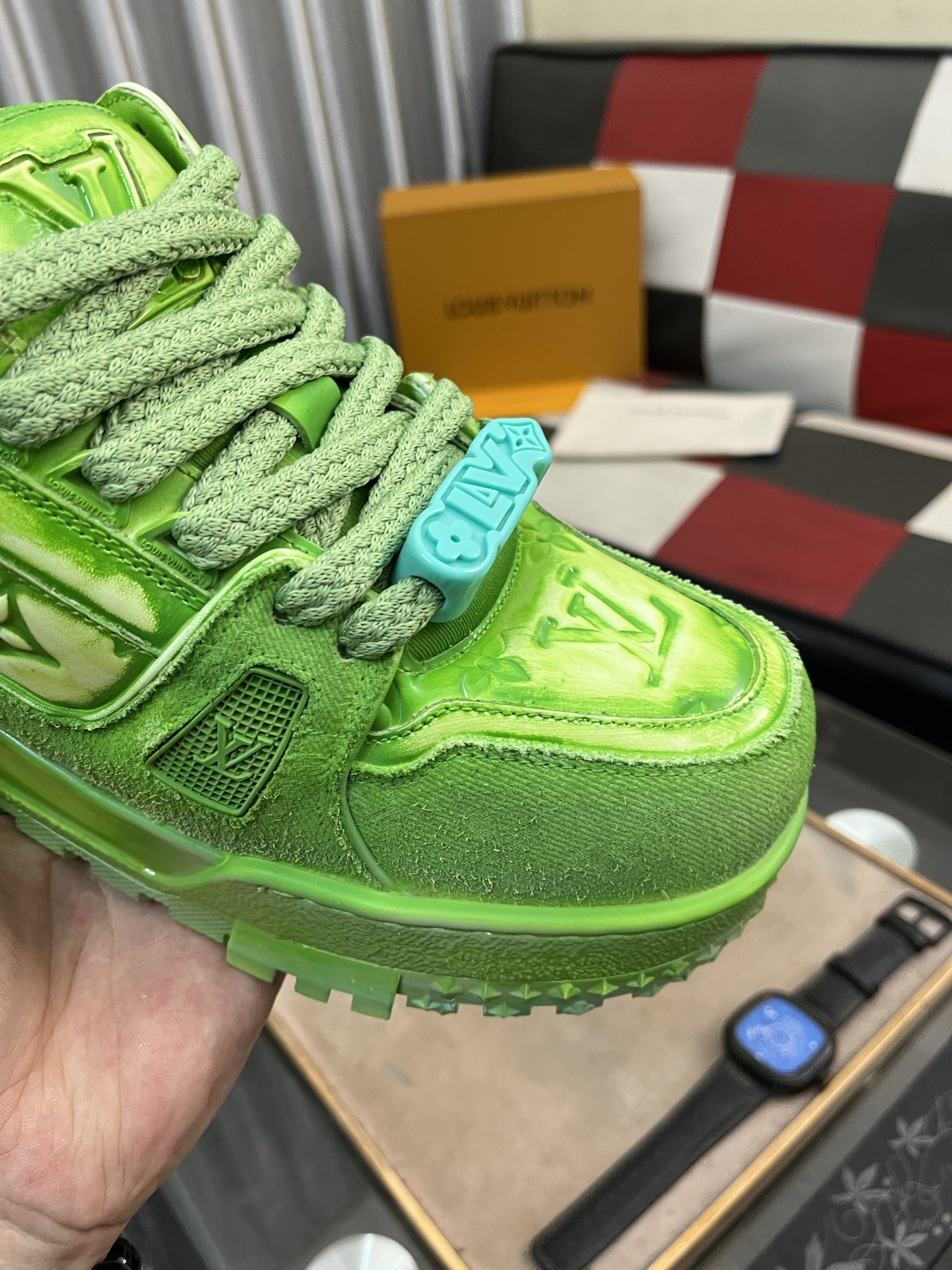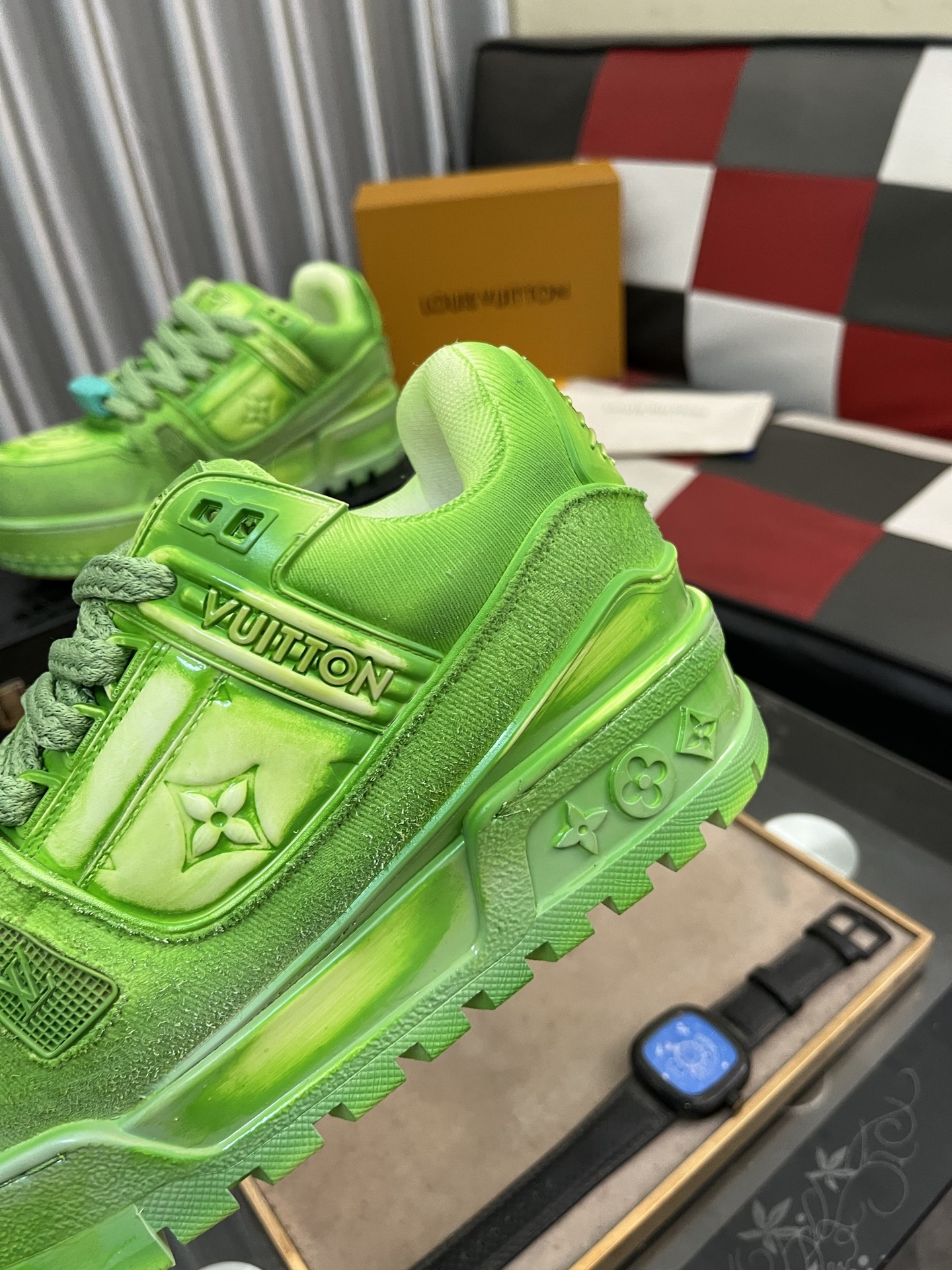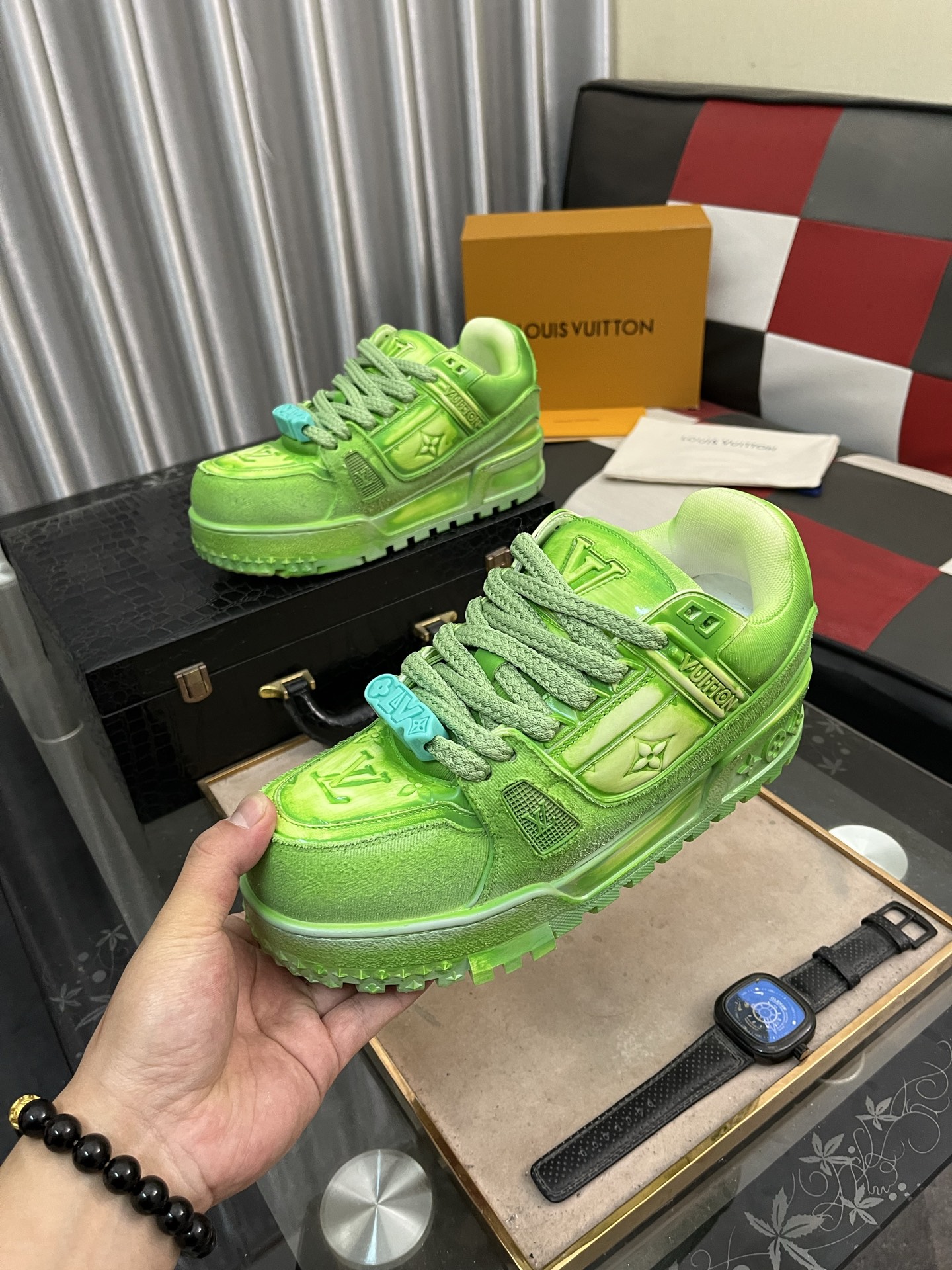 这款鞋子是AAAAA 1:1 质量 (非常棒). 使用了和原版一模一样的材料. 商标部分也保持了和路易威登/Louis Vuitton一样. 图片拍摄是实物鞋子拍摄, 您所收到的实物保证和我们图片一模一样.