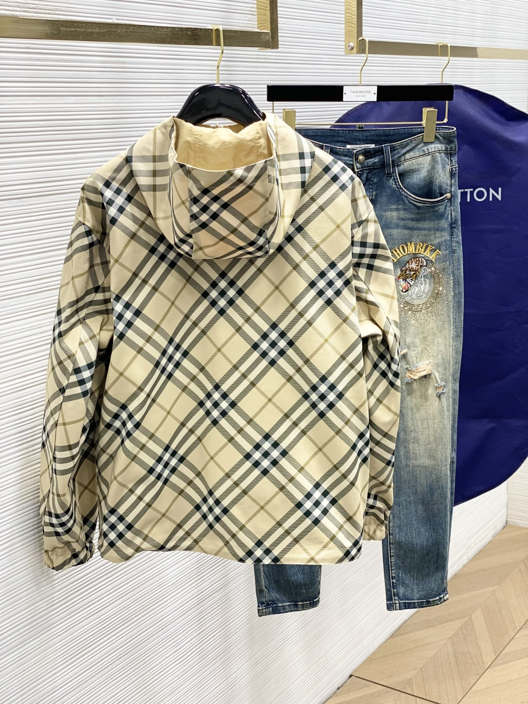 这款衣服是AAAAA 1:1 质量 (非常棒). 使用了和原版一模一样的材料. 商标部分也保持了和巴宝莉/Burberry一样. 图片拍摄是实物衣服拍摄, 您所收到的实物保证和我们图片一模一样.