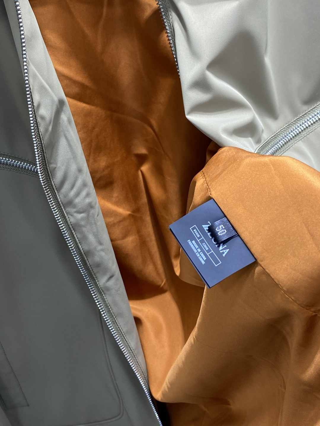 这款衣服是AAAAA 1:1 质量 (非常棒). 使用了和原版一模一样的材料. 商标部分也保持了和杰尼亚/Zegna一样. 图片拍摄是实物衣服拍摄, 您所收到的实物保证和我们图片一模一样.