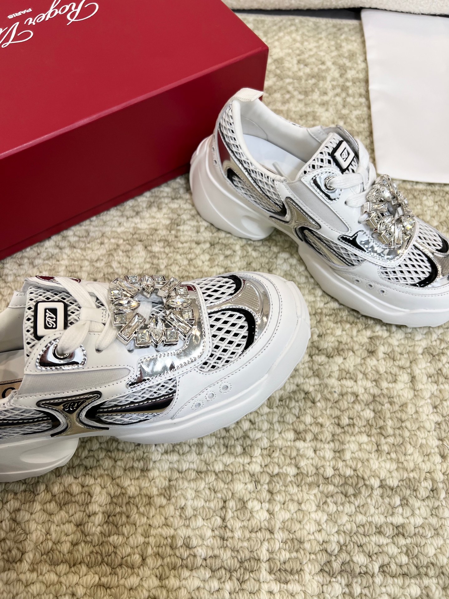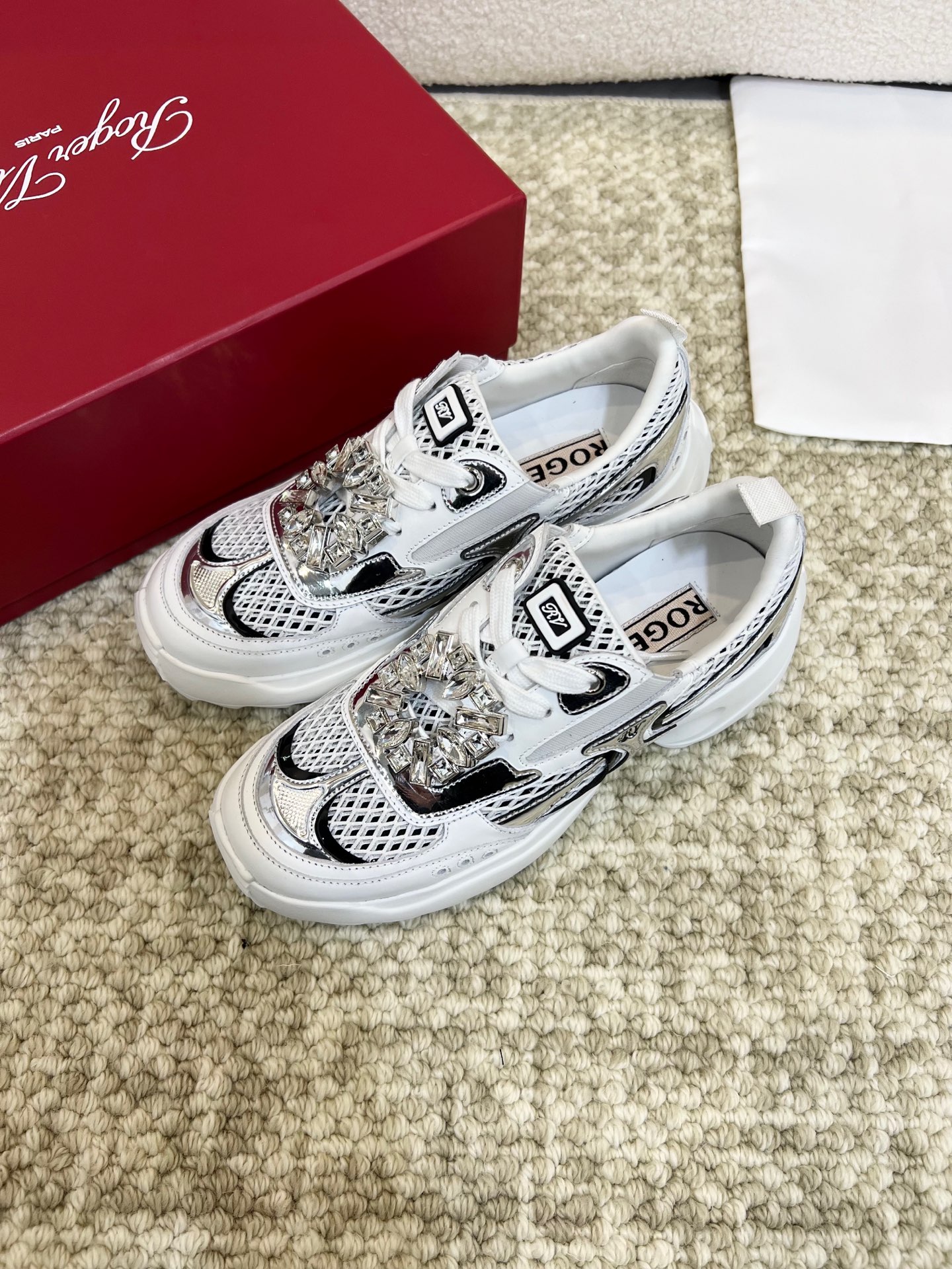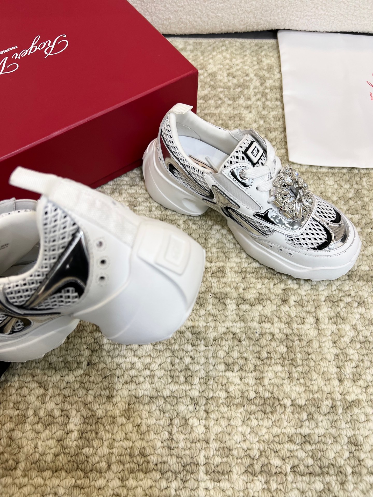 这款鞋子是AAAAA 1:1 质量 (非常棒). 使用了和原版一模一样的材料. 商标部分也保持了和罗杰维维耶/Roger Vivier一样. 图片拍摄是实物鞋子拍摄, 您所收到的实物保证和我们图片一模一样.