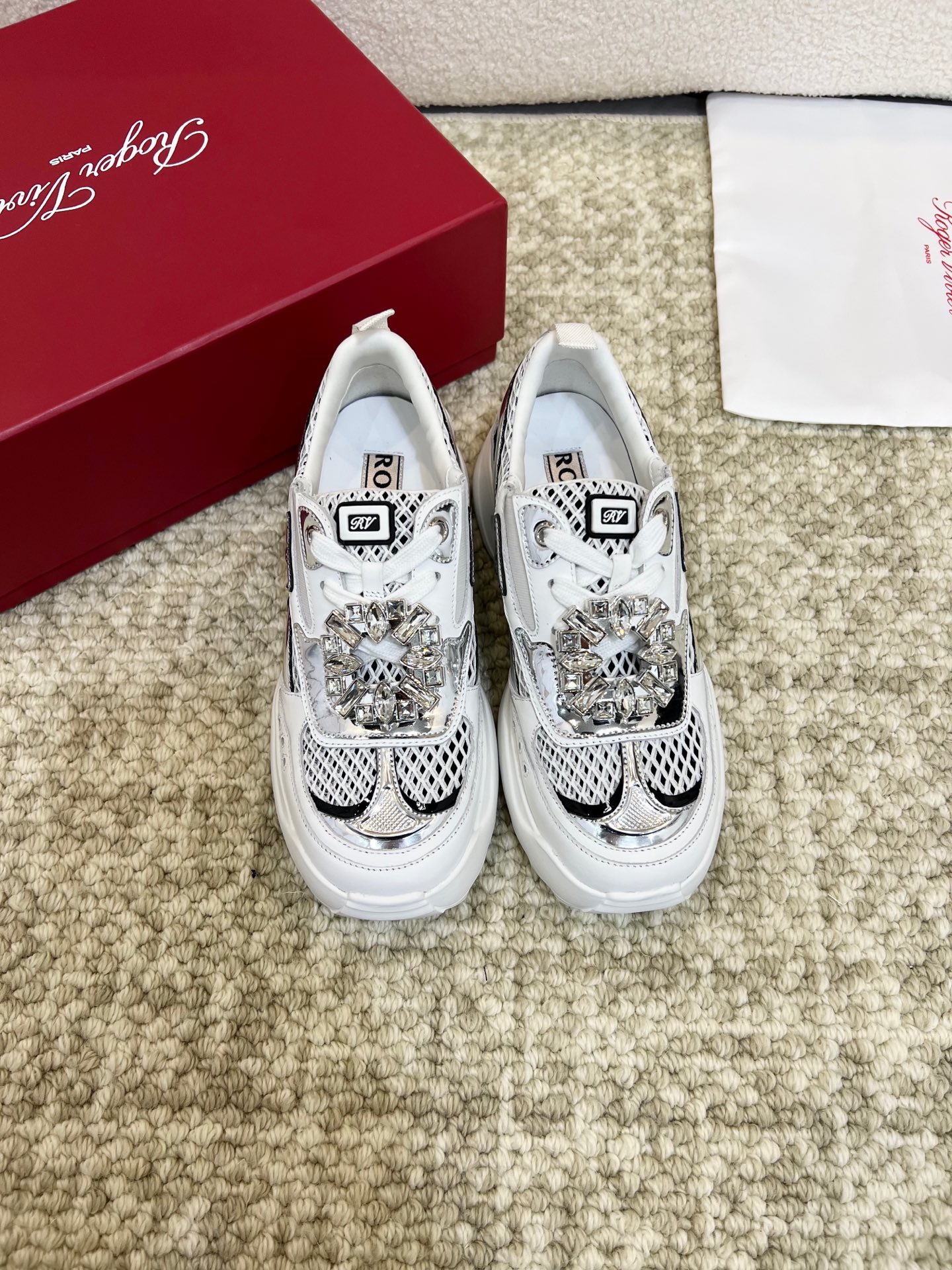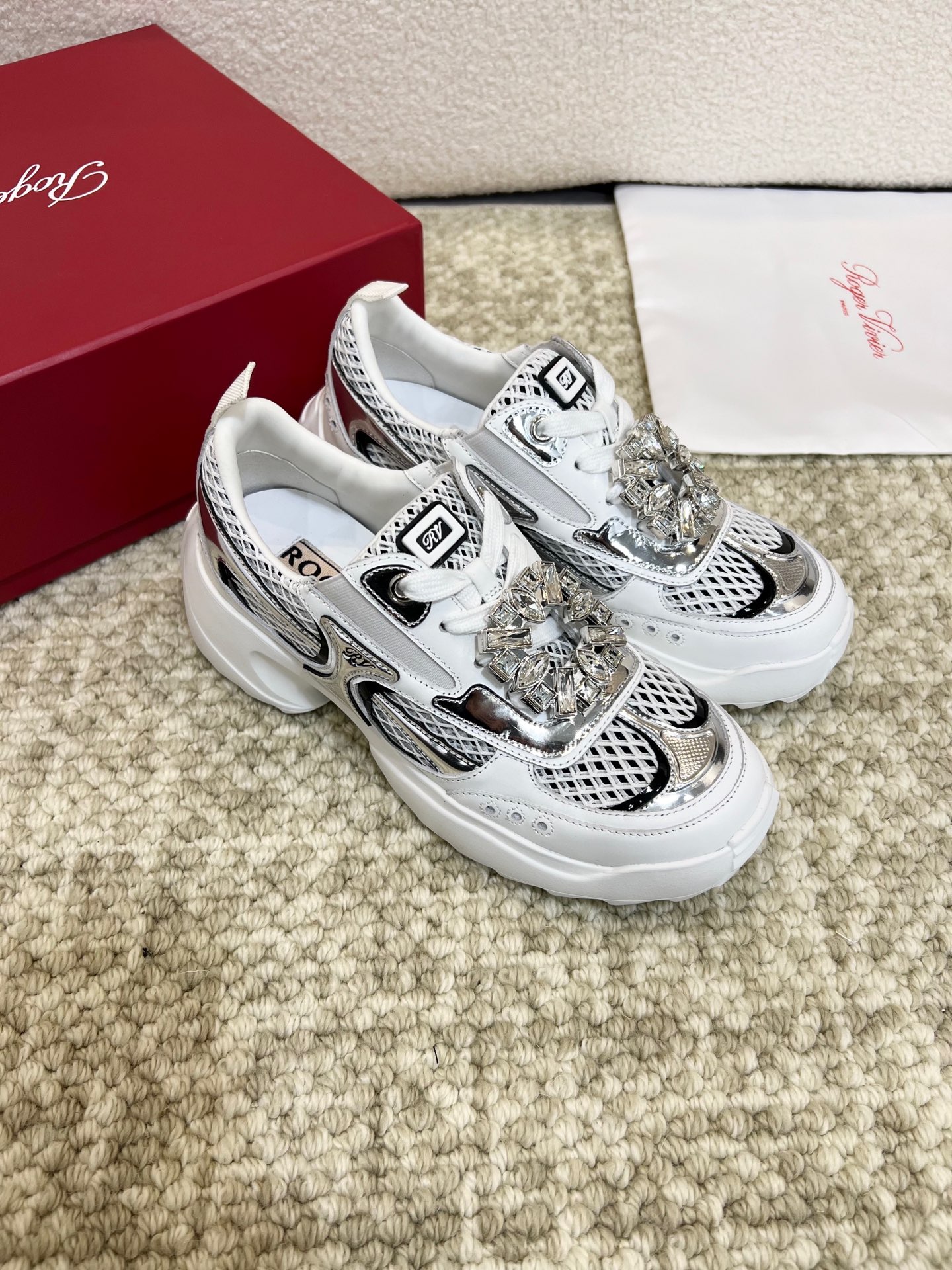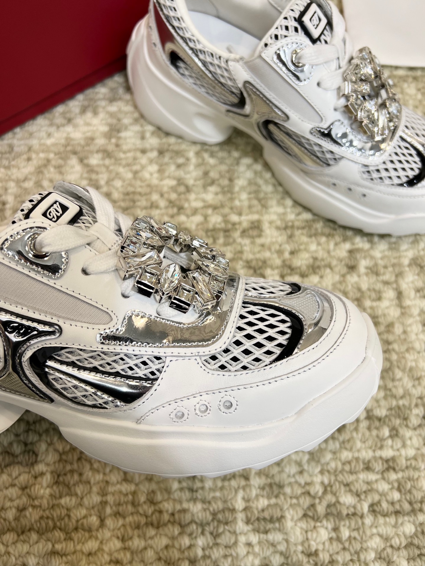 这款鞋子是AAAAA 1:1 质量 (非常棒). 使用了和原版一模一样的材料. 商标部分也保持了和罗杰维维耶/Roger Vivier一样. 图片拍摄是实物鞋子拍摄, 您所收到的实物保证和我们图片一模一样.