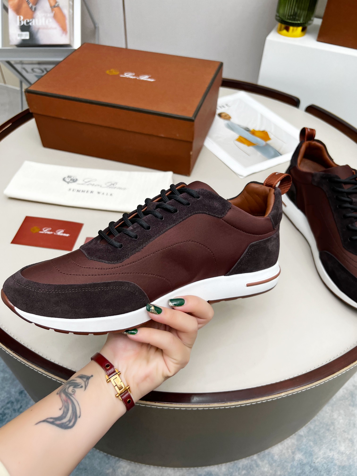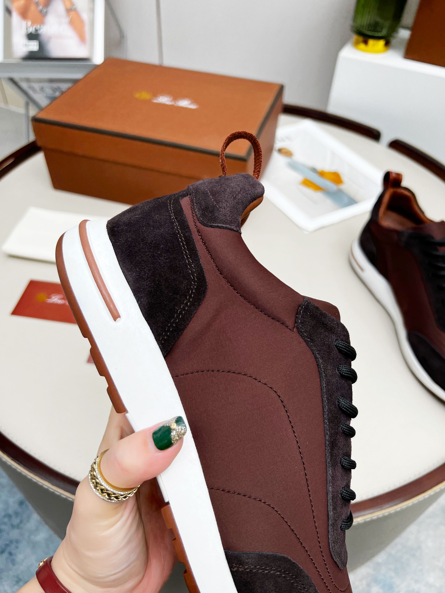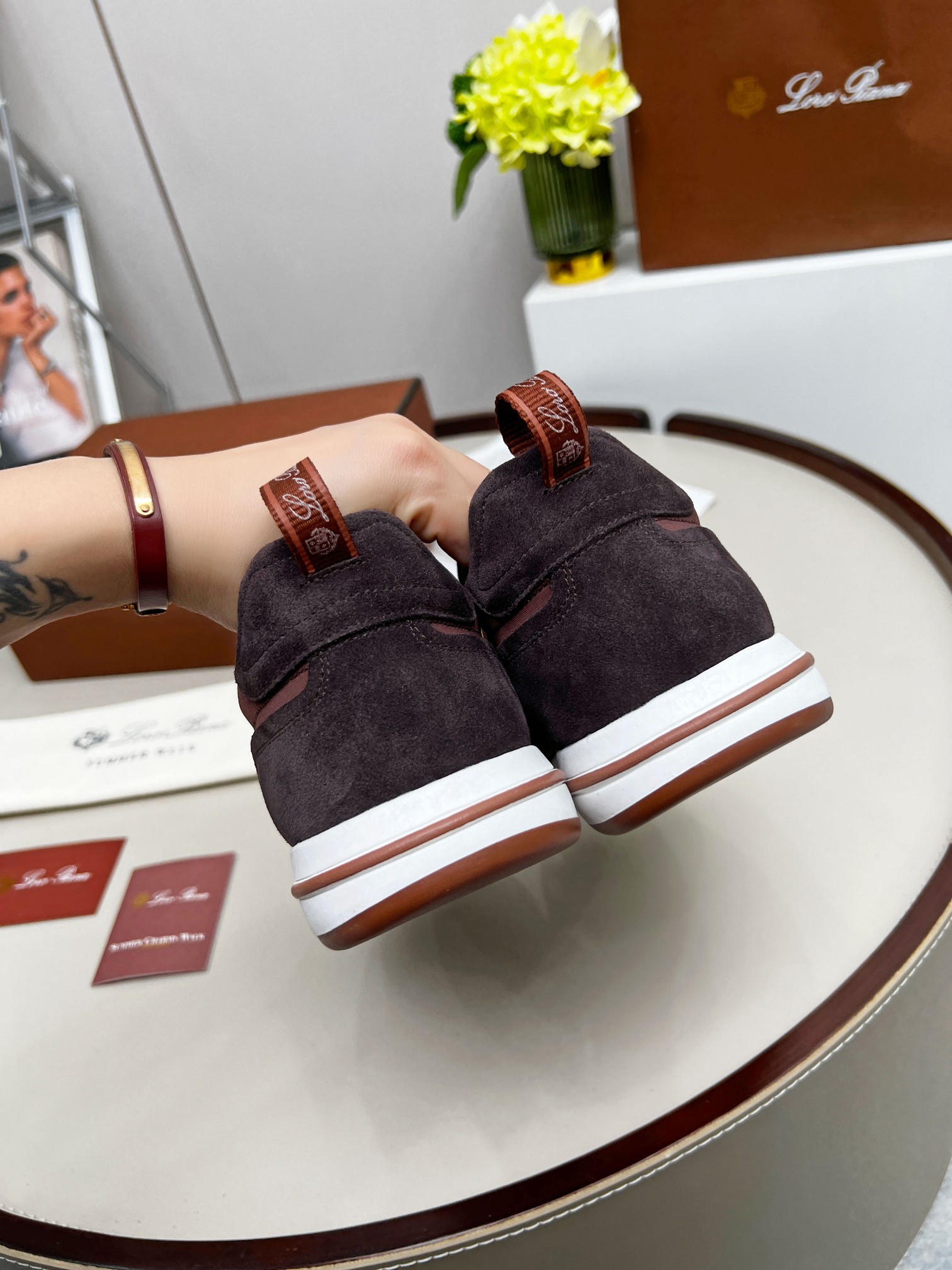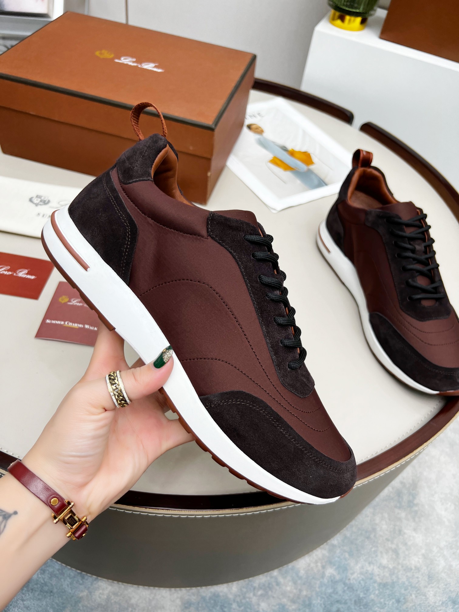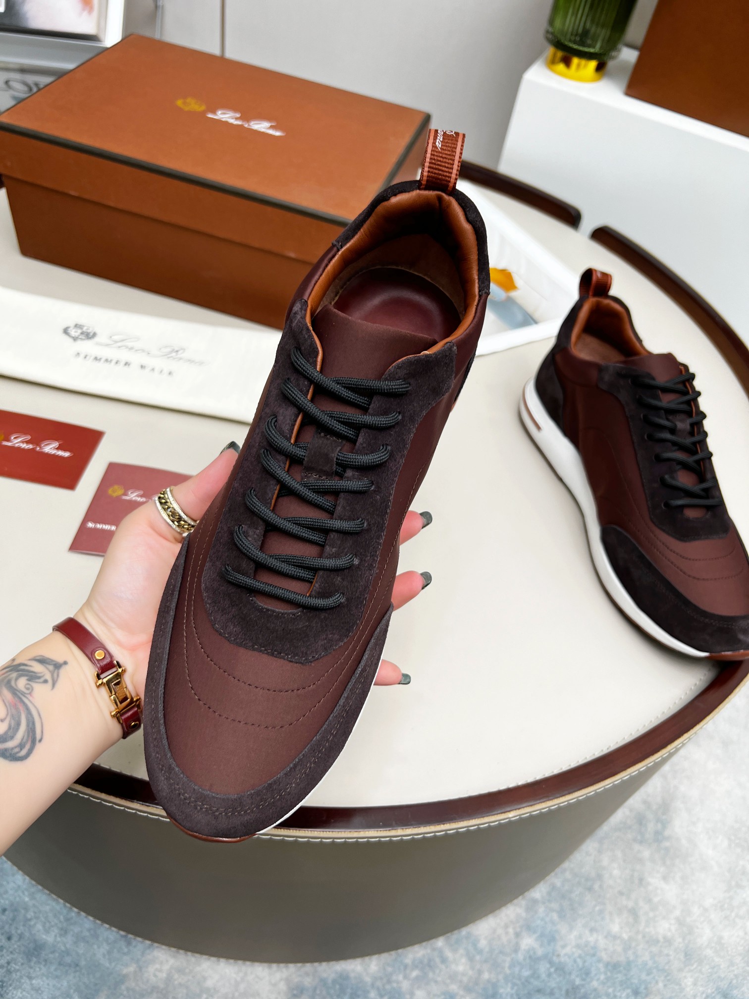 这款鞋子是AAAAA 1:1 质量 (非常棒). 使用了和原版一模一样的材料. 商标部分也保持了和洛罗皮亚纳/Loro Piana一样. 图片拍摄是实物鞋子拍摄, 您所收到的实物保证和我们图片一模一样.