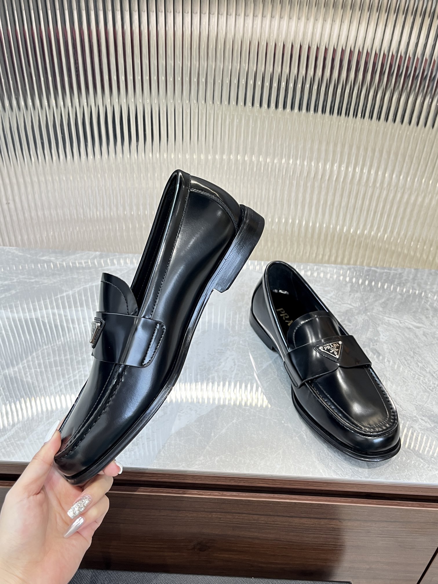 这款鞋子是AAAAA 1:1 质量 (非常棒). 使用了和原版一模一样的材料. 商标部分也保持了和普拉达/Prada一样. 图片拍摄是实物鞋子拍摄, 您所收到的实物保证和我们图片一模一样.