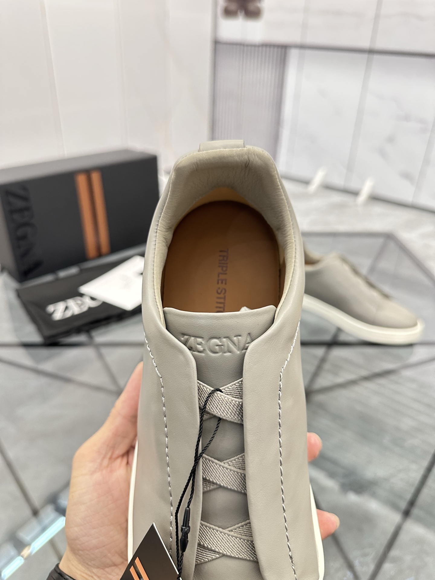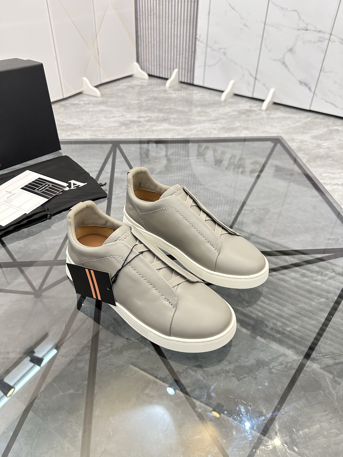 这款鞋子是AAAAA 1:1 质量 (非常棒). 使用了和原版一模一样的材料. 商标部分也保持了和杰尼亚/Zegna一样. 图片拍摄是实物鞋子拍摄, 您所收到的实物保证和我们图片一模一样.