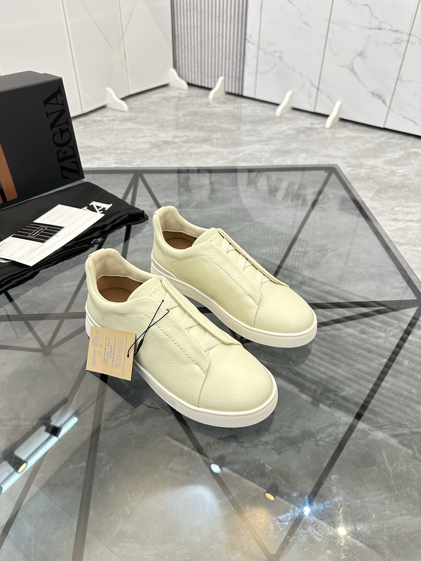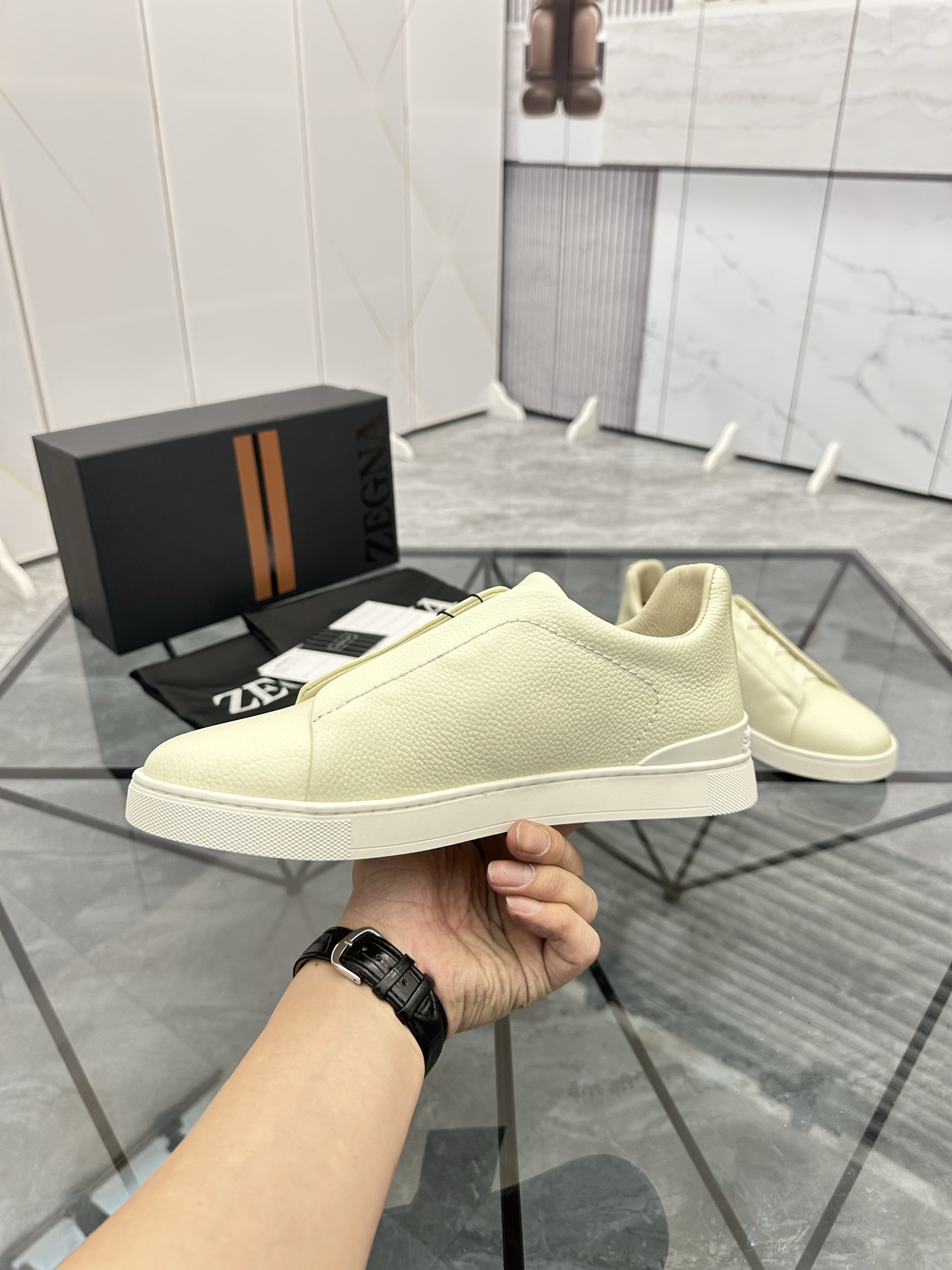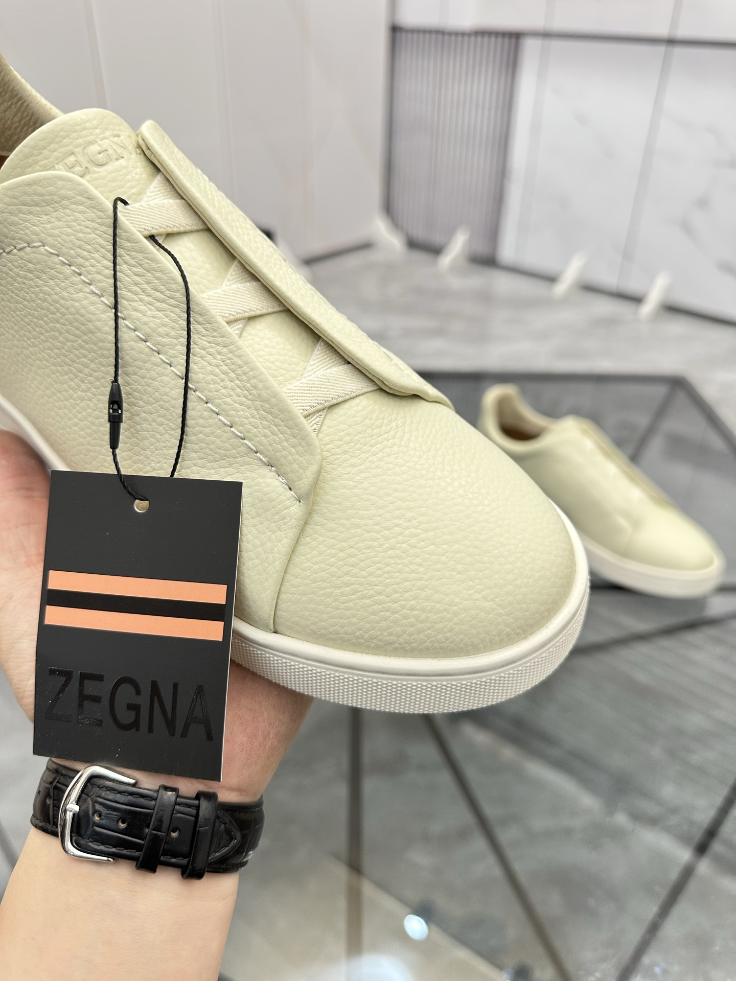 这款鞋子是AAAAA 1:1 质量 (非常棒). 使用了和原版一模一样的材料. 商标部分也保持了和杰尼亚/Zegna一样. 图片拍摄是实物鞋子拍摄, 您所收到的实物保证和我们图片一模一样.