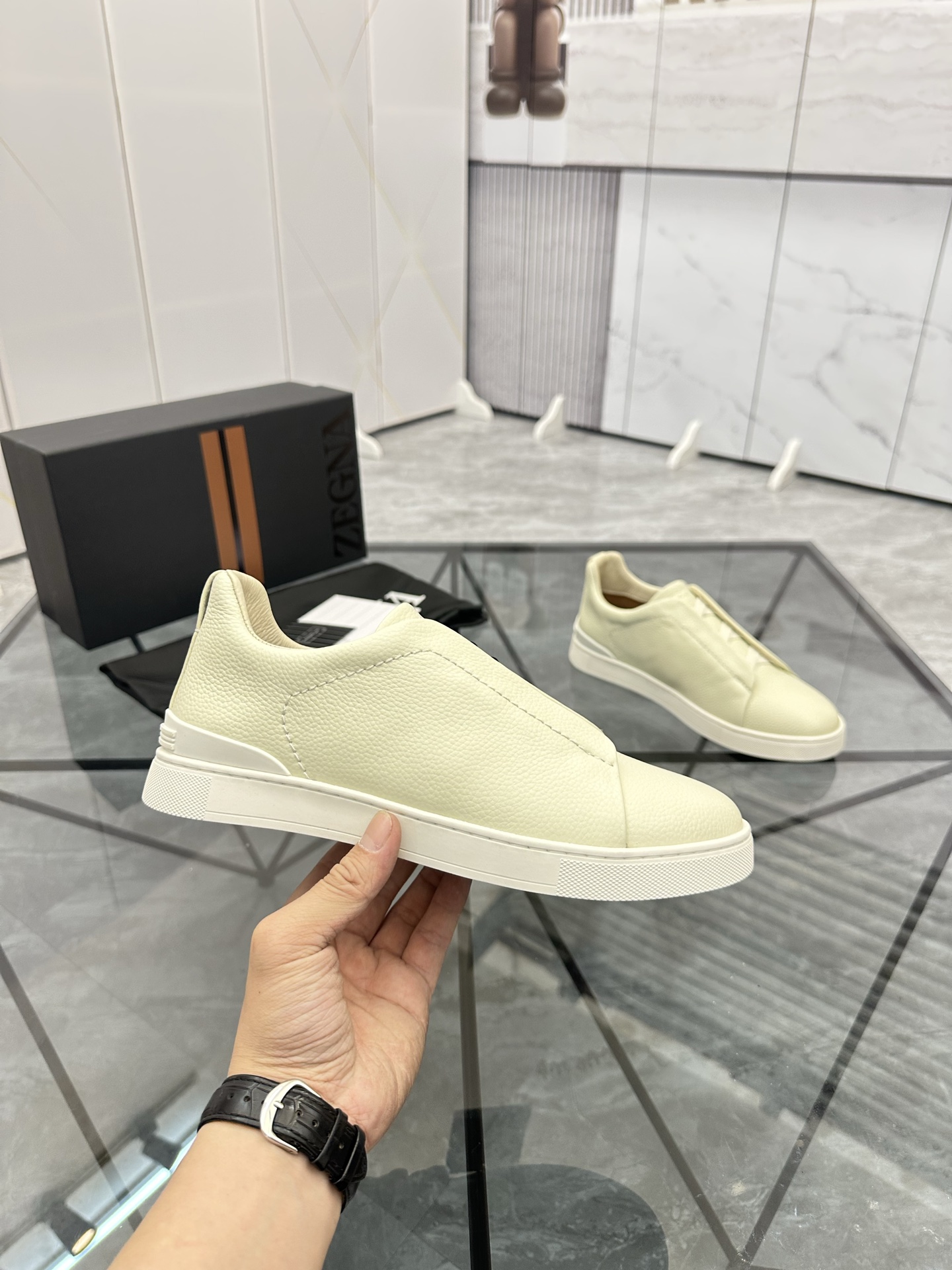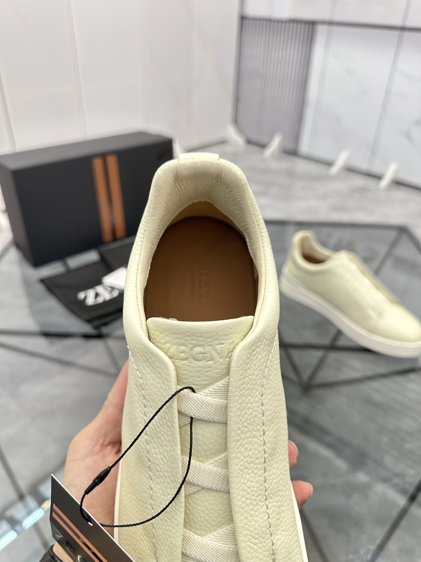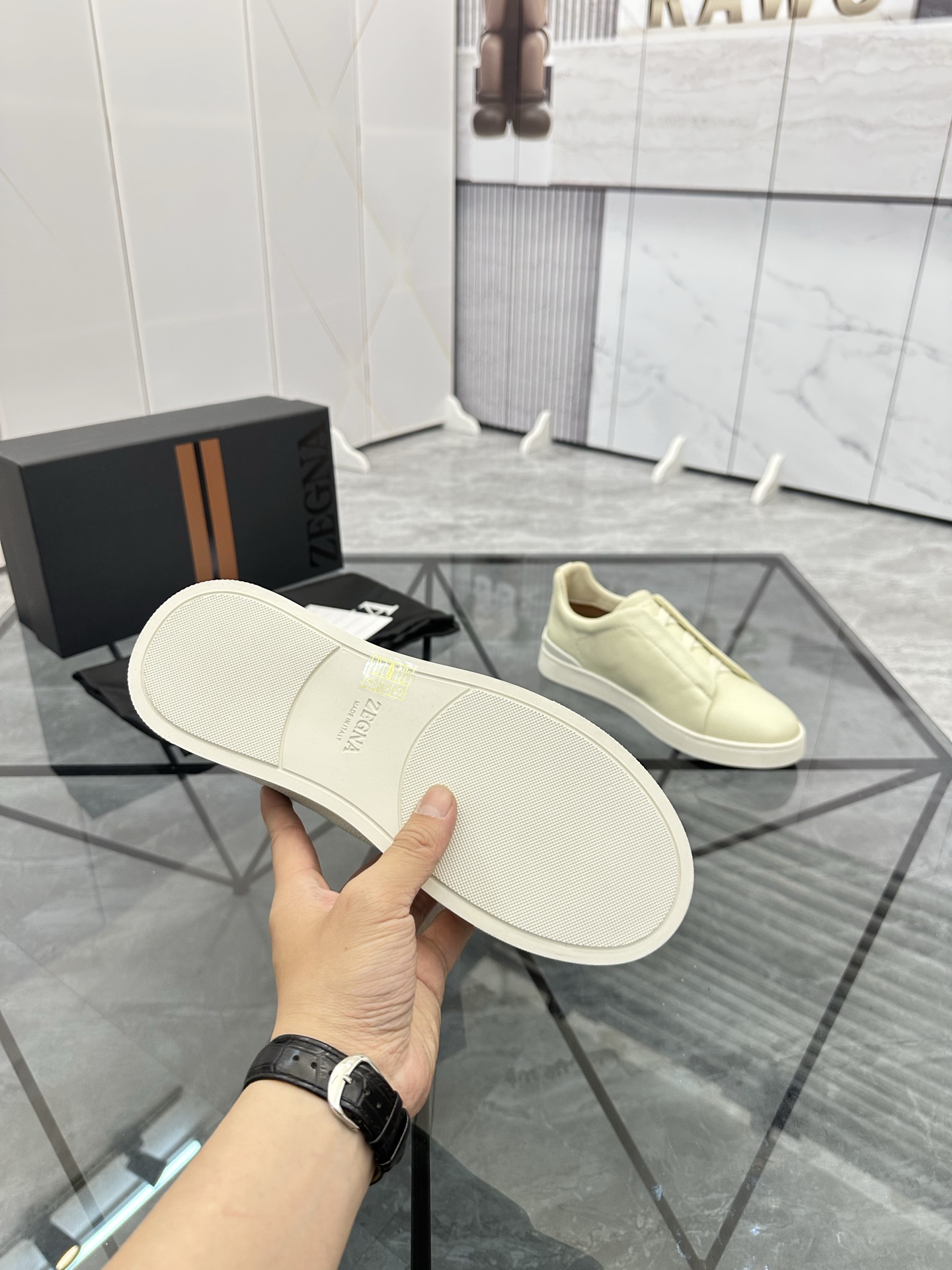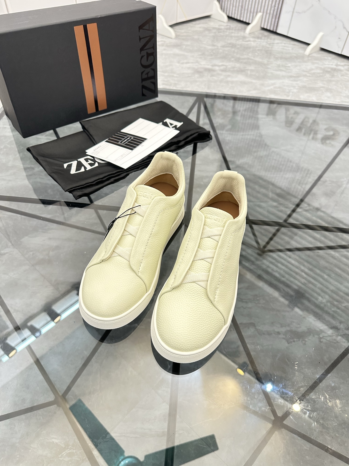 这款鞋子是AAAAA 1:1 质量 (非常棒). 使用了和原版一模一样的材料. 商标部分也保持了和杰尼亚/Zegna一样. 图片拍摄是实物鞋子拍摄, 您所收到的实物保证和我们图片一模一样.