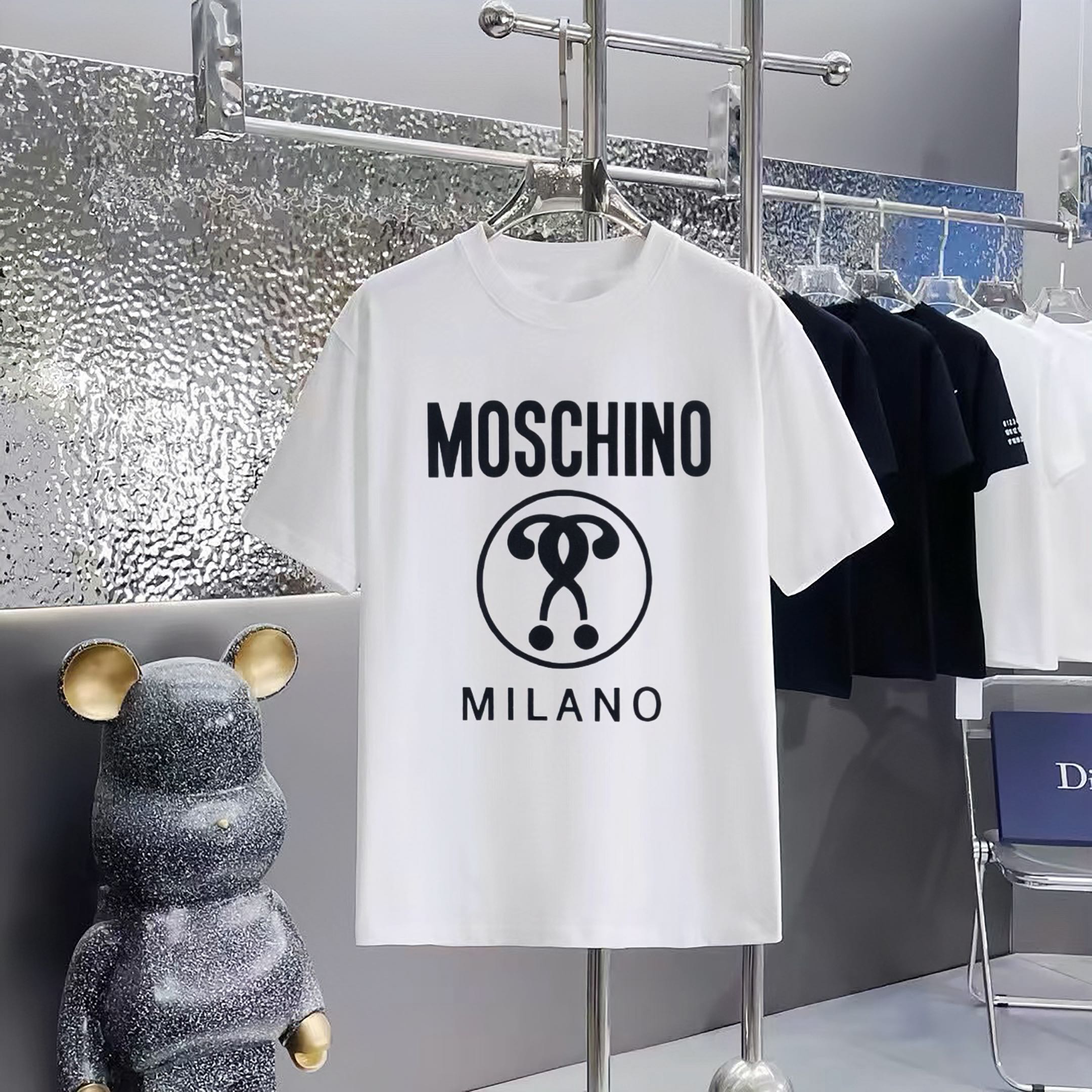 这款衣服是AAAAA 1:1 质量 (非常棒). 使用了和原版一模一样的材料. 商标部分也保持了和莫斯基诺/Moschino一样. 图片拍摄是实物衣服拍摄, 您所收到的实物保证和我们图片一模一样.