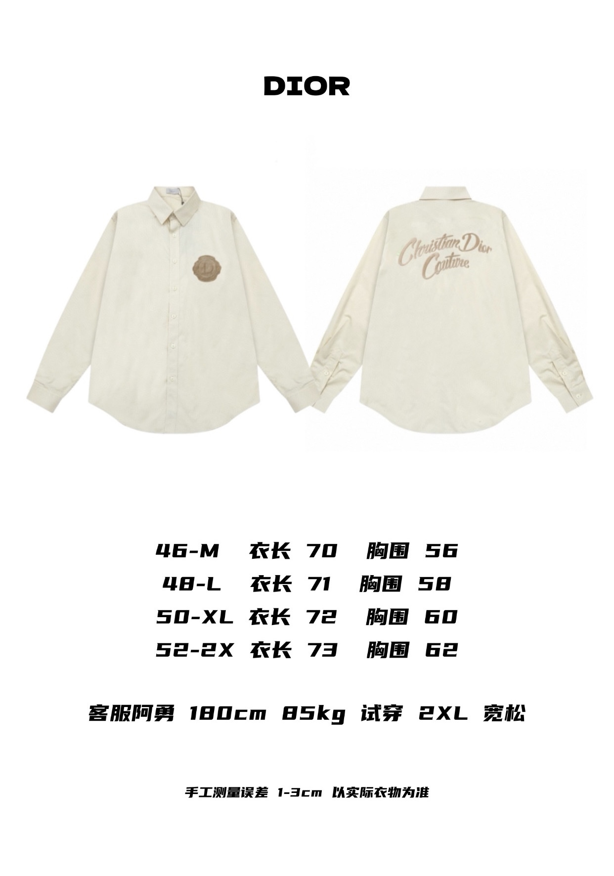 这款衣服是AAAAA 1:1 质量 (非常棒). 使用了和原版一模一样的材料. 商标部分也保持了和迪奥/Dior一样. 图片拍摄是实物衣服拍摄, 您所收到的实物保证和我们图片一模一样.
