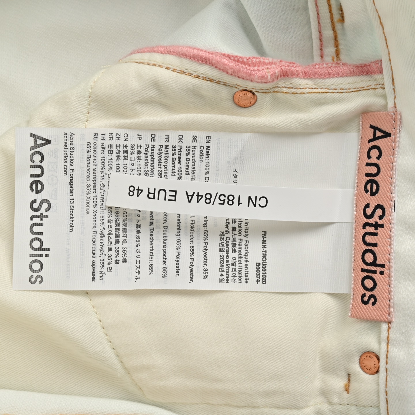 这款衣服是AAAAA 1:1 质量 (非常棒). 使用了和原版一模一样的材料. 商标部分也保持了和Acne一样. 图片拍摄是实物衣服拍摄, 您所收到的实物保证和我们图片一模一样.
