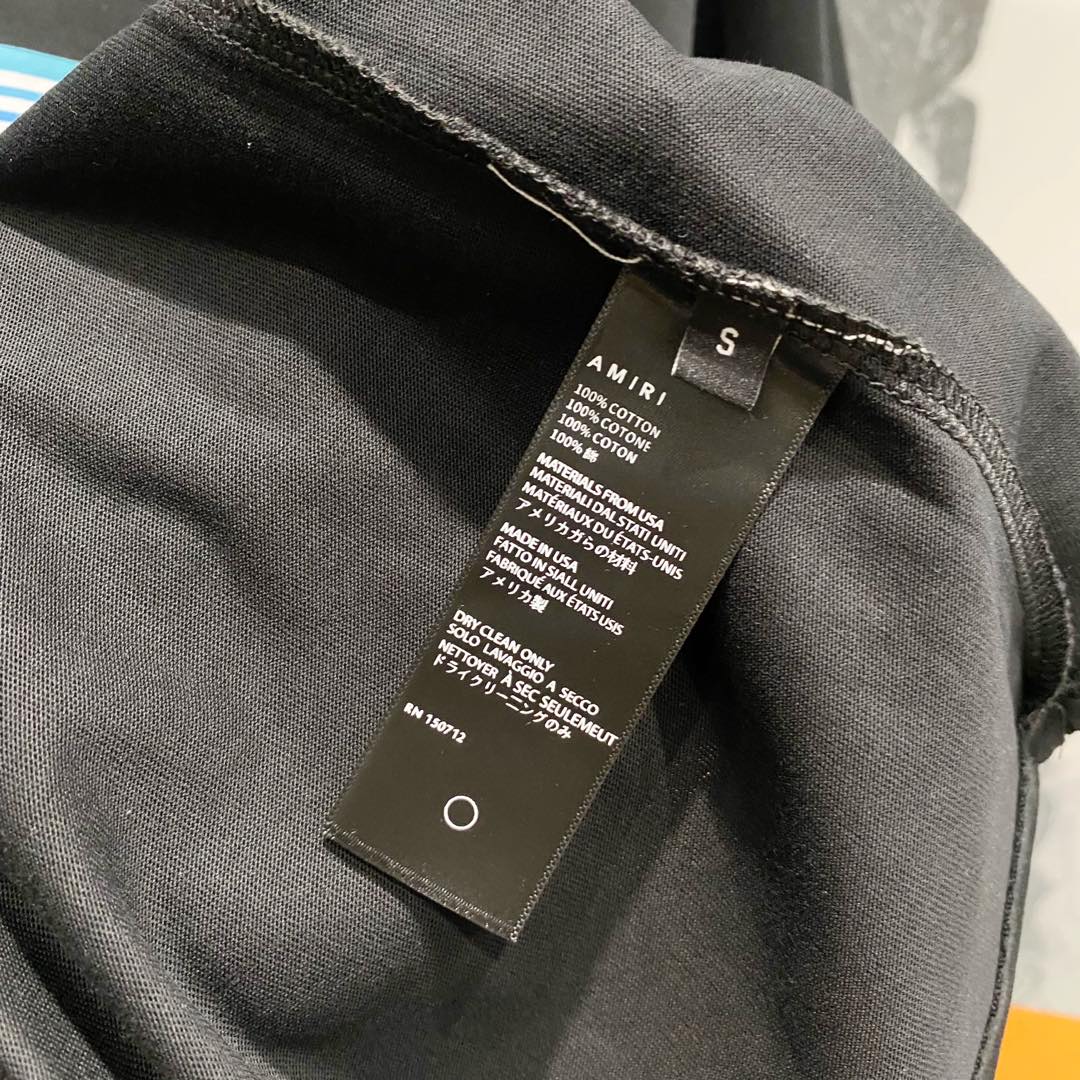 这款衣服是AAAAA 1:1 质量 (非常棒). 使用了和原版一模一样的材料. 商标部分也保持了和AMIRI一样. 图片拍摄是实物衣服拍摄, 您所收到的实物保证和我们图片一模一样.
