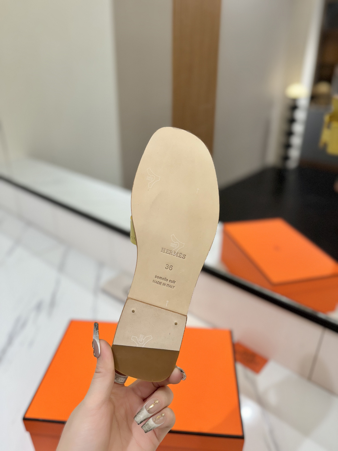 这款鞋子是AAAAA 1:1 质量 (非常棒). 使用了和原版一模一样的材料. 商标部分也保持了和爱马仕/Hermes一样. 图片拍摄是实物鞋子拍摄, 您所收到的实物保证和我们图片一模一样.