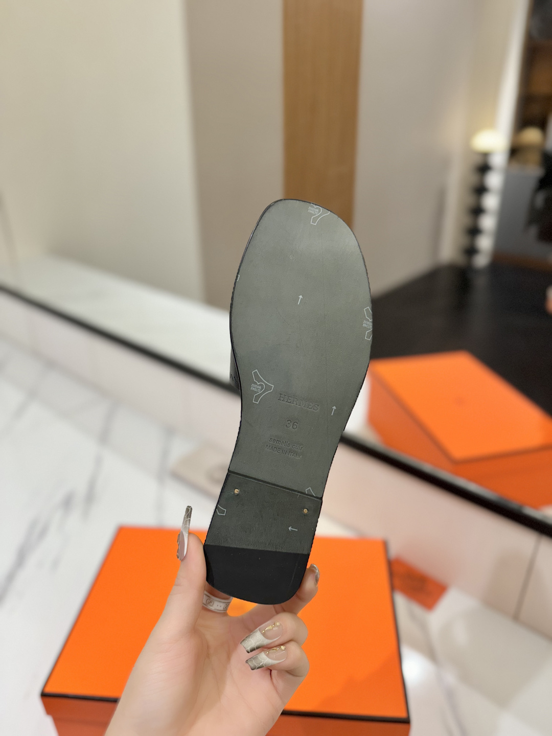 这款鞋子是AAAAA 1:1 质量 (非常棒). 使用了和原版一模一样的材料. 商标部分也保持了和爱马仕/Hermes一样. 图片拍摄是实物鞋子拍摄, 您所收到的实物保证和我们图片一模一样.