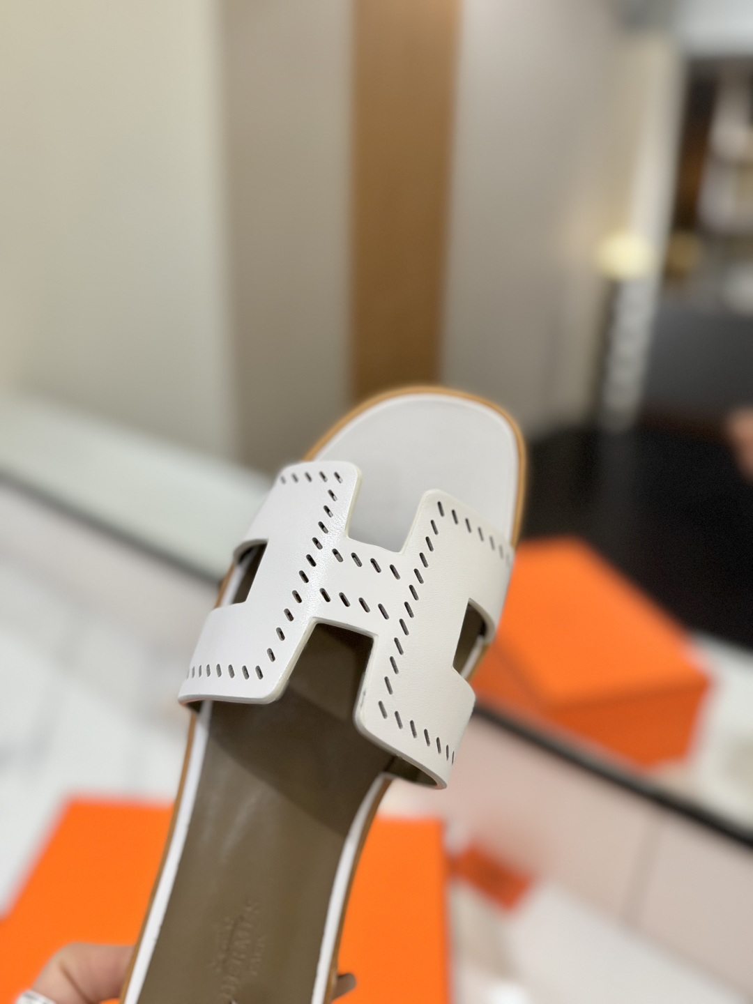 这款鞋子是AAAAA 1:1 质量 (非常棒). 使用了和原版一模一样的材料. 商标部分也保持了和爱马仕/Hermes一样. 图片拍摄是实物鞋子拍摄, 您所收到的实物保证和我们图片一模一样.
