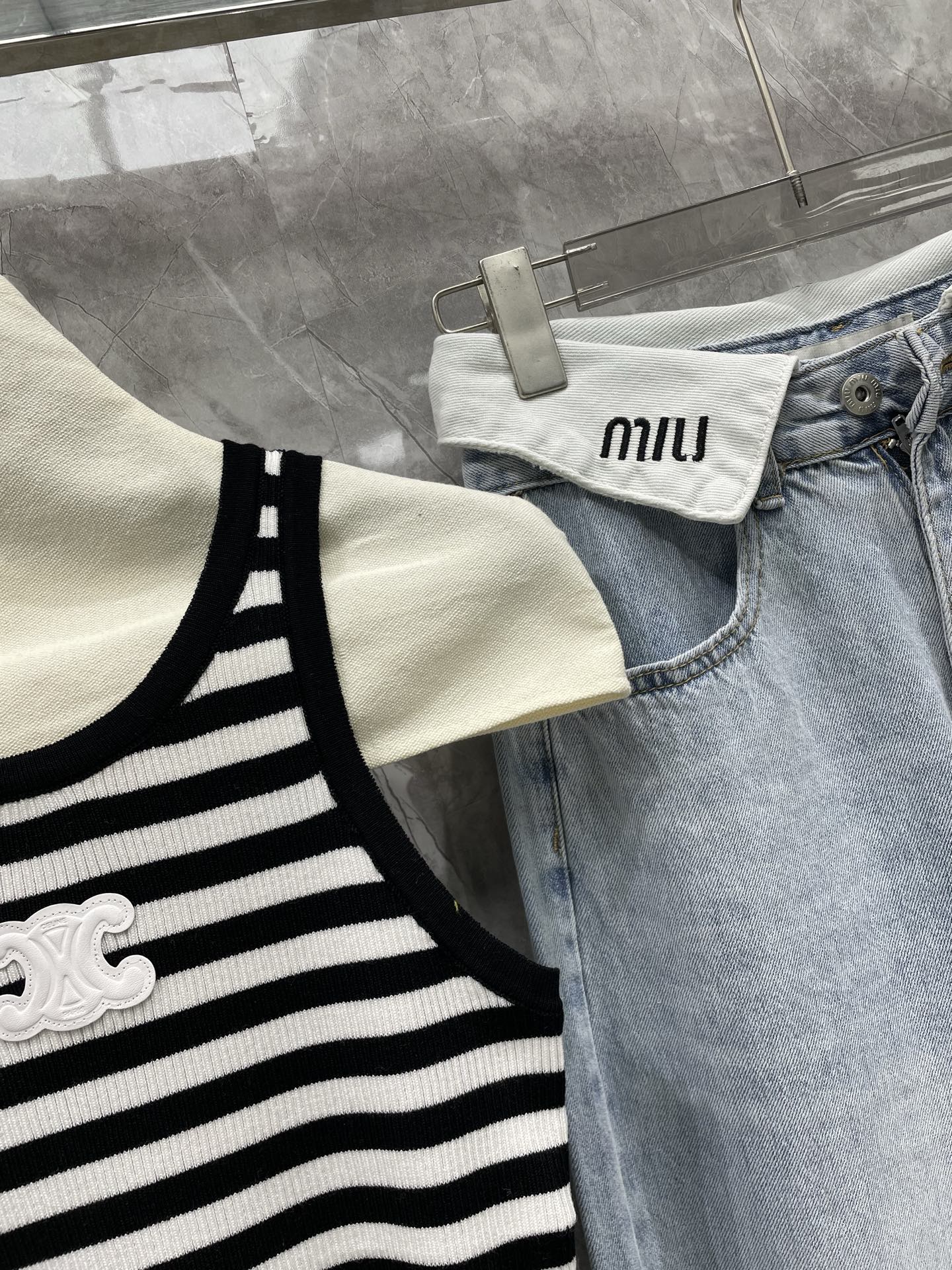 这款衣服是AAAAA 1:1 质量 (非常棒). 使用了和原版一模一样的材料. 商标部分也保持了和思琳/Celine一样. 图片拍摄是实物衣服拍摄, 您所收到的实物保证和我们图片一模一样.