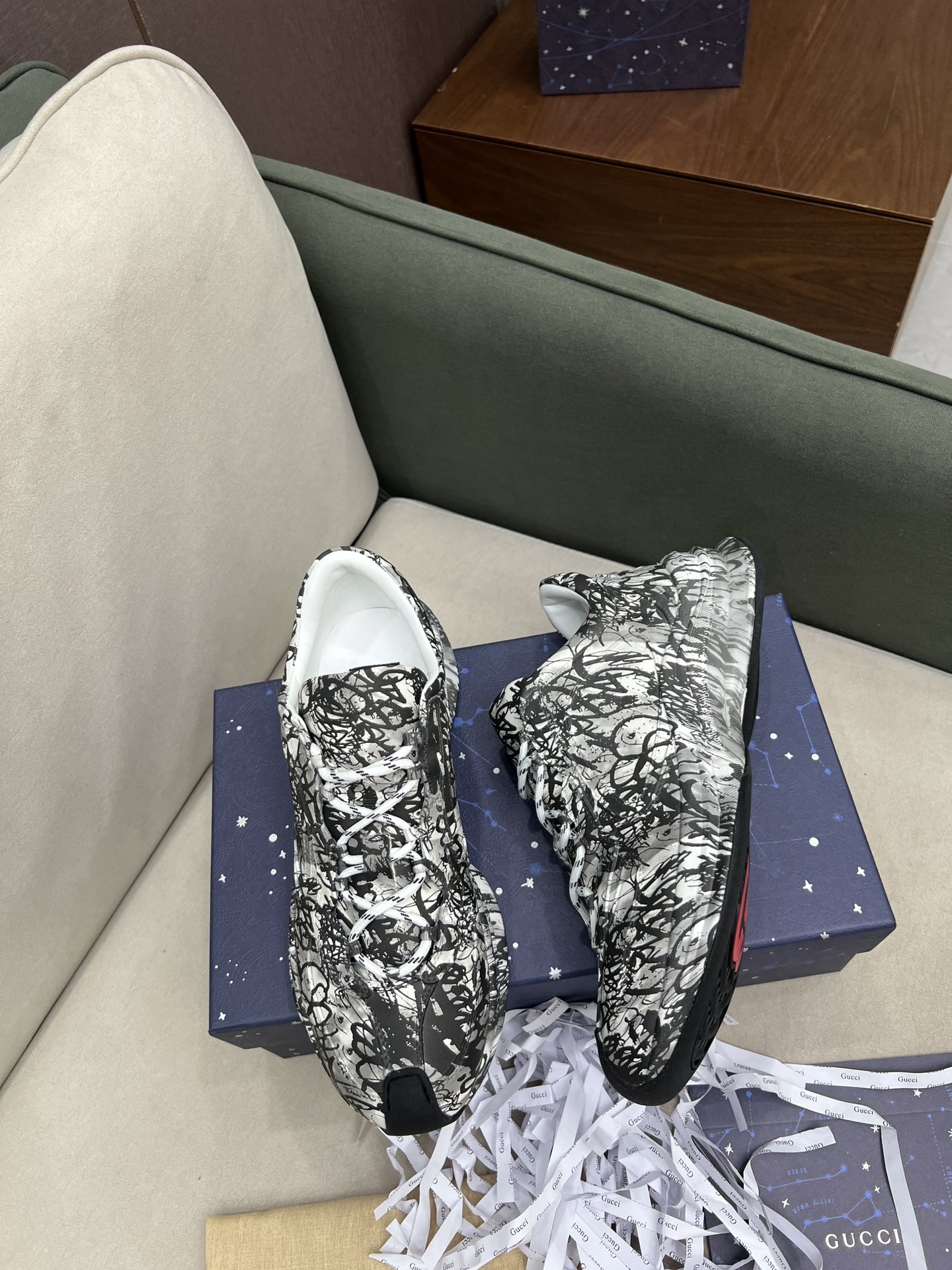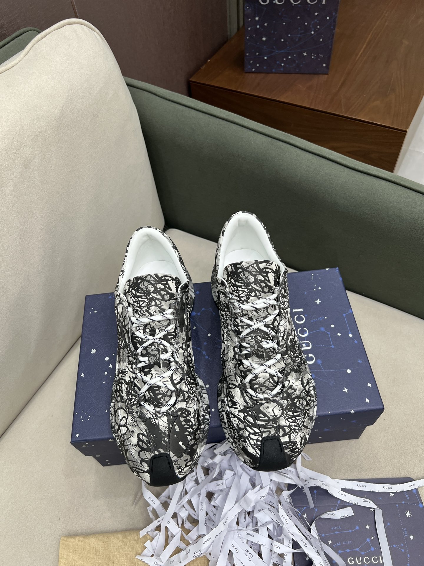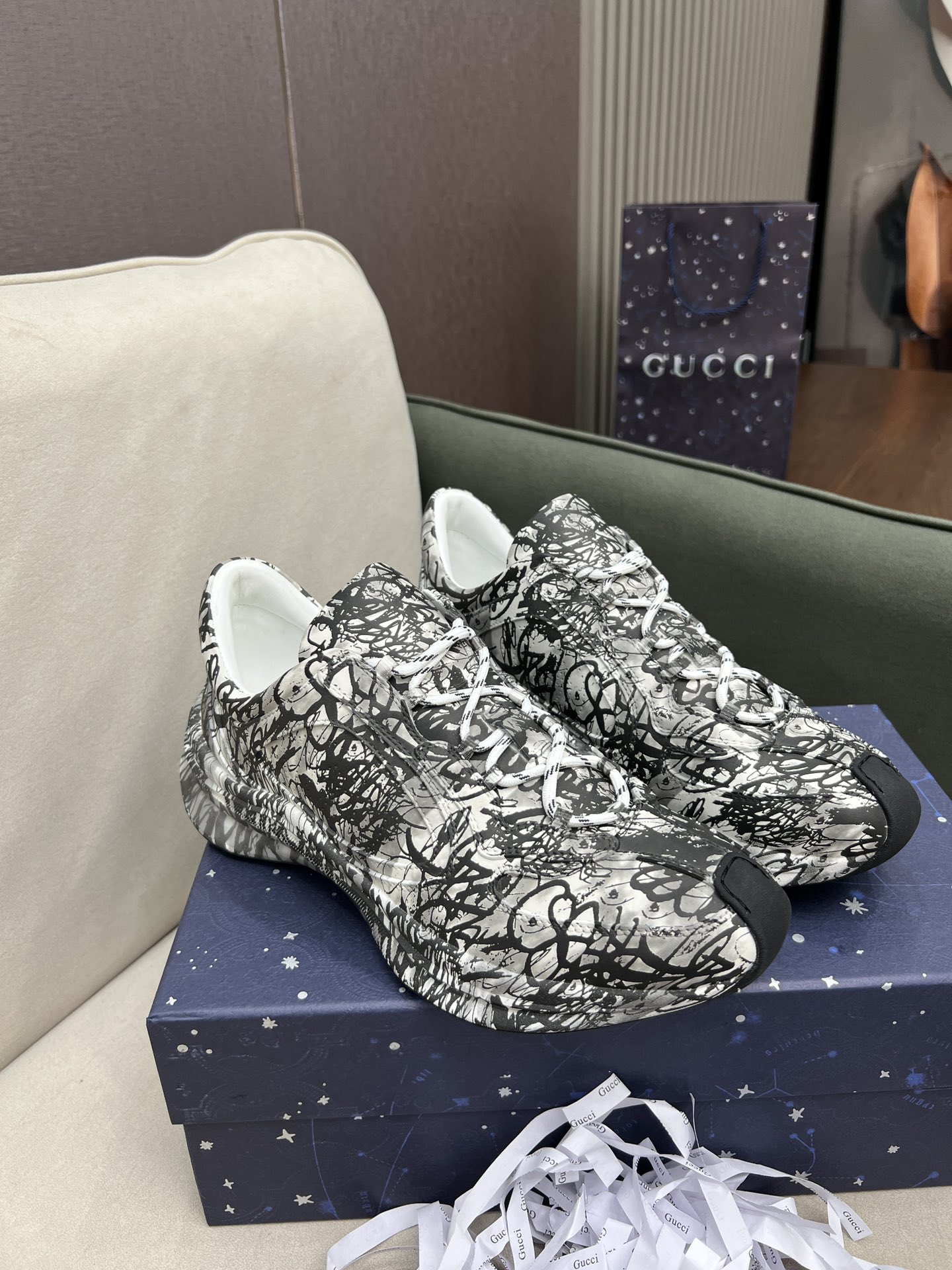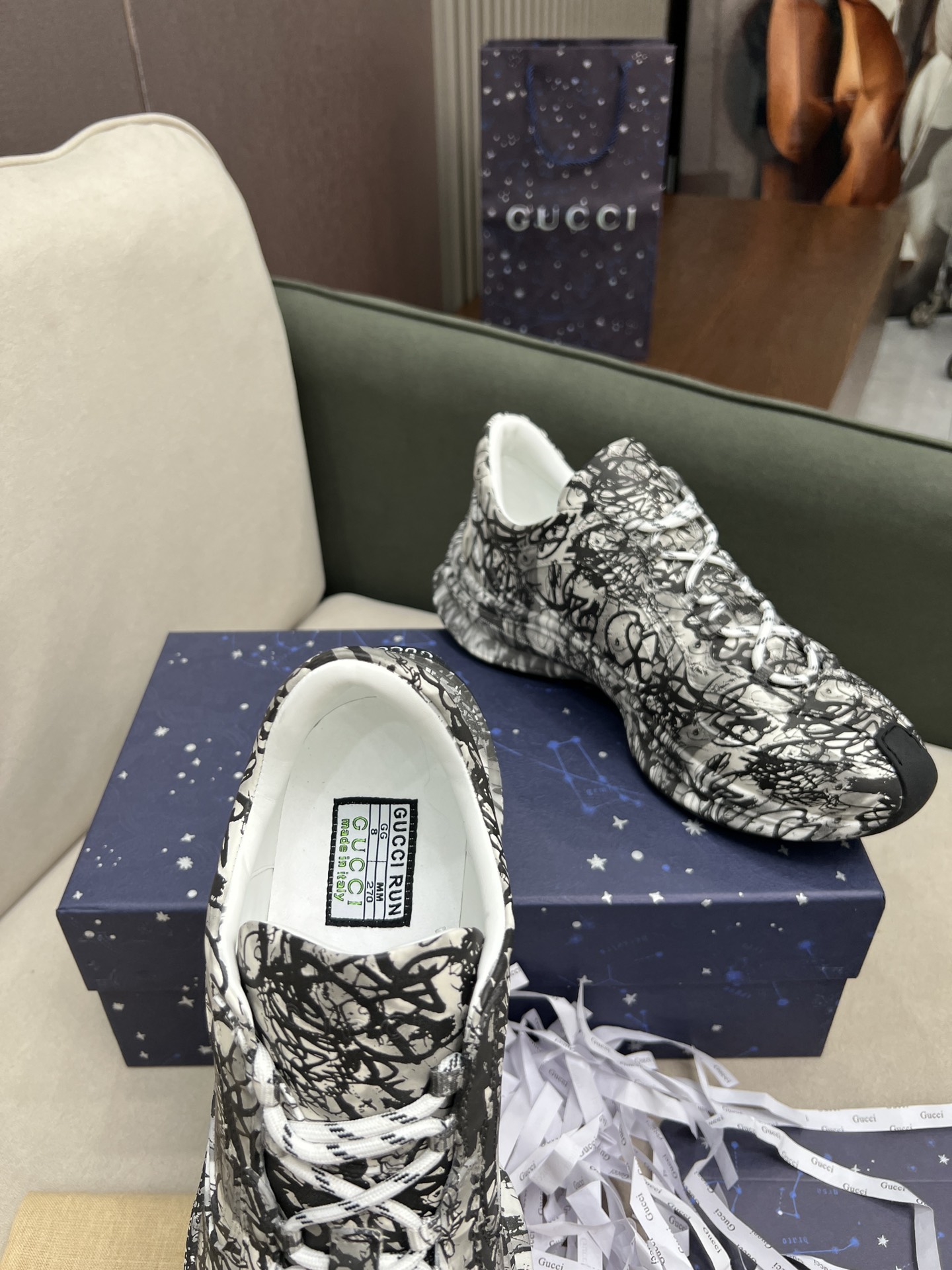 这款鞋子是AAAAA 1:1 质量 (非常棒). 使用了和原版一模一样的材料. 商标部分也保持了和古奇/Gucci一样. 图片拍摄是实物鞋子拍摄, 您所收到的实物保证和我们图片一模一样.