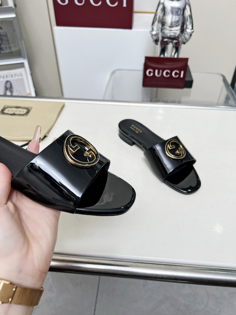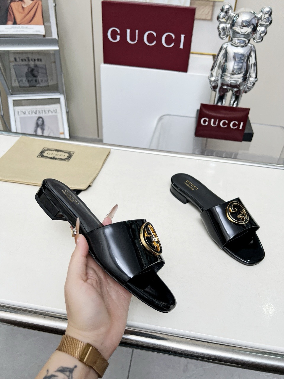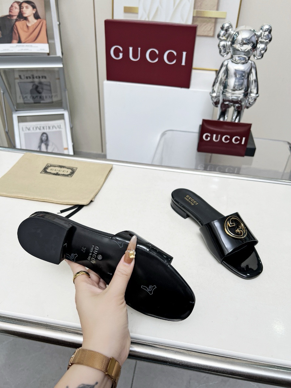 这款鞋子是AAAAA 1:1 质量 (非常棒). 使用了和原版一模一样的材料. 商标部分也保持了和古奇/Gucci一样. 图片拍摄是实物鞋子拍摄, 您所收到的实物保证和我们图片一模一样.